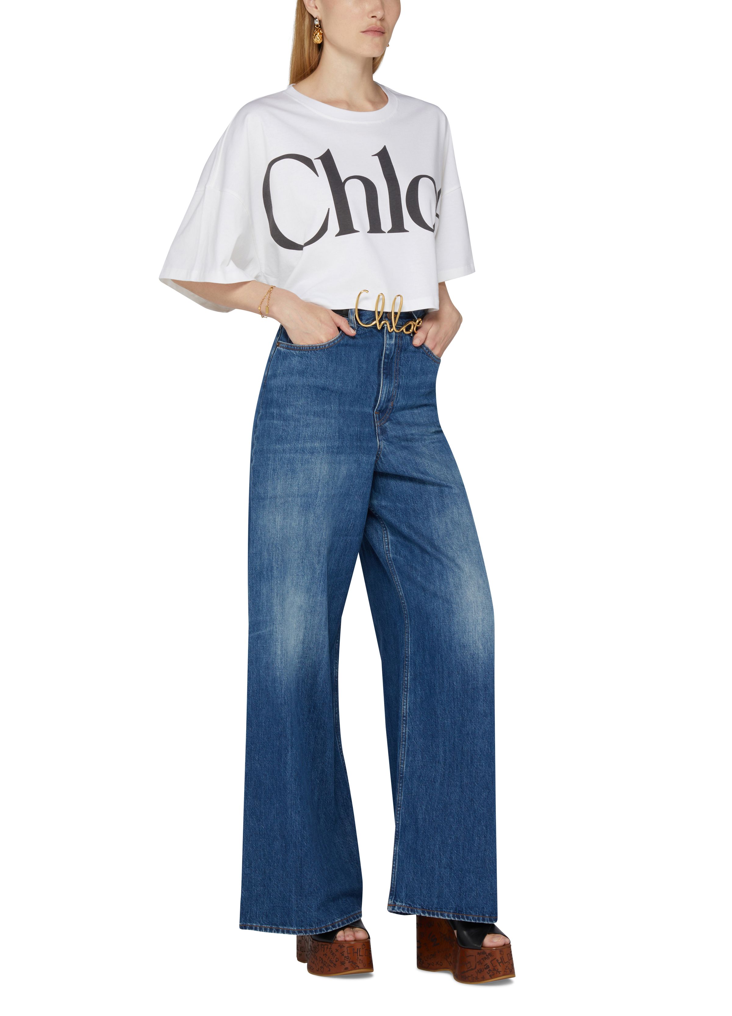 Short logo cotton straight-cut T-shirt