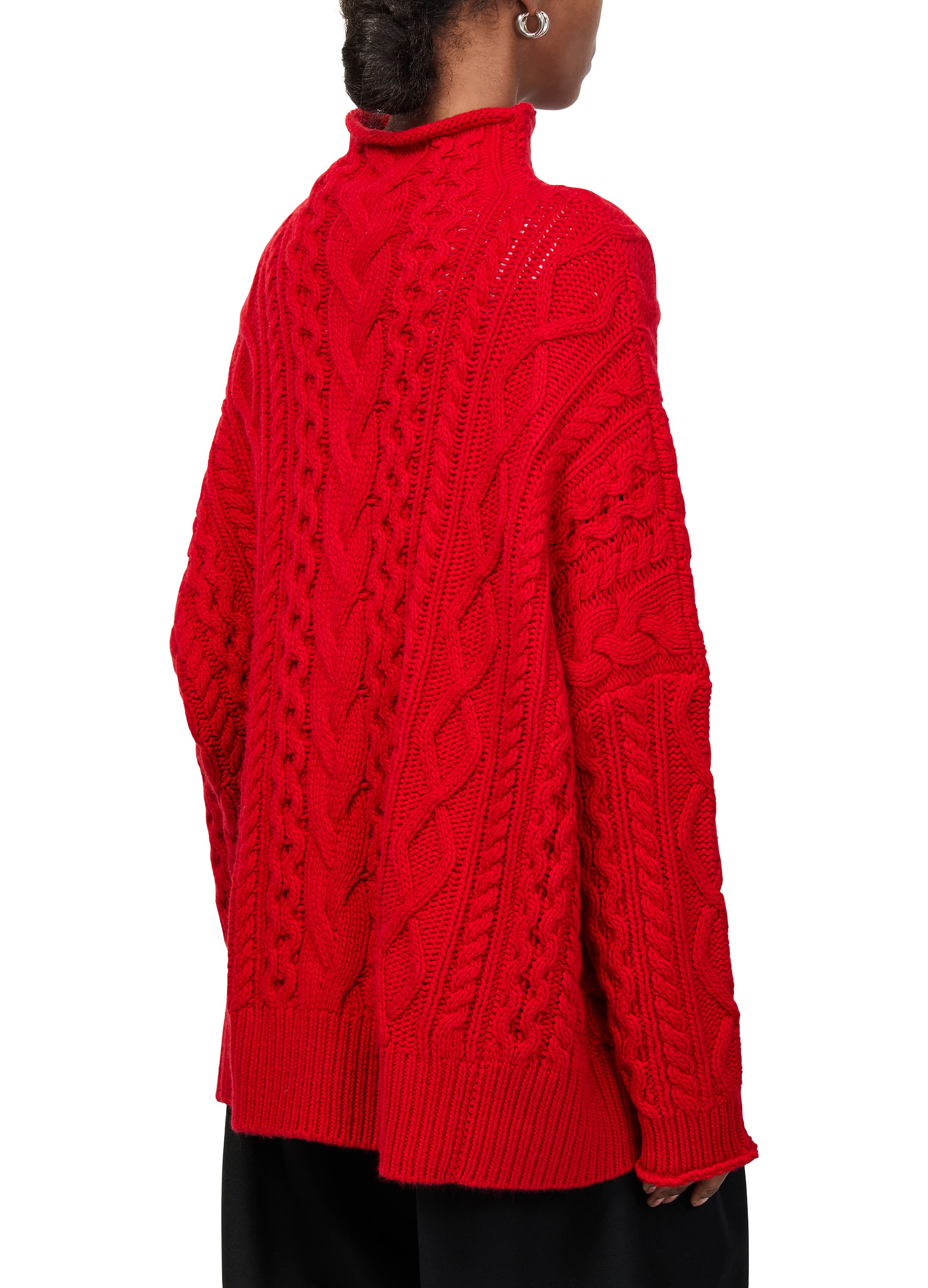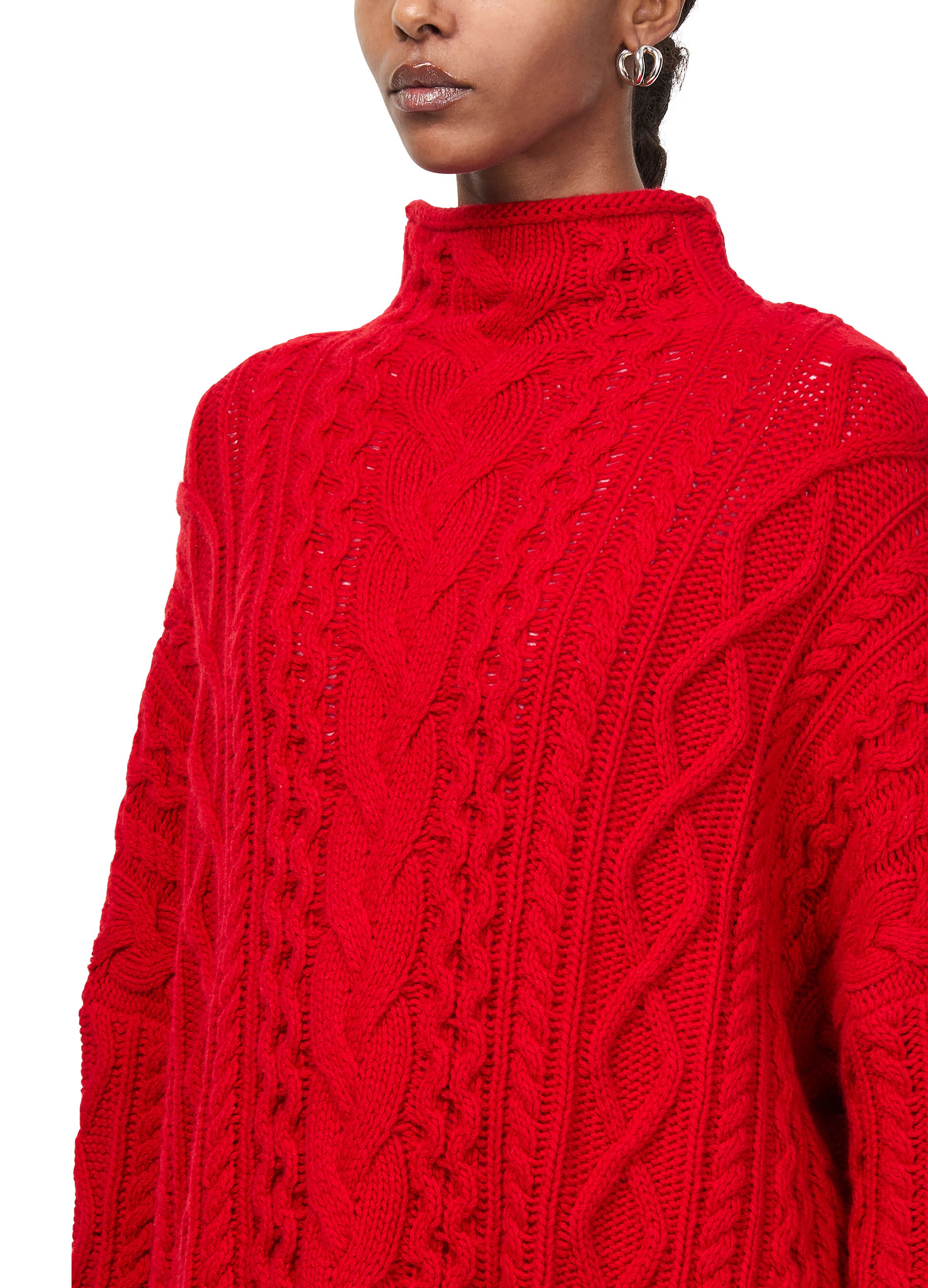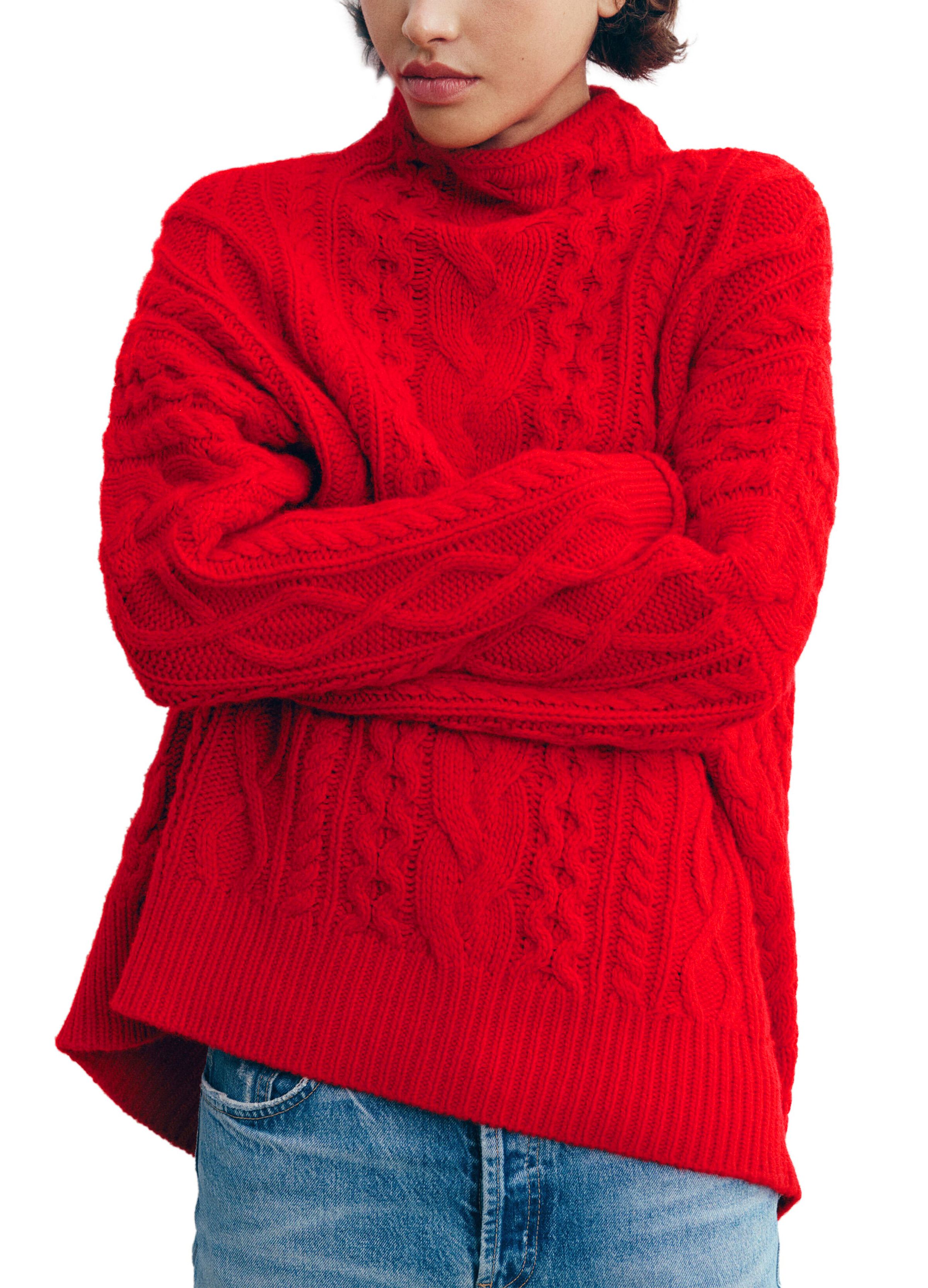 Cable knit mockneck sweater - Red