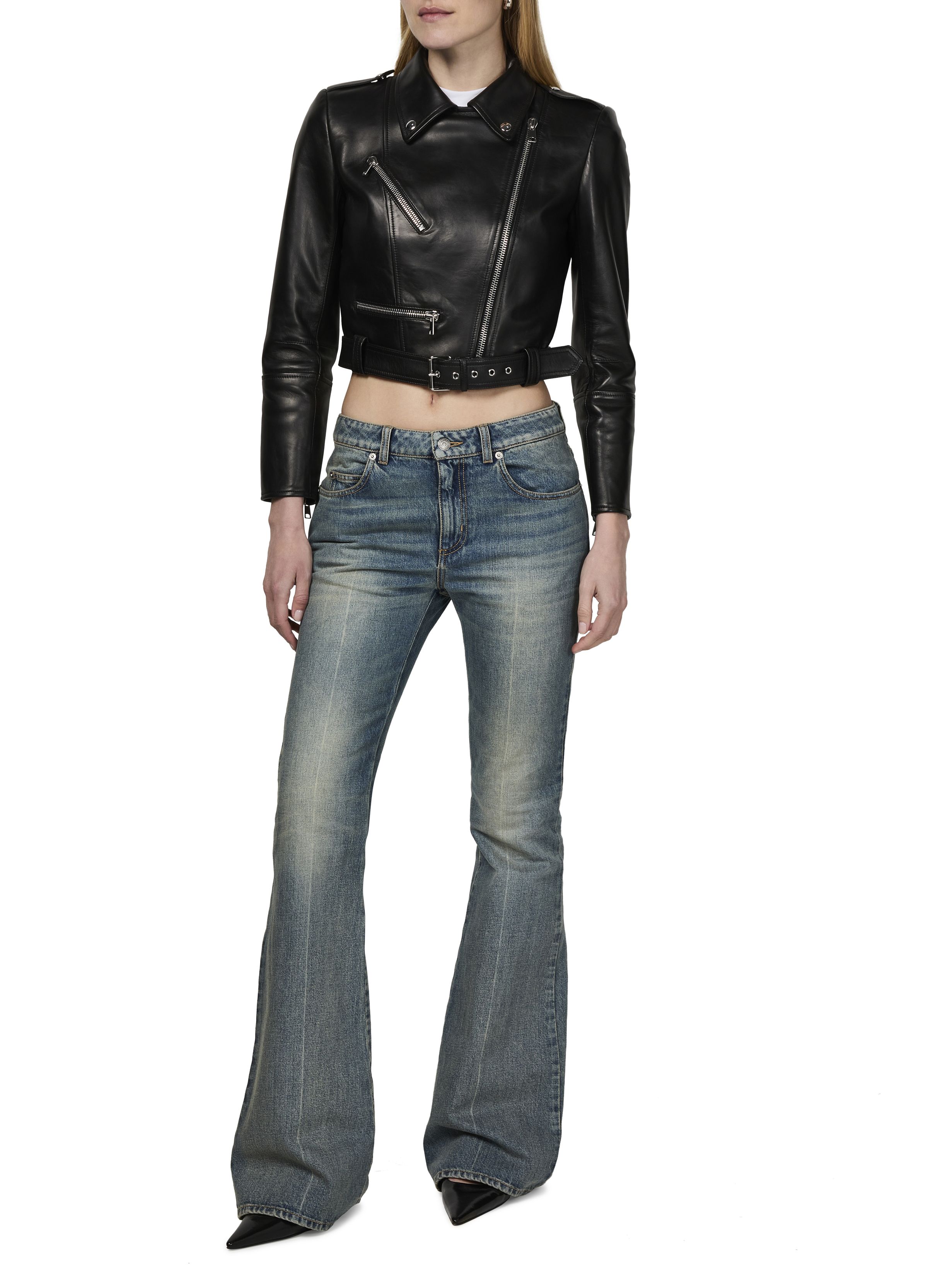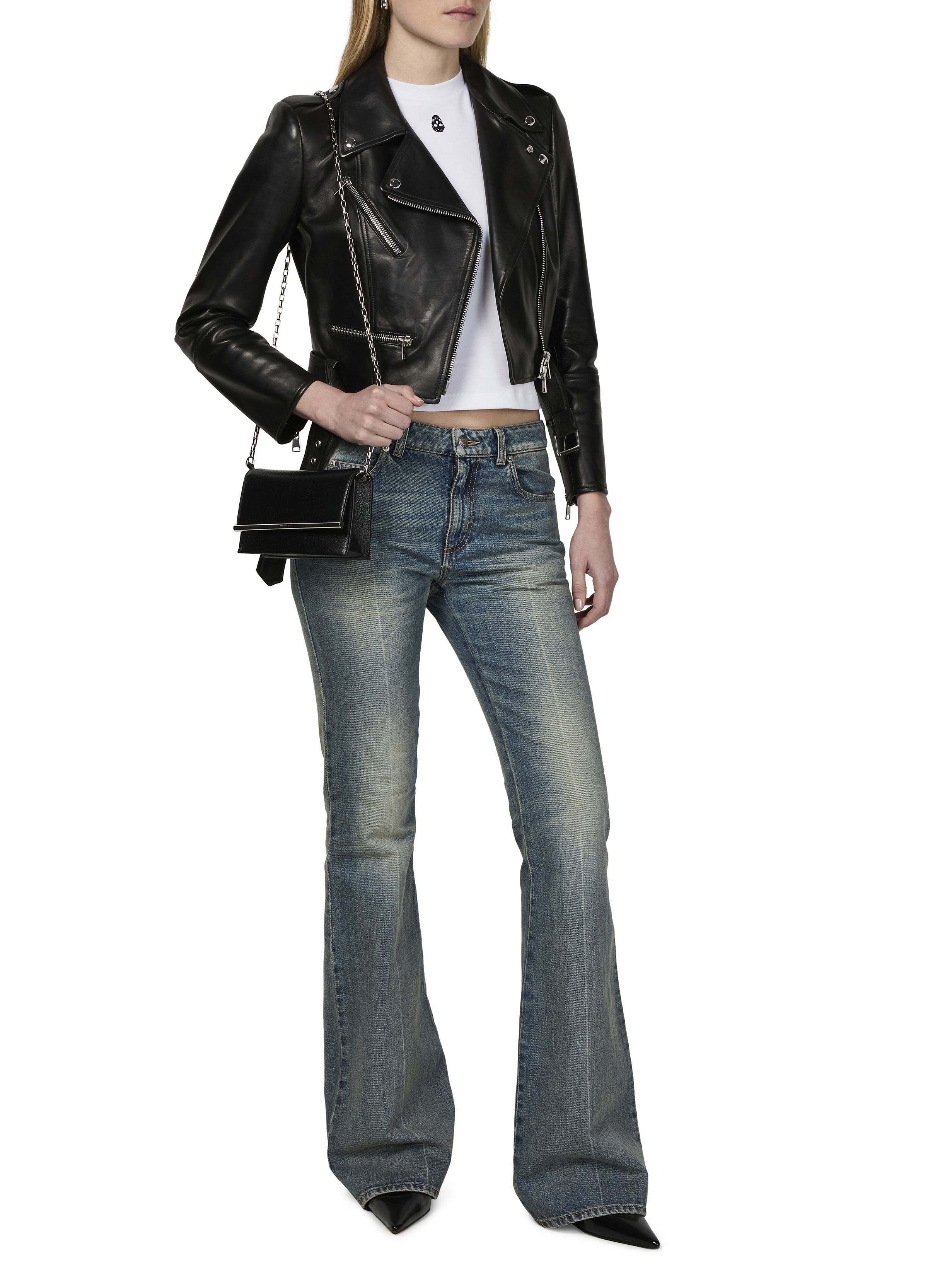 Short biker leather jacket