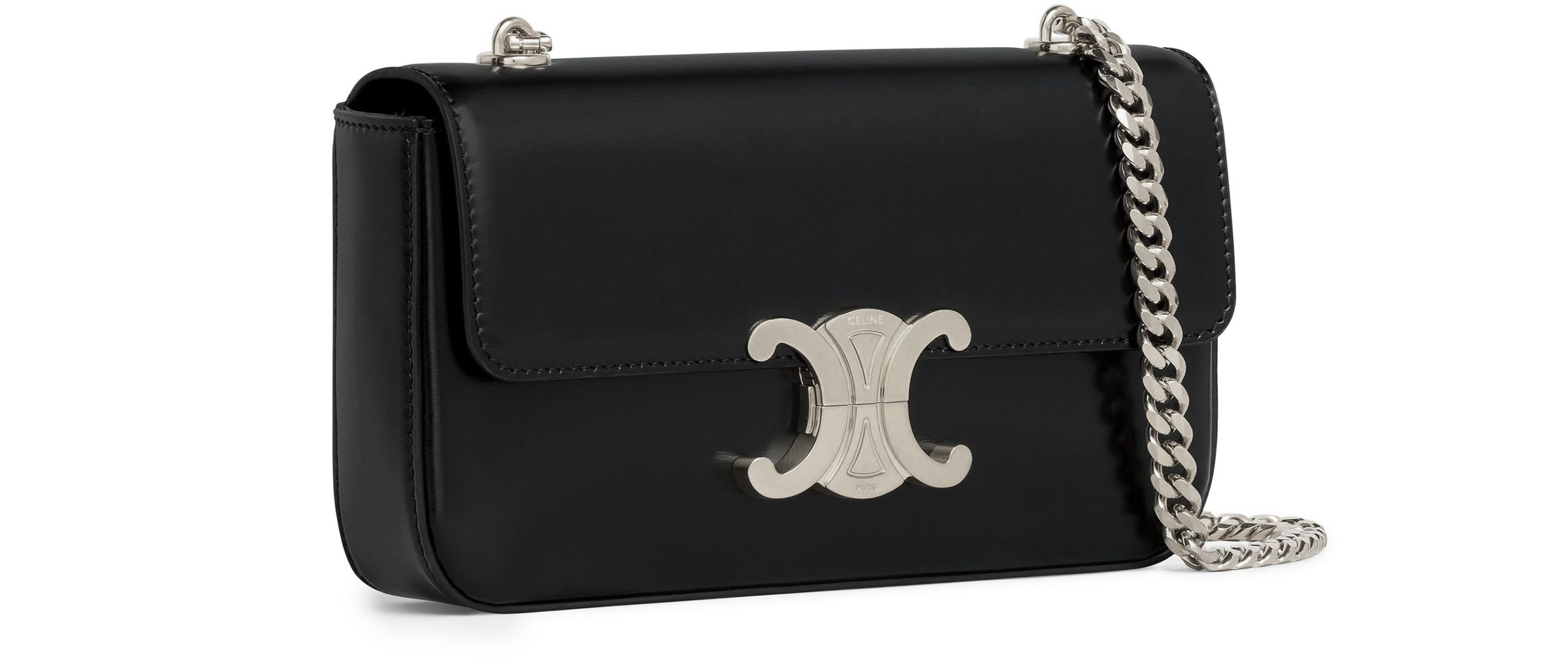 Triomphe Satin Calfskin Chain Shoulder Bag - Silver
