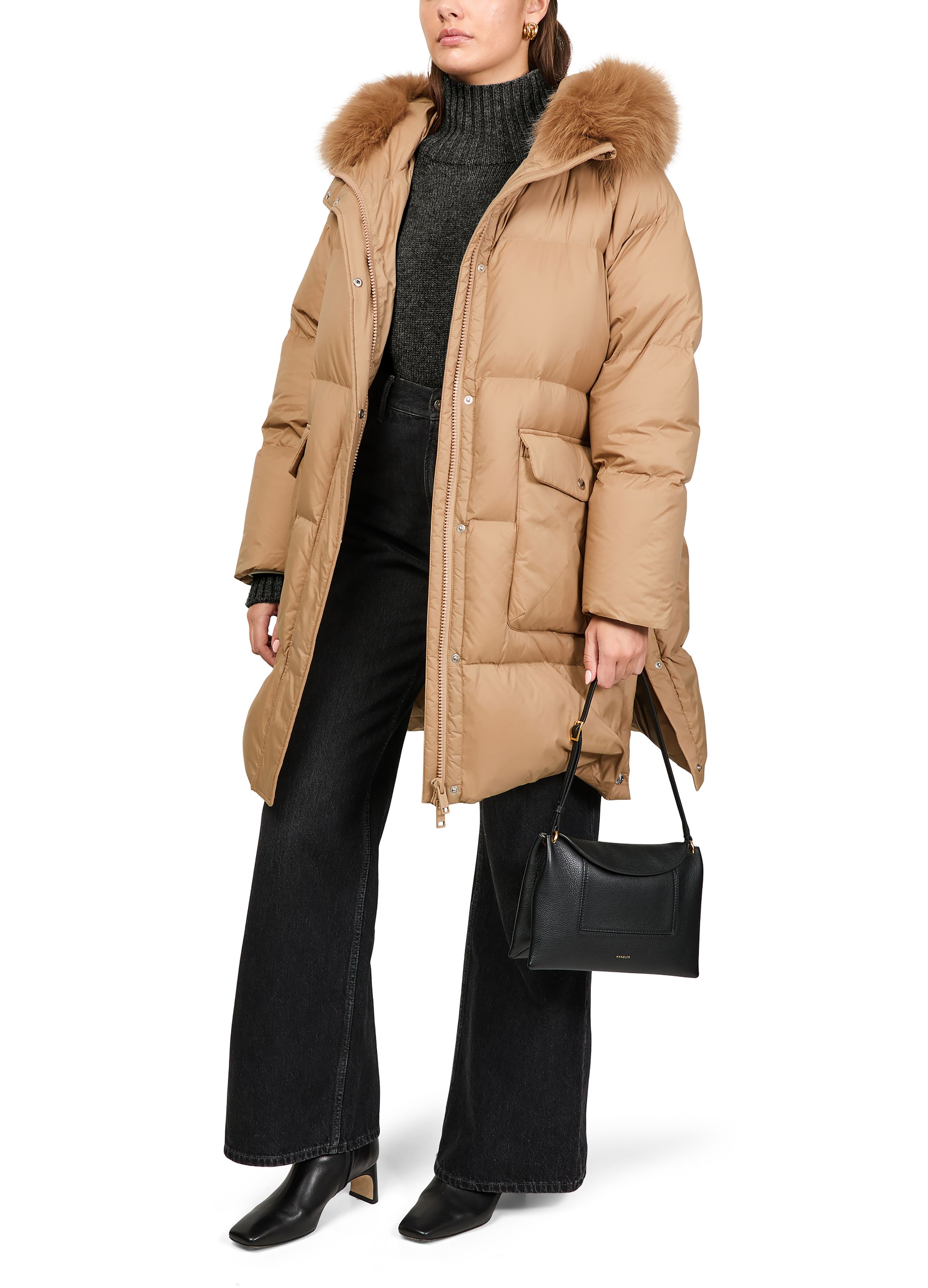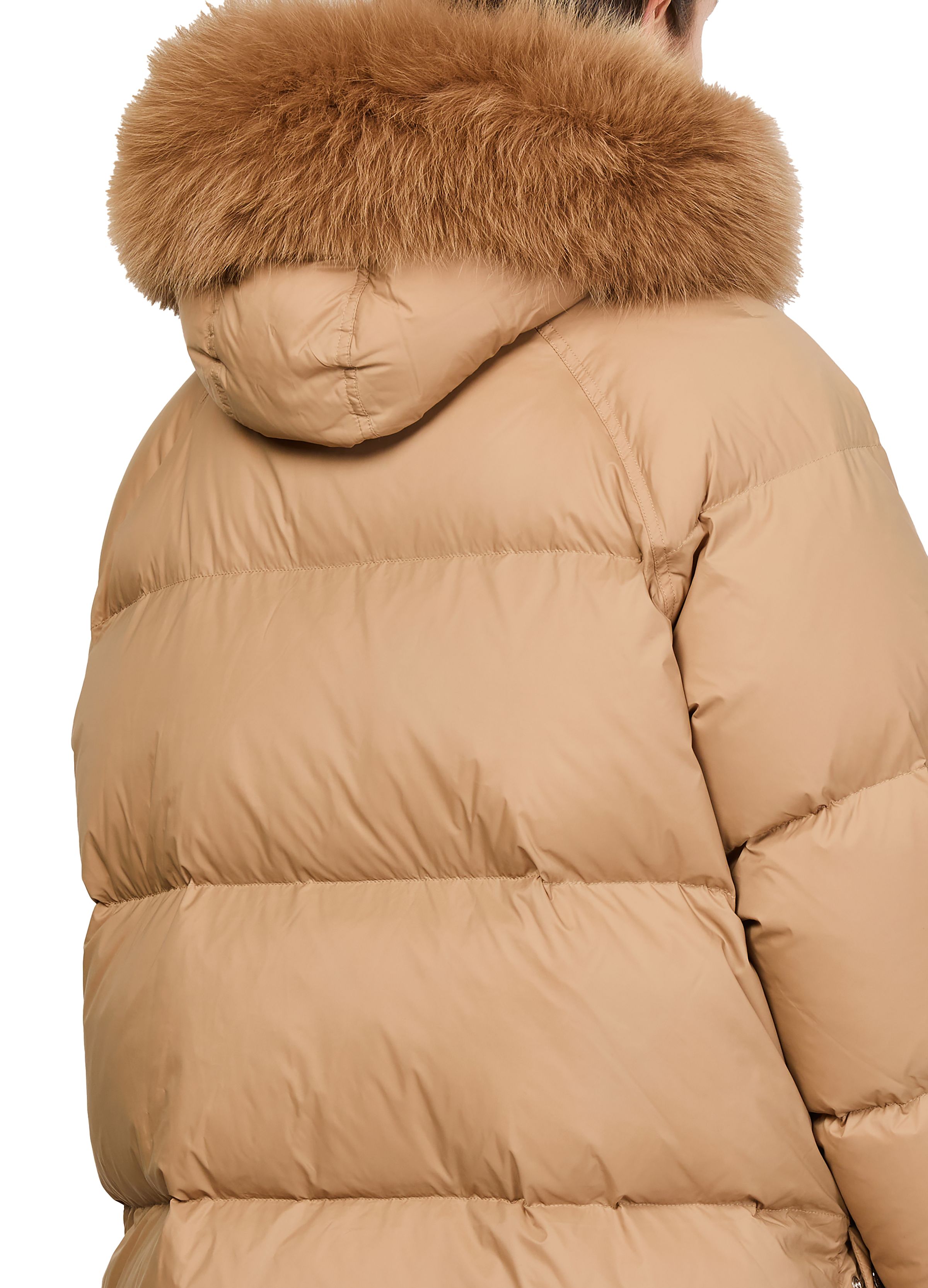 Puffer jacket with a fox fur hood