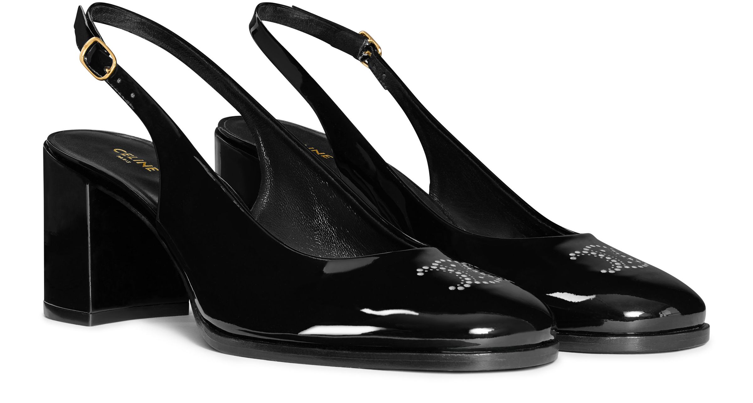 Celine Lily perforated Triomphe slingbacks in patent calfskin