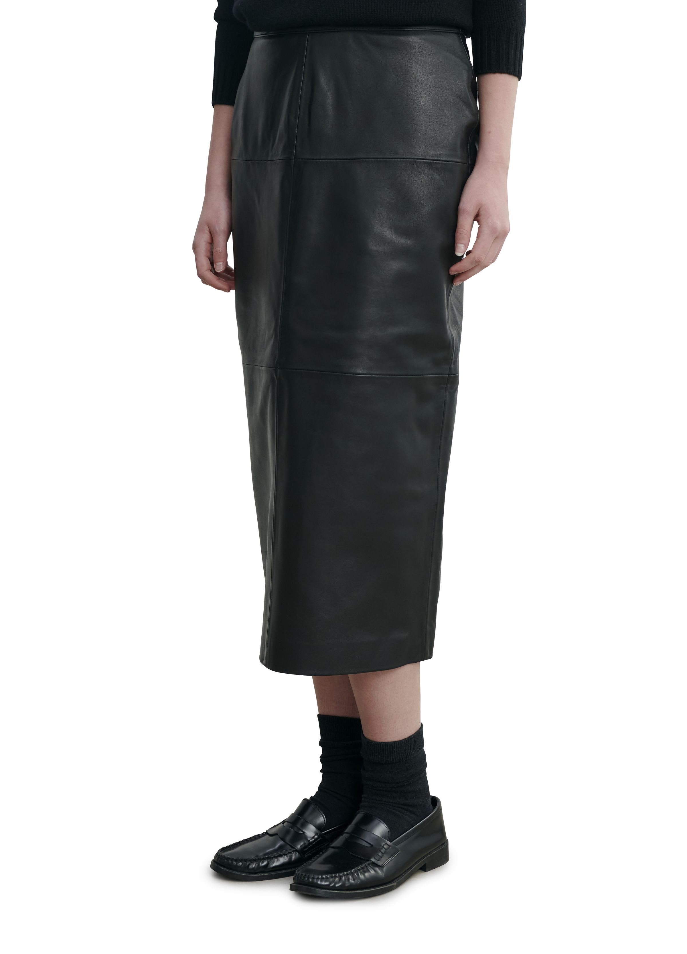 Lamb leather midi skirt - Black