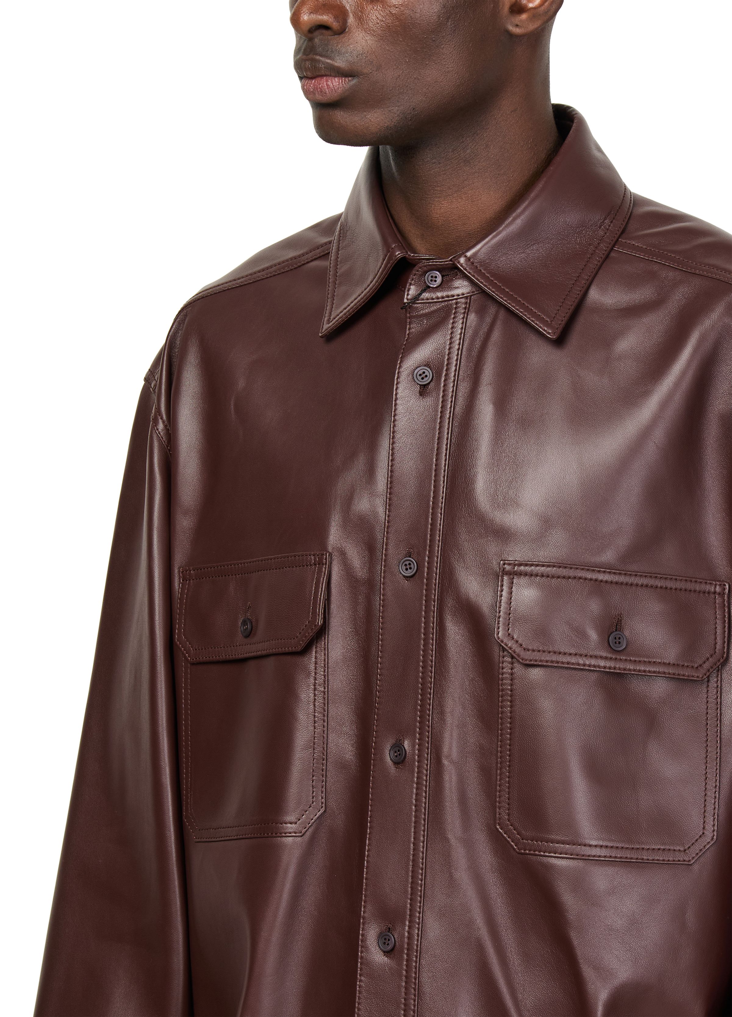 Overshirt in nappa leather - brown