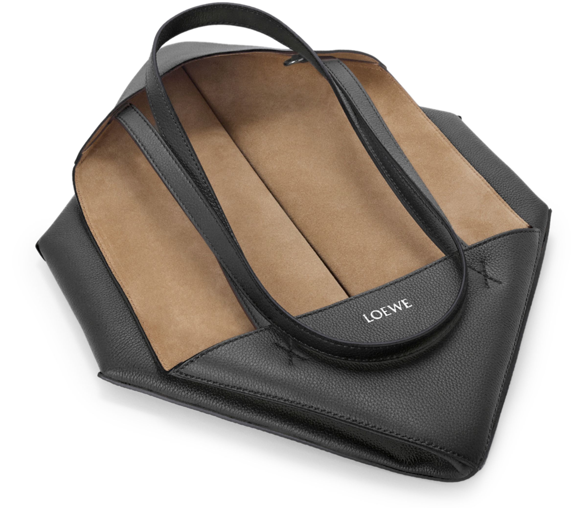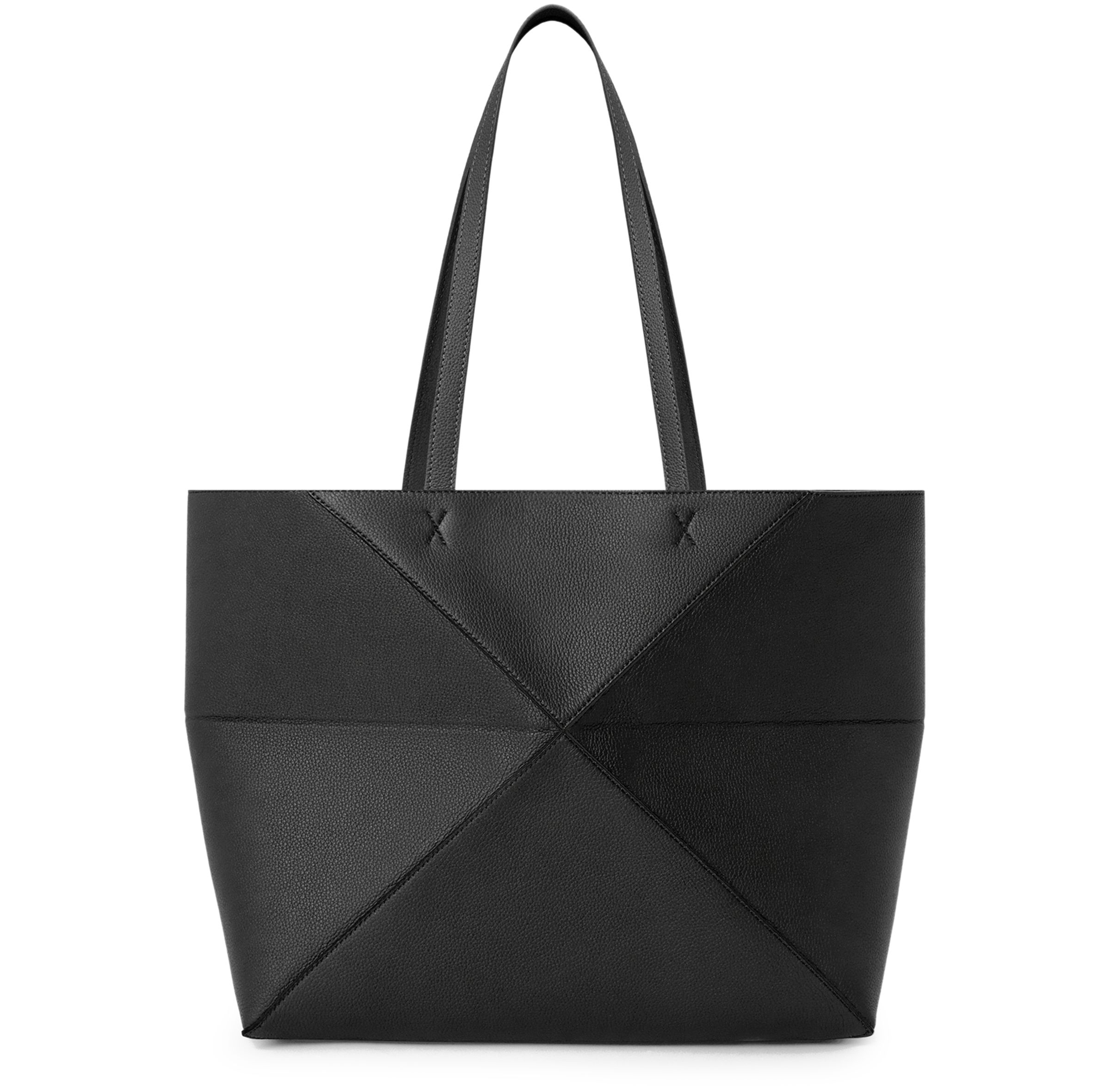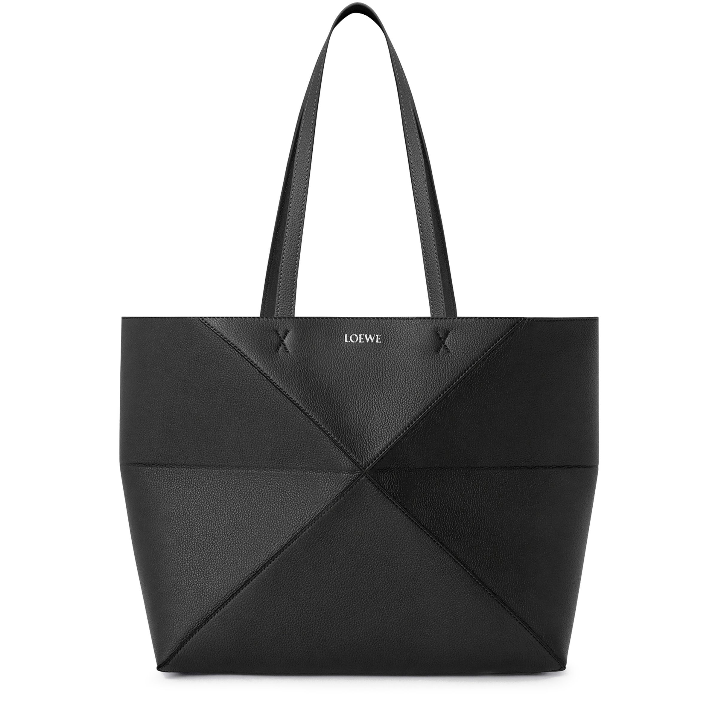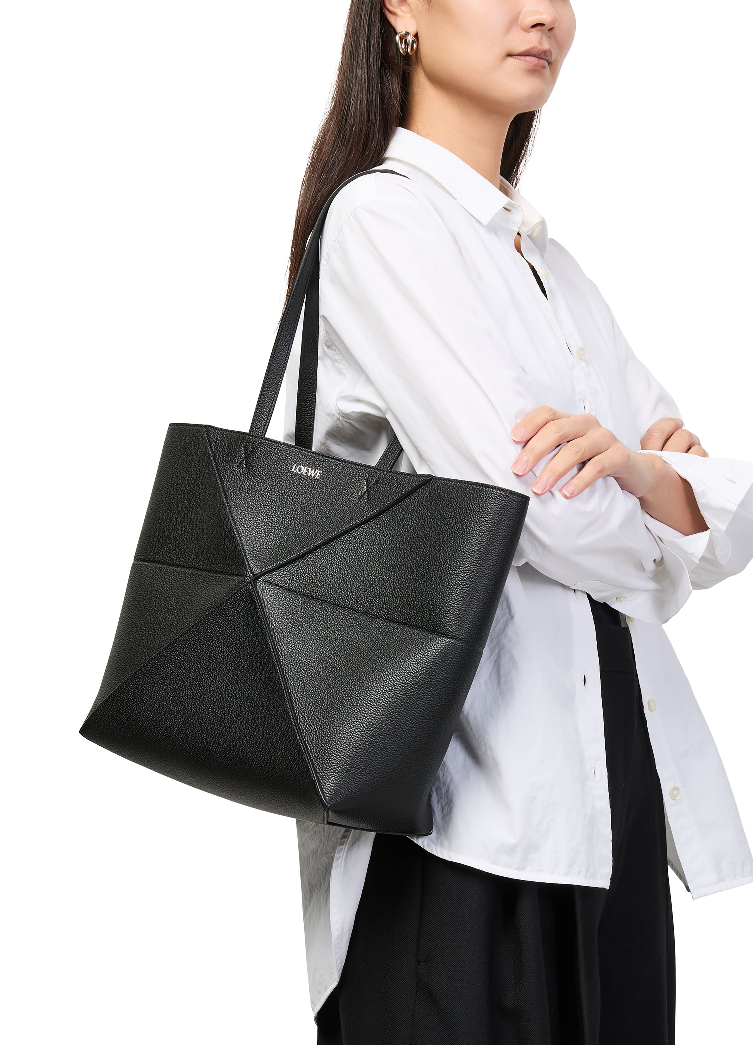 Medium horizontal Puzzle Fold tote in soft grained calfskin - Black