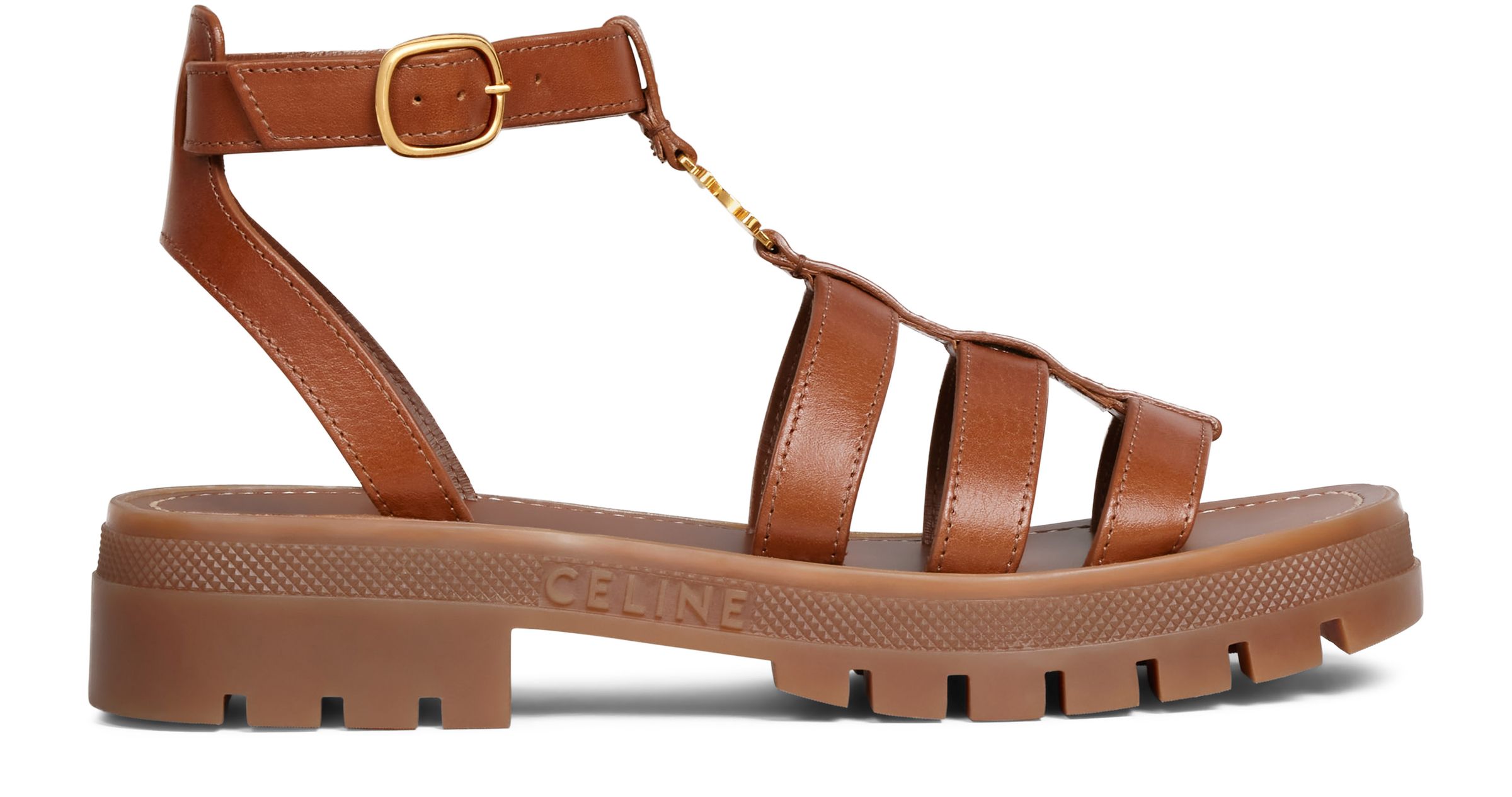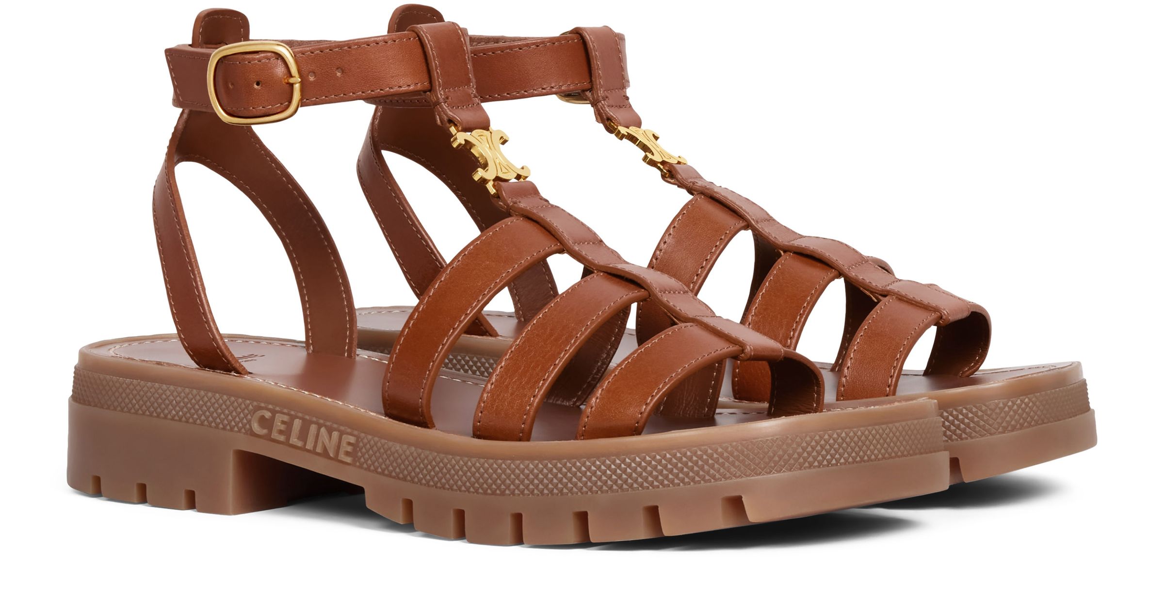 Clea Triomphe Vegetable-Tanned Leather Chunky Heel Roman Sandals