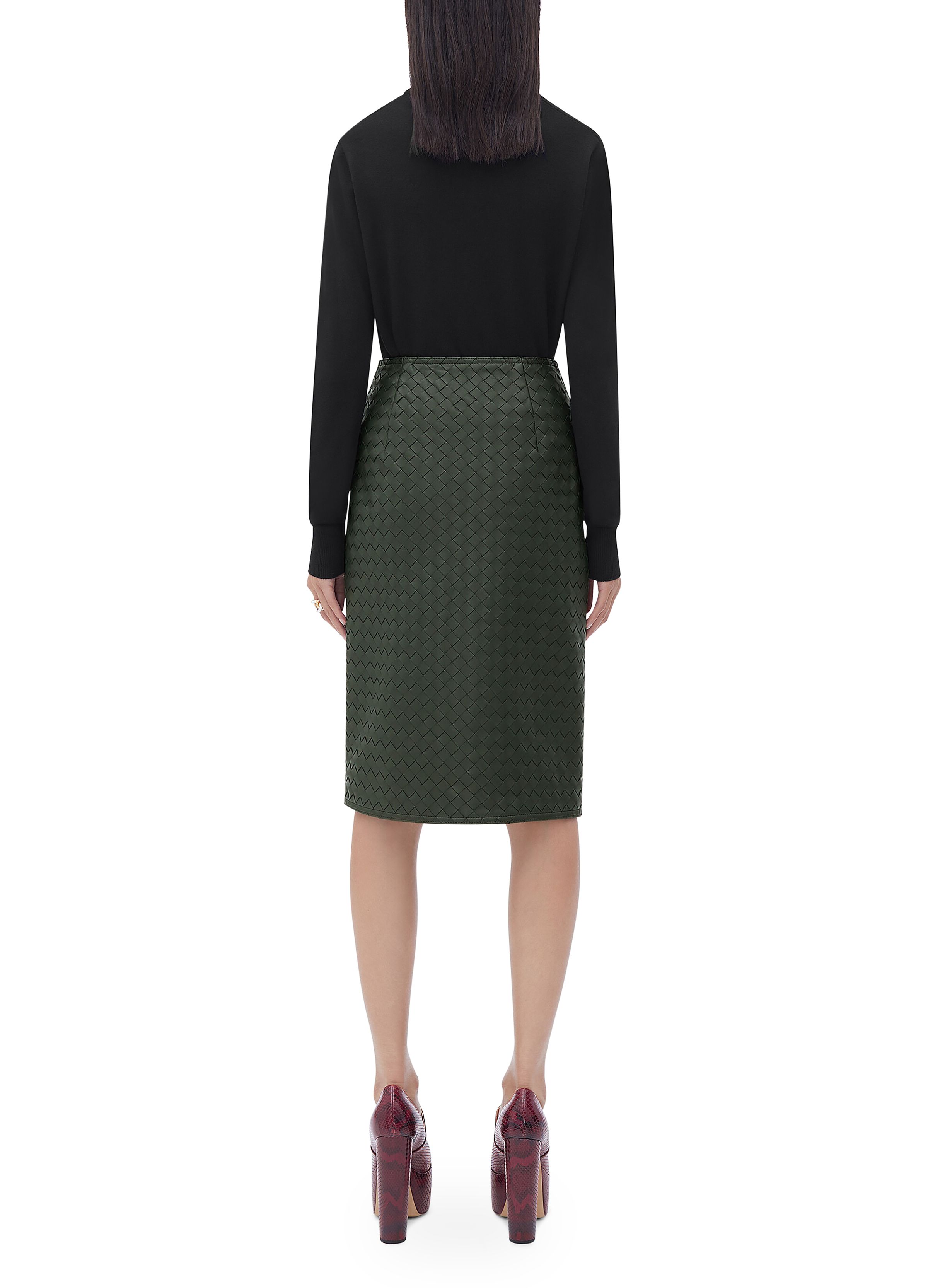 Intrecciato leather skirt
