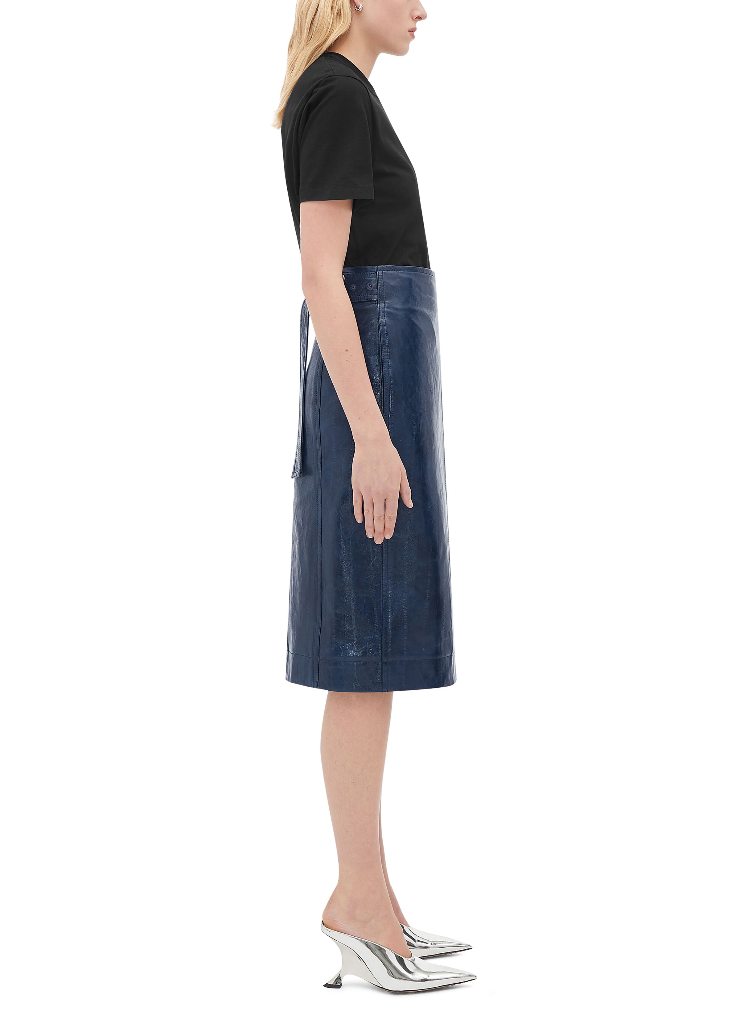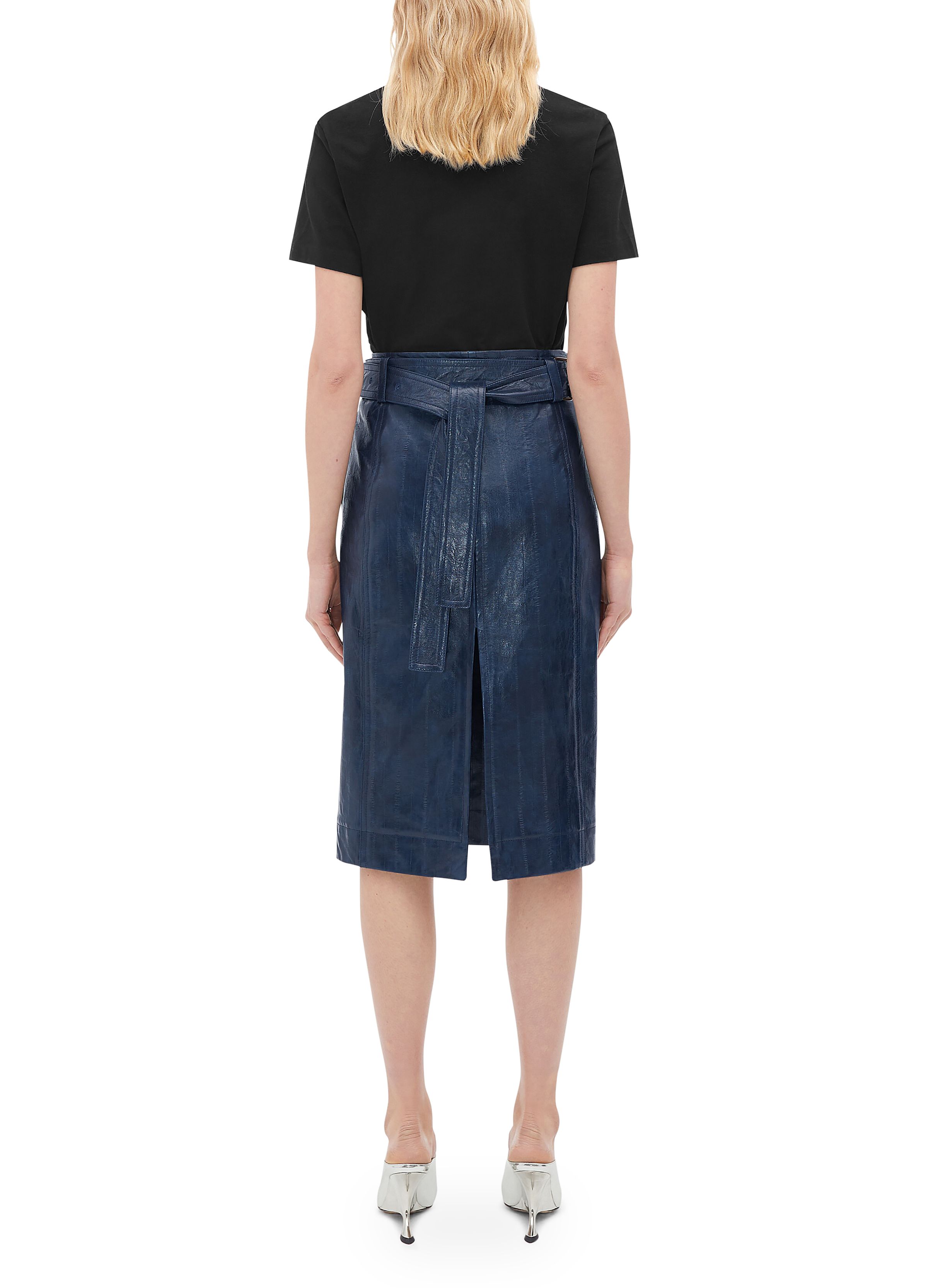 Embossed leather midi skirt