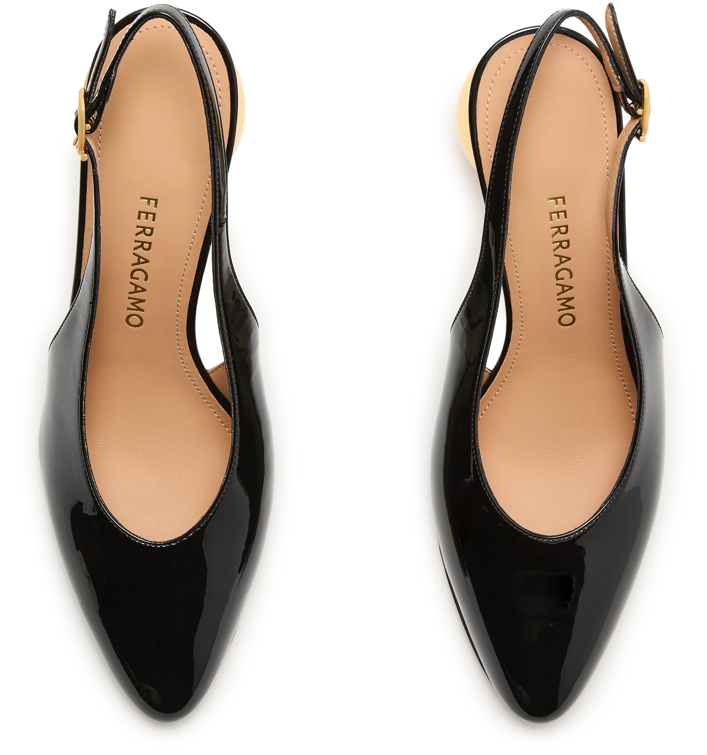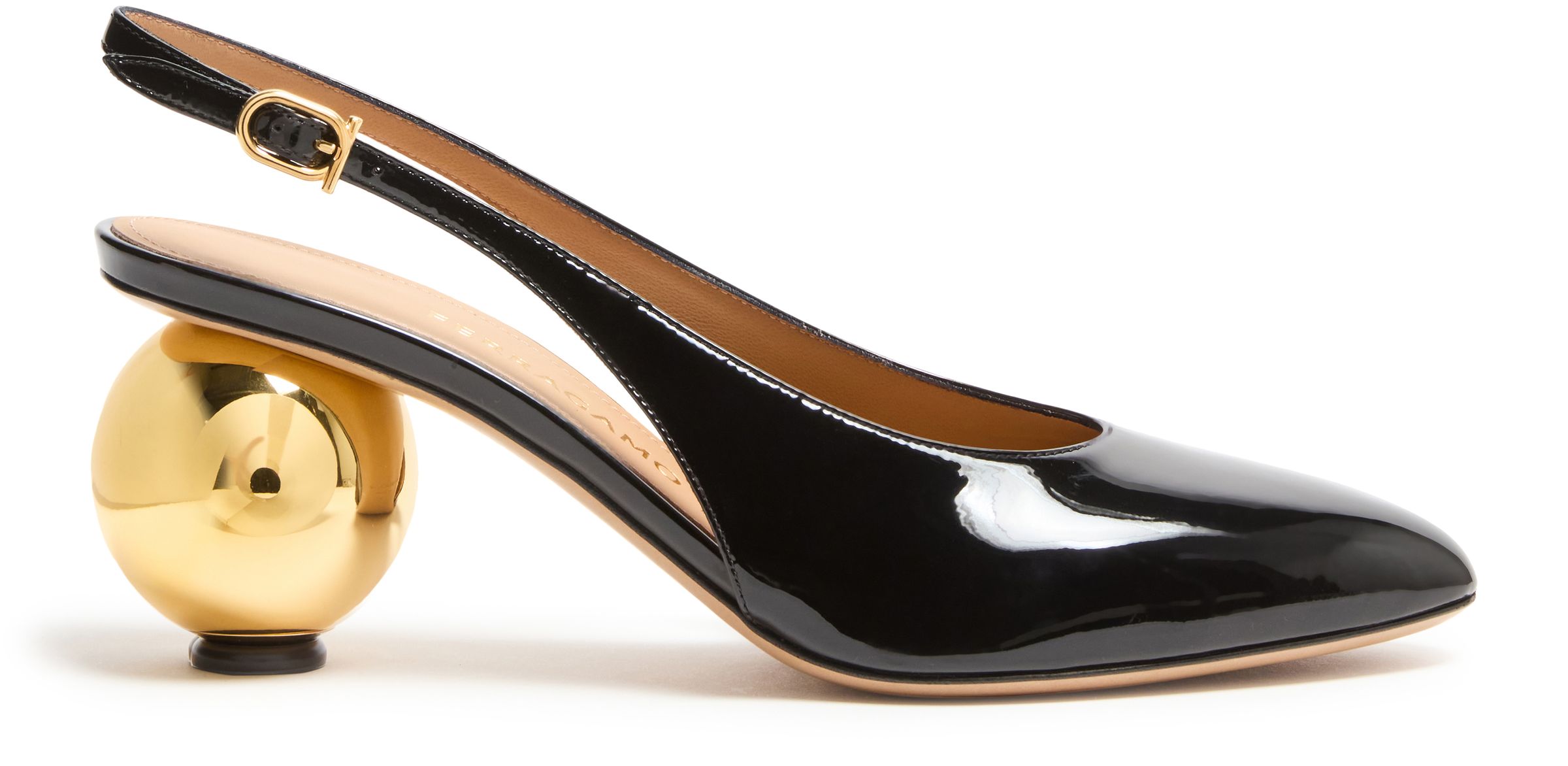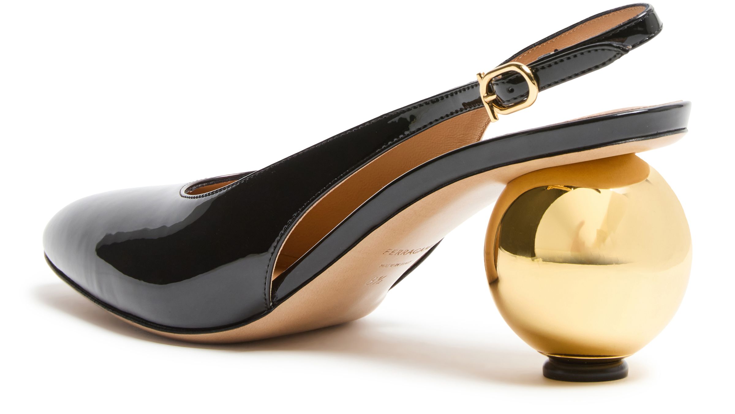 Spherical heel slingback pumps