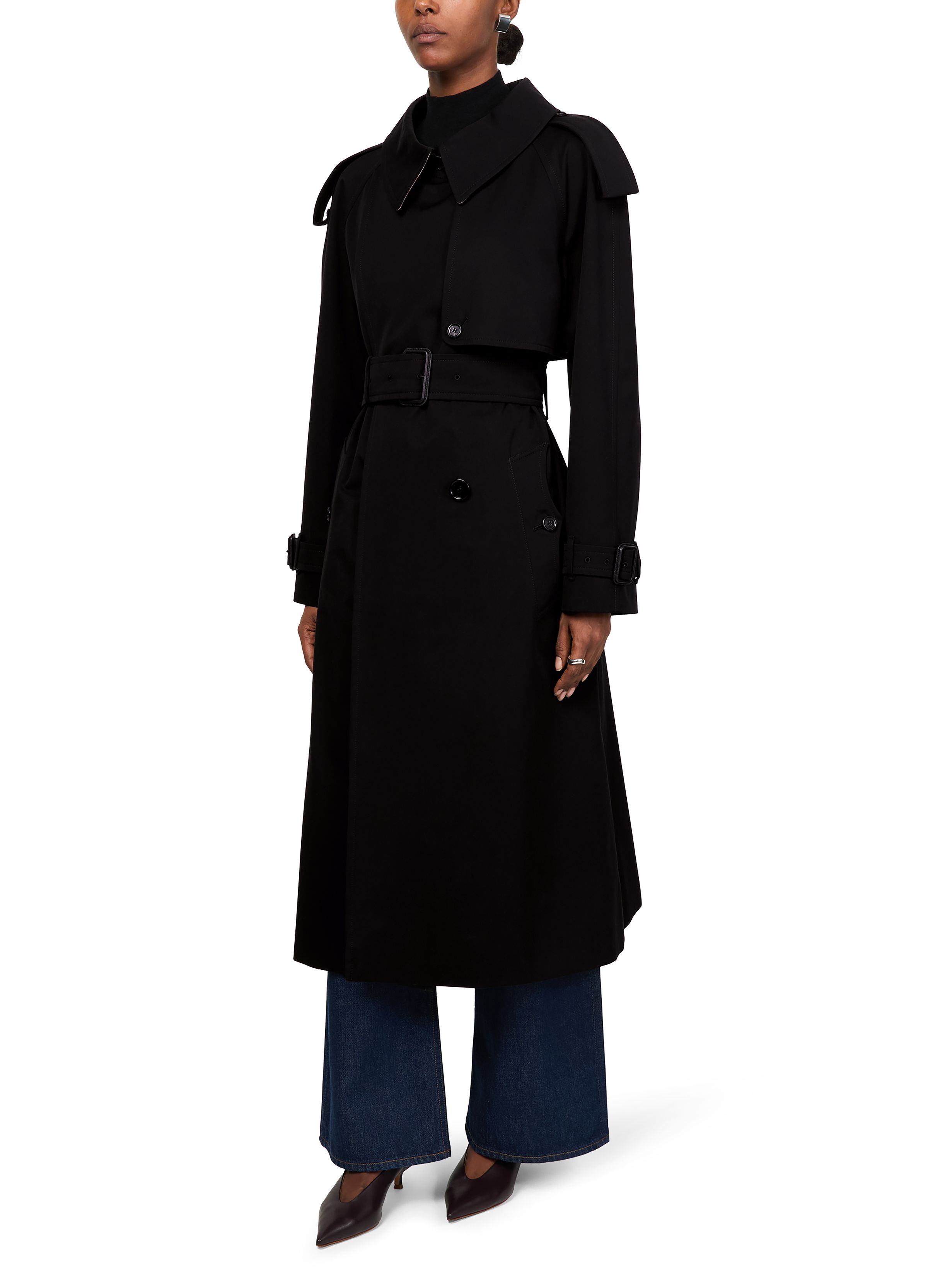 Fitzrovia long gabardine trench coat - Black