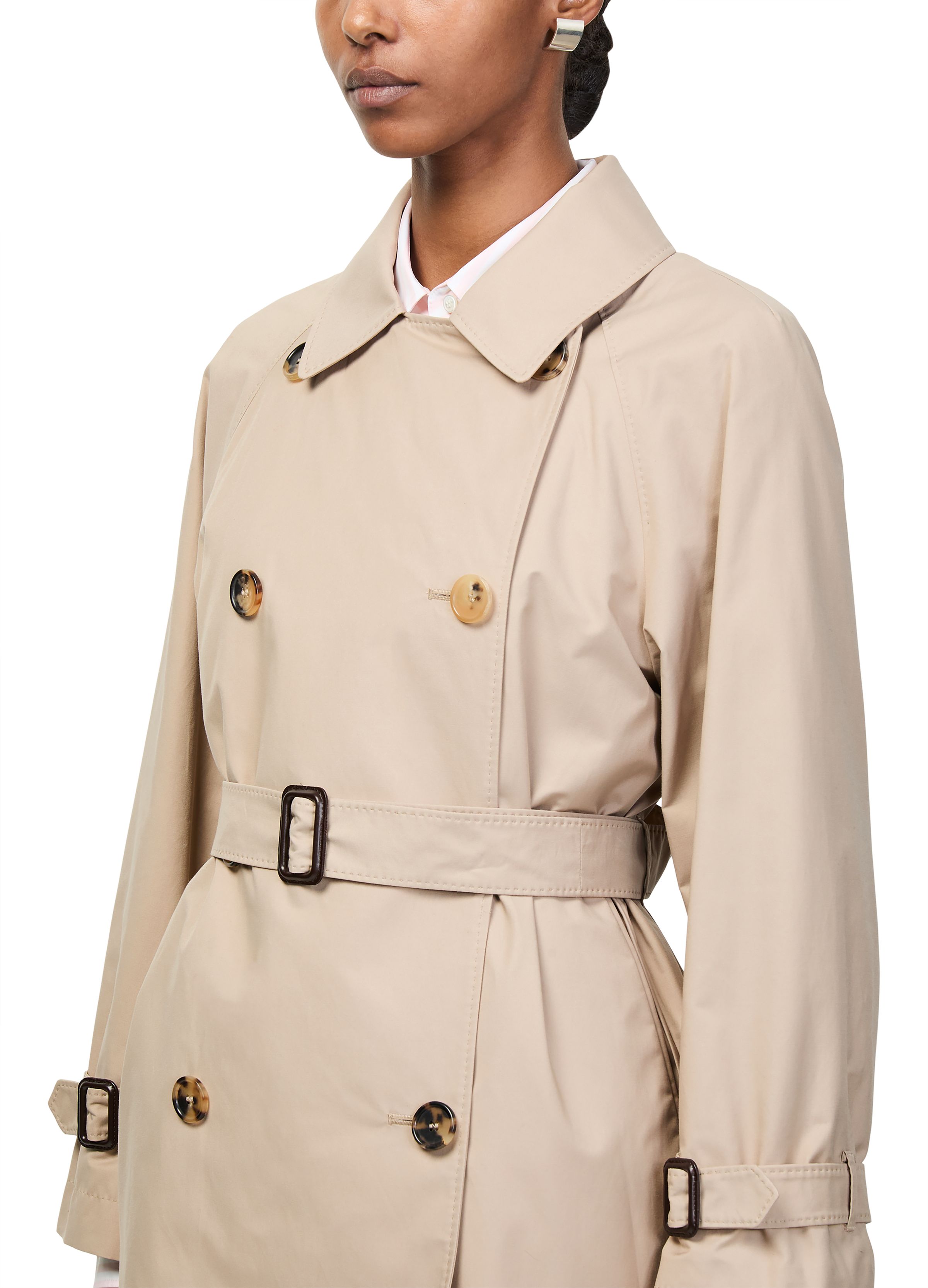 Belted short trench coat