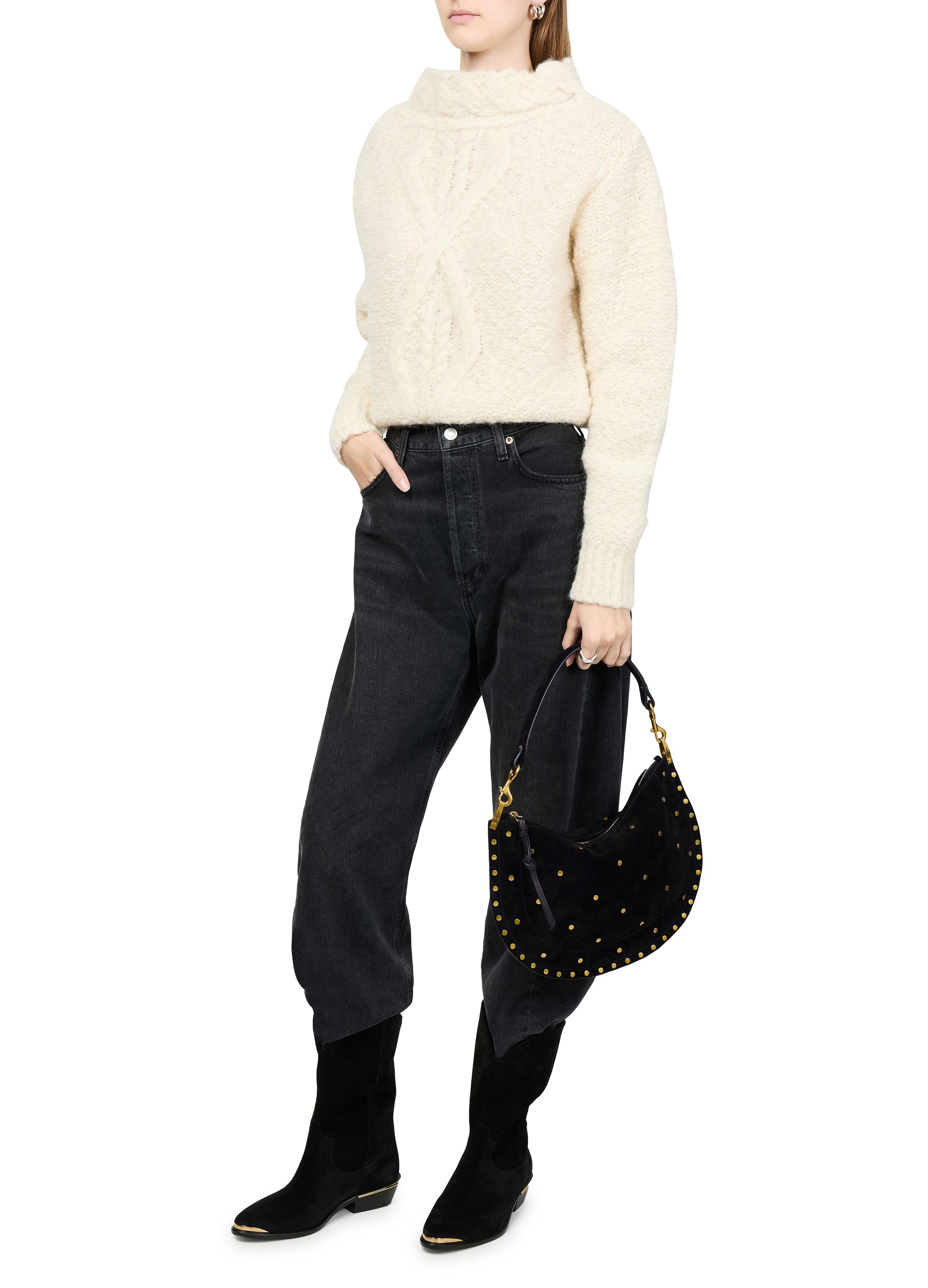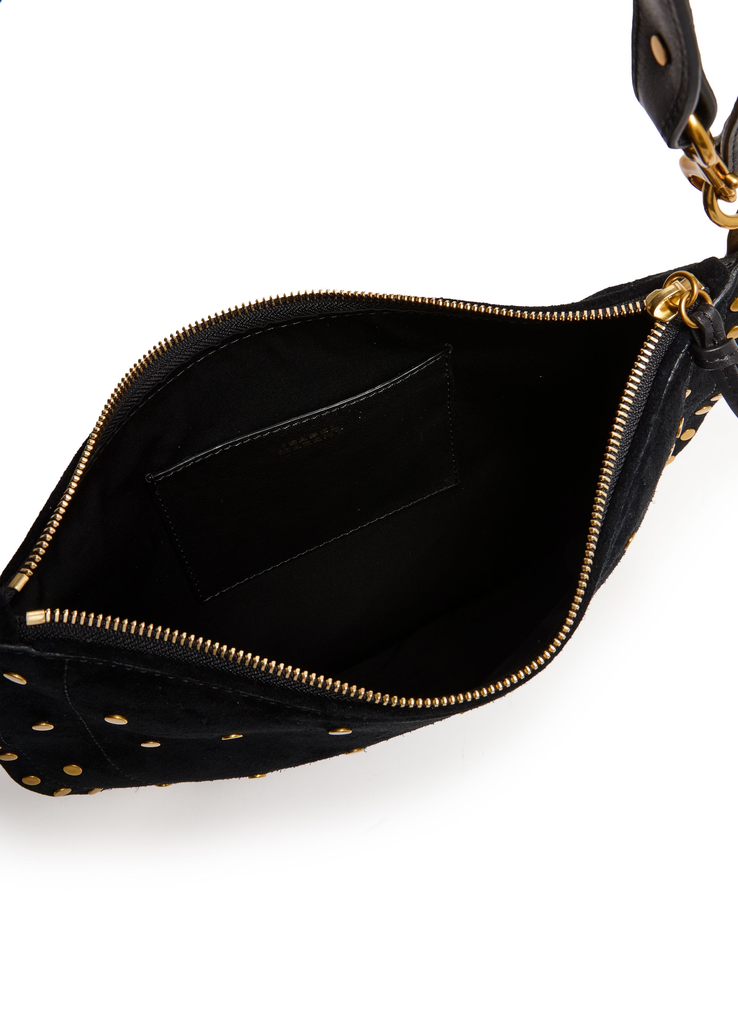 Oskan Soft Zip shoulder bag in suede with studs - Black