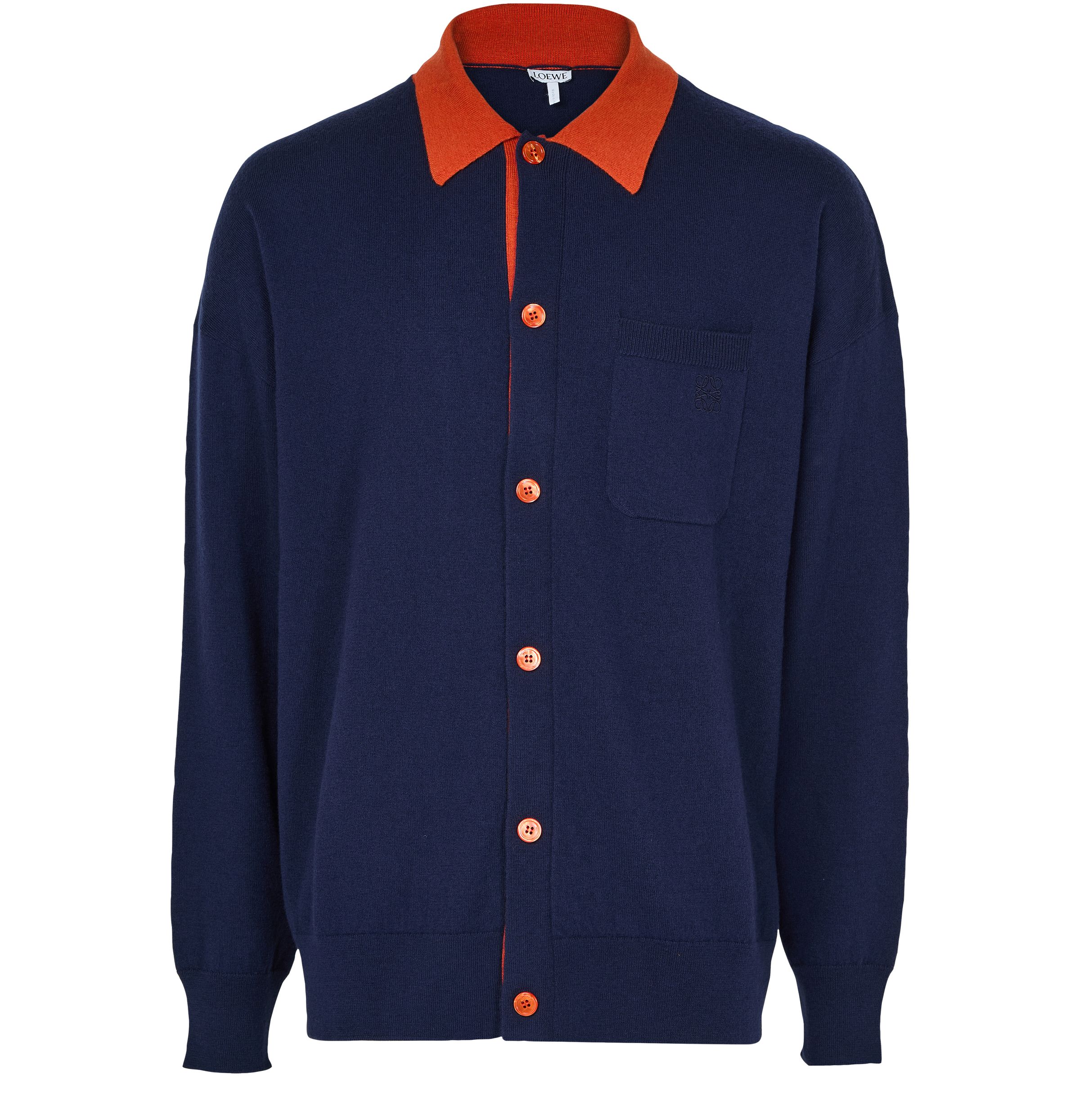 Polo cardigan in wool - navy blue