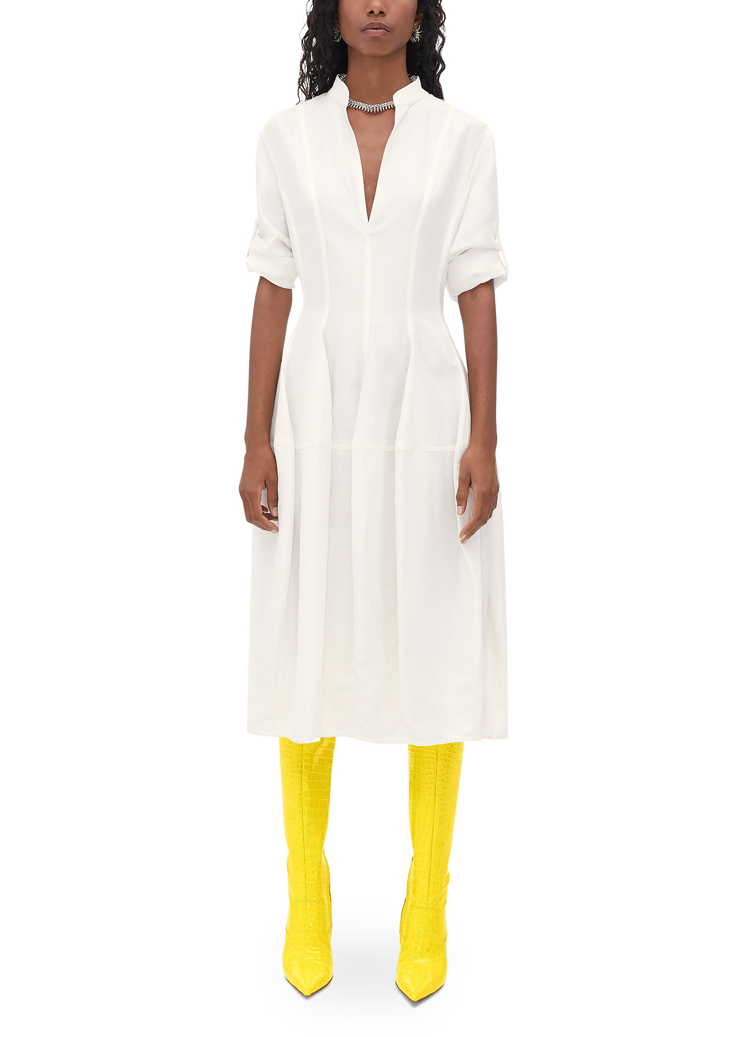 Rayon Linen Dress - white