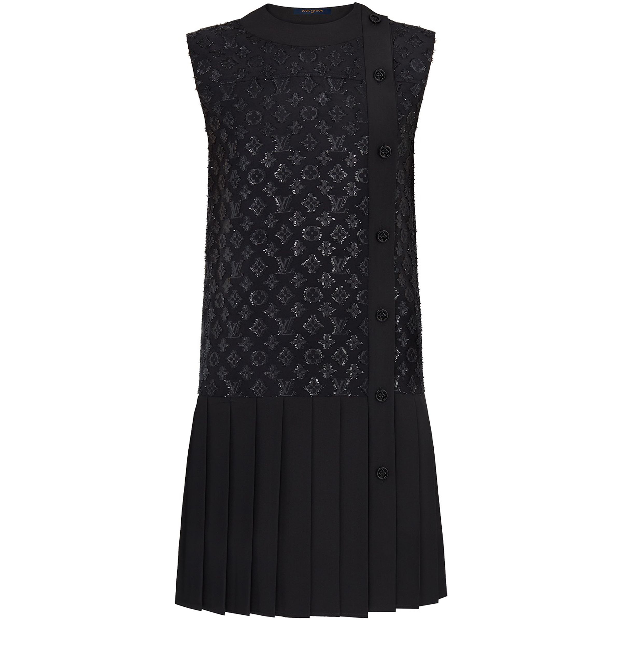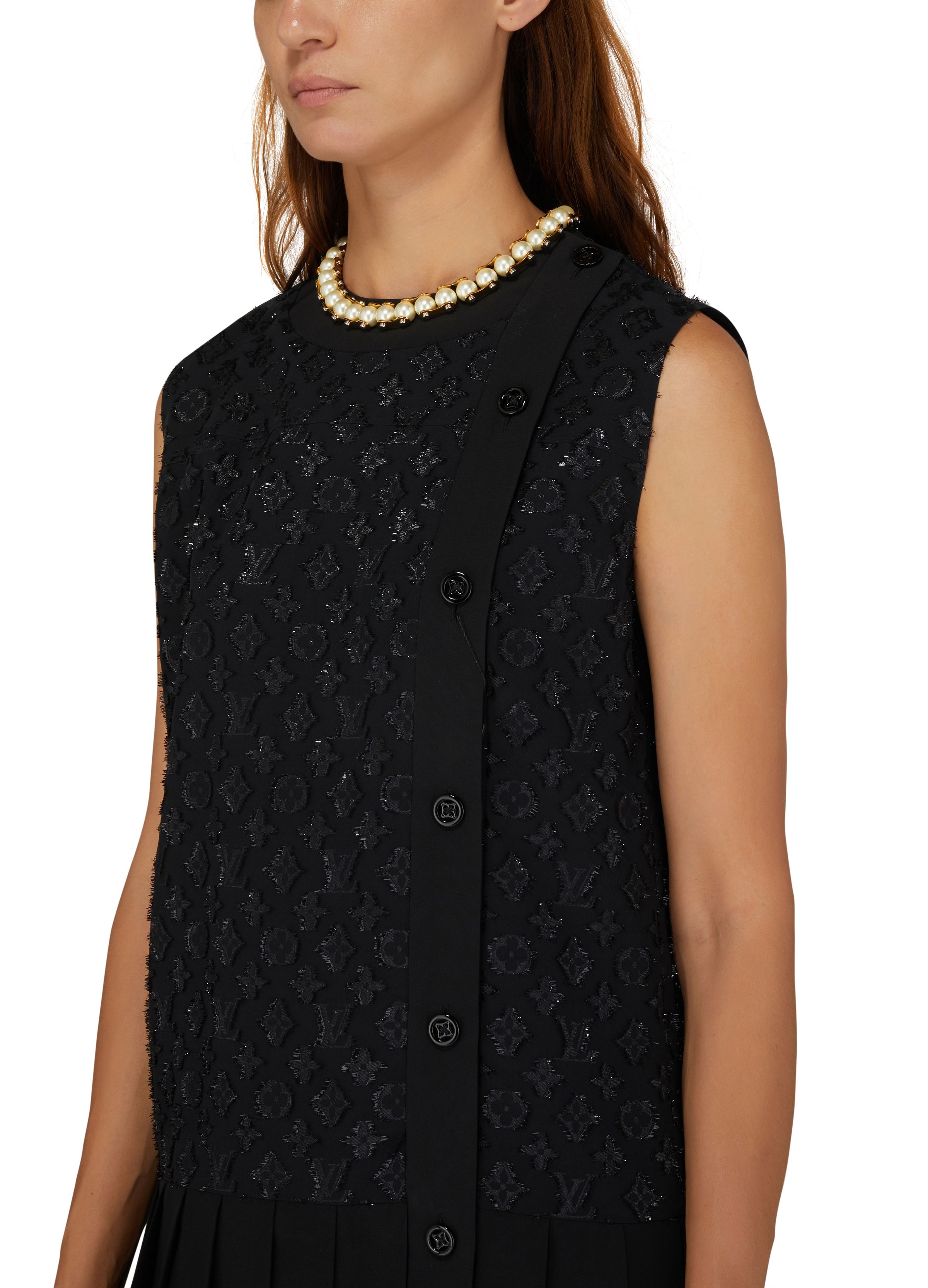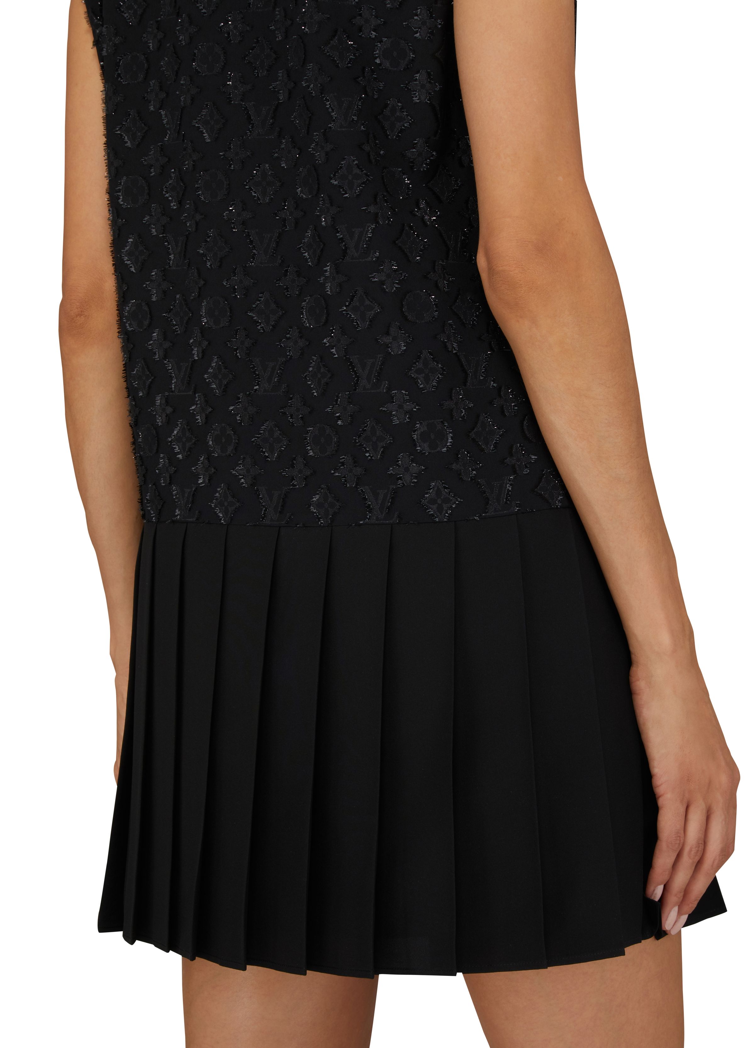 Short Straight-Cut Jacquard Dress with Monogram - Black