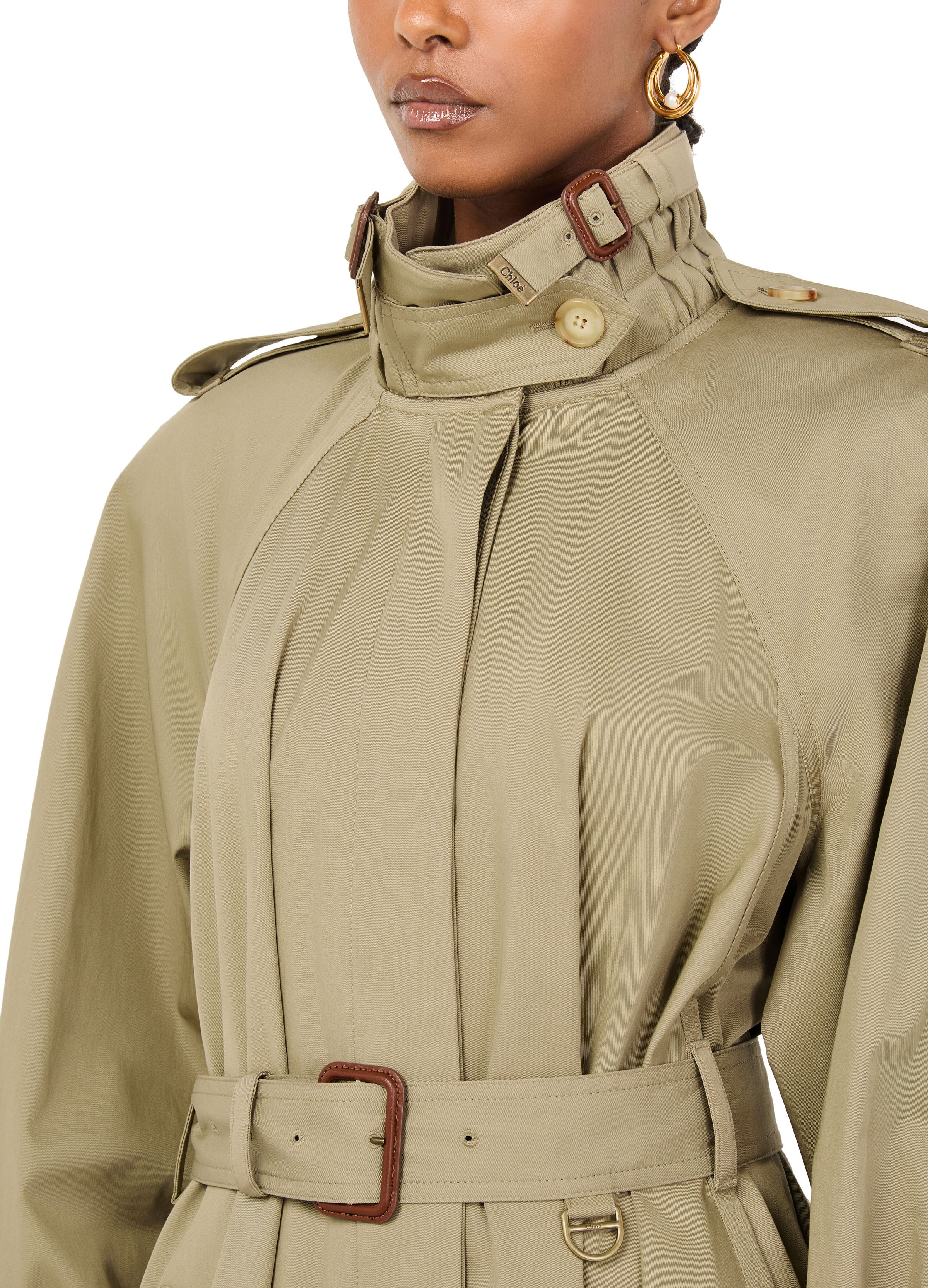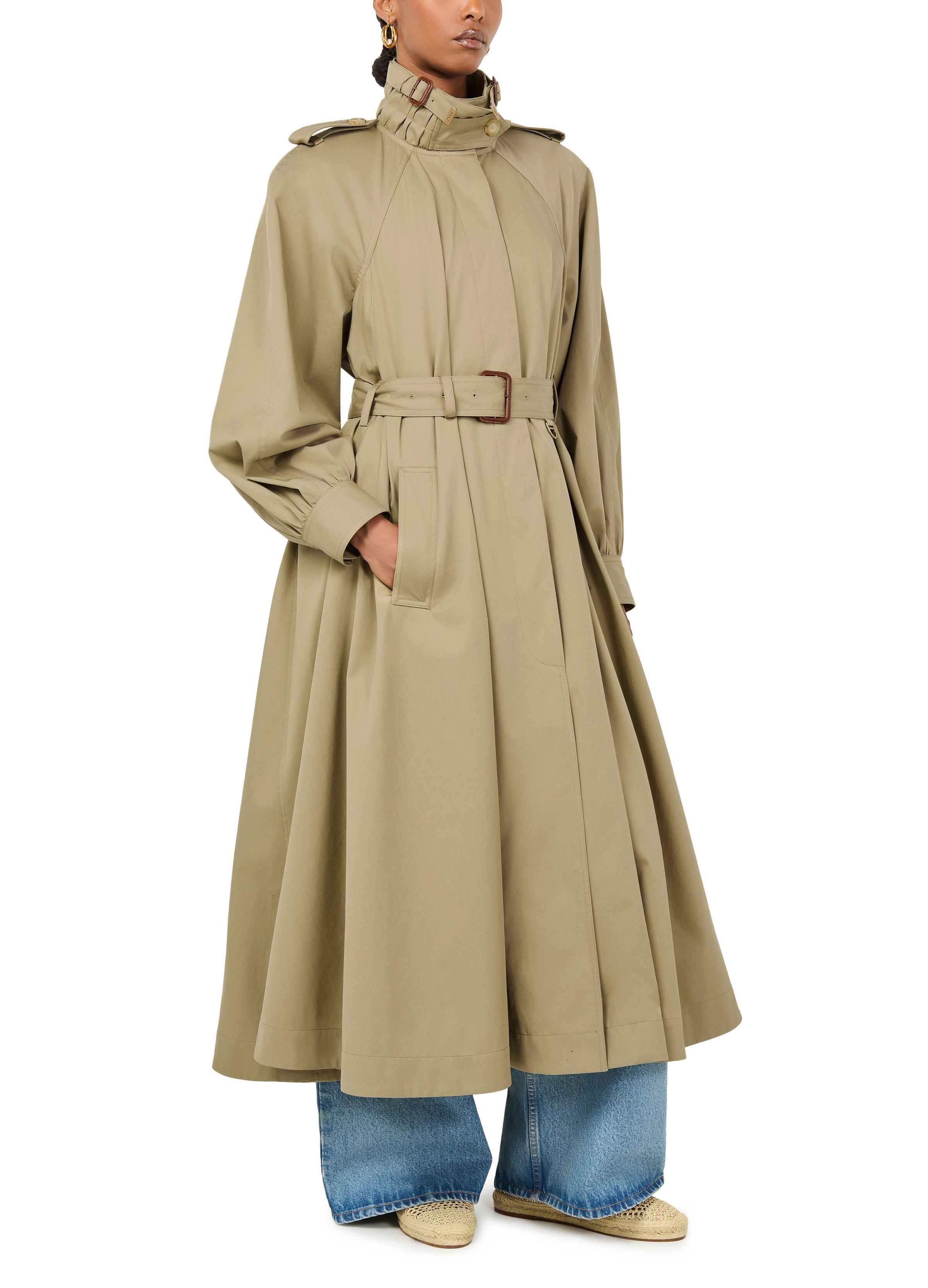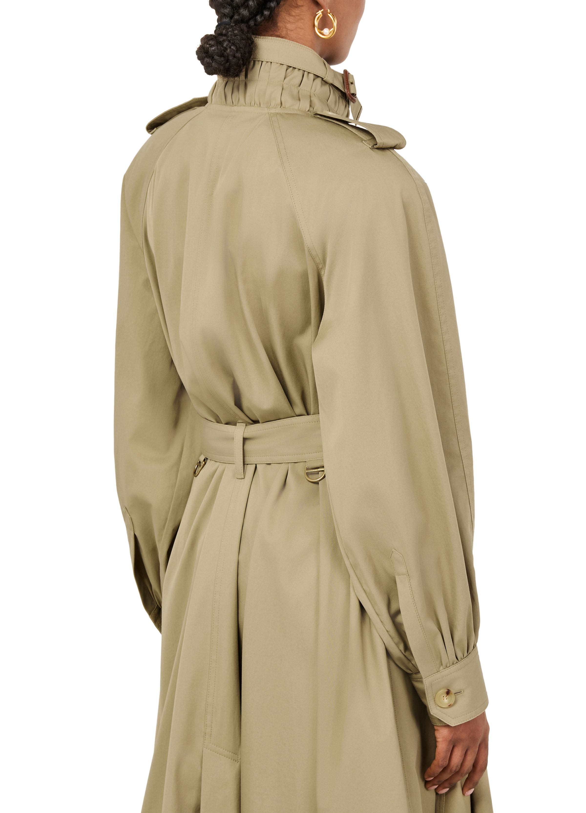Long trench coat with stand-up collar in cotton gabardine