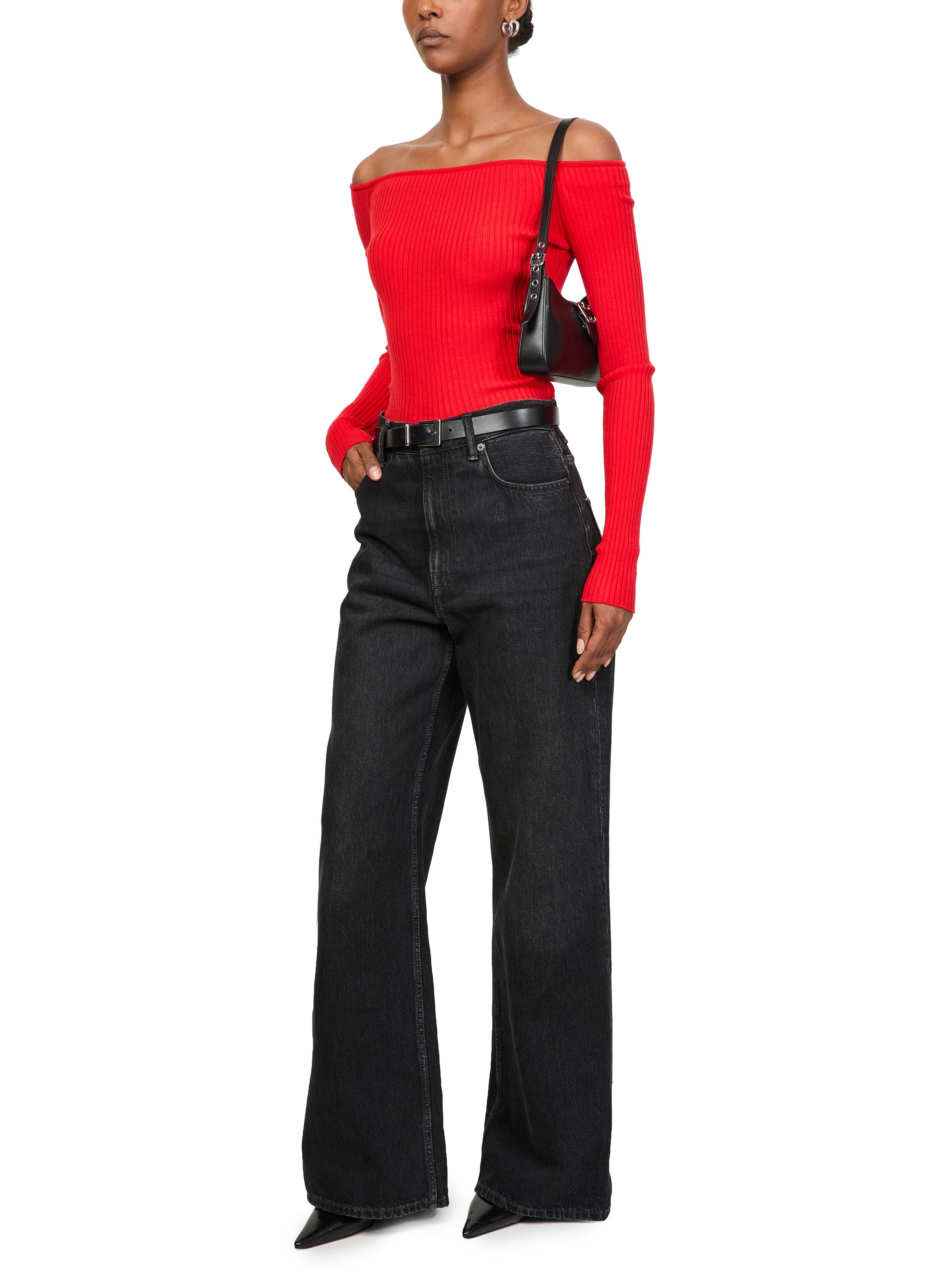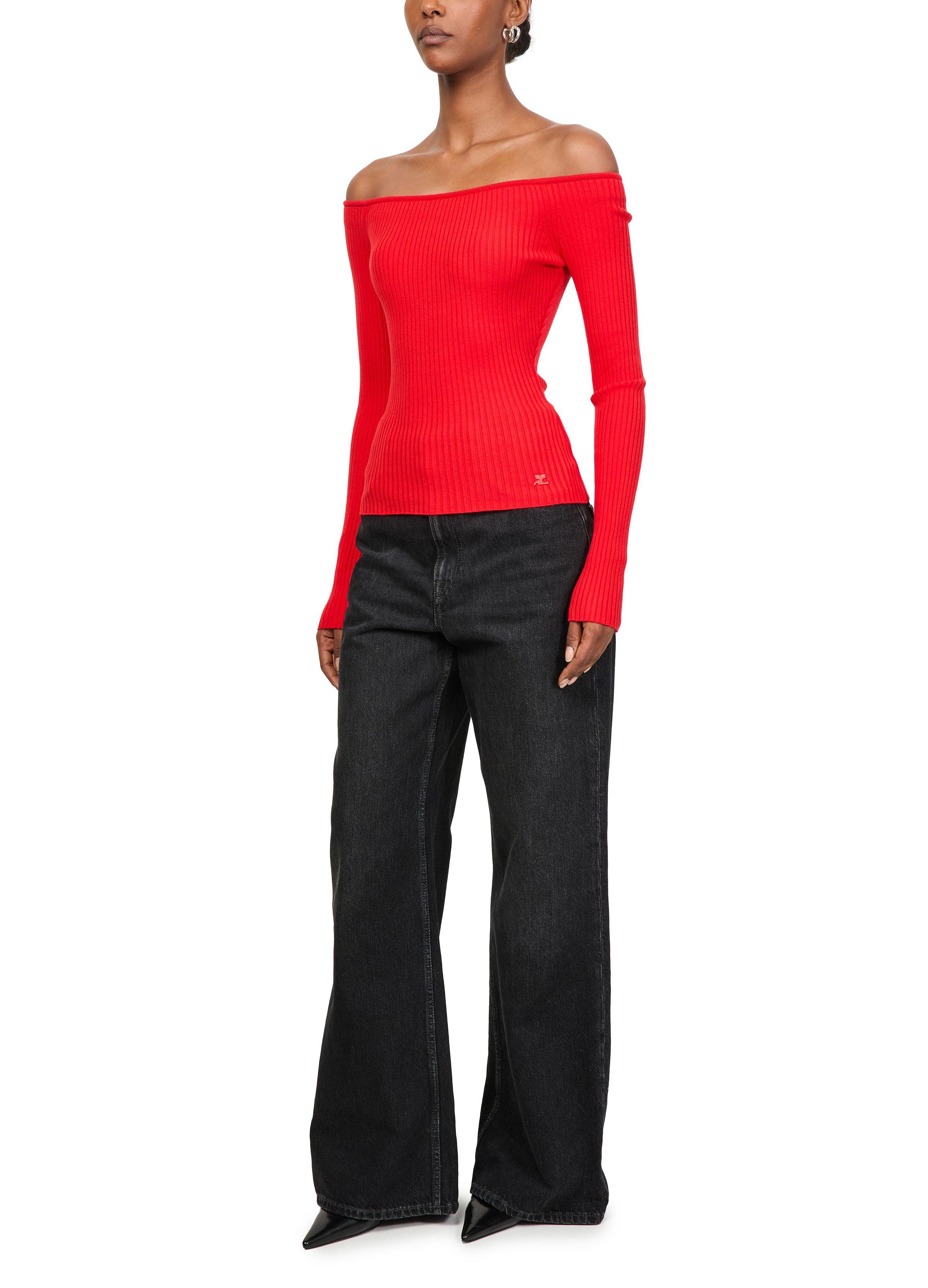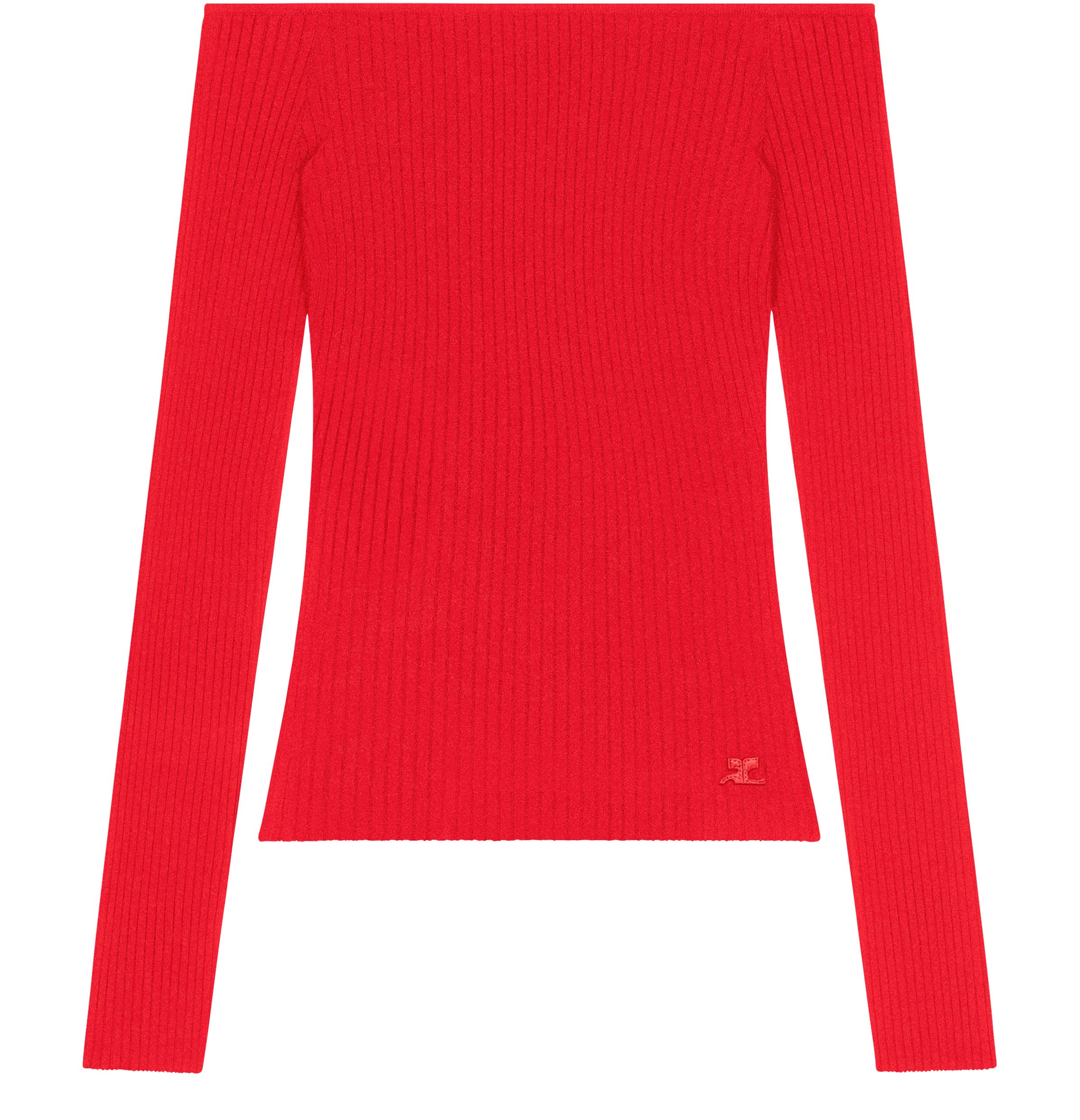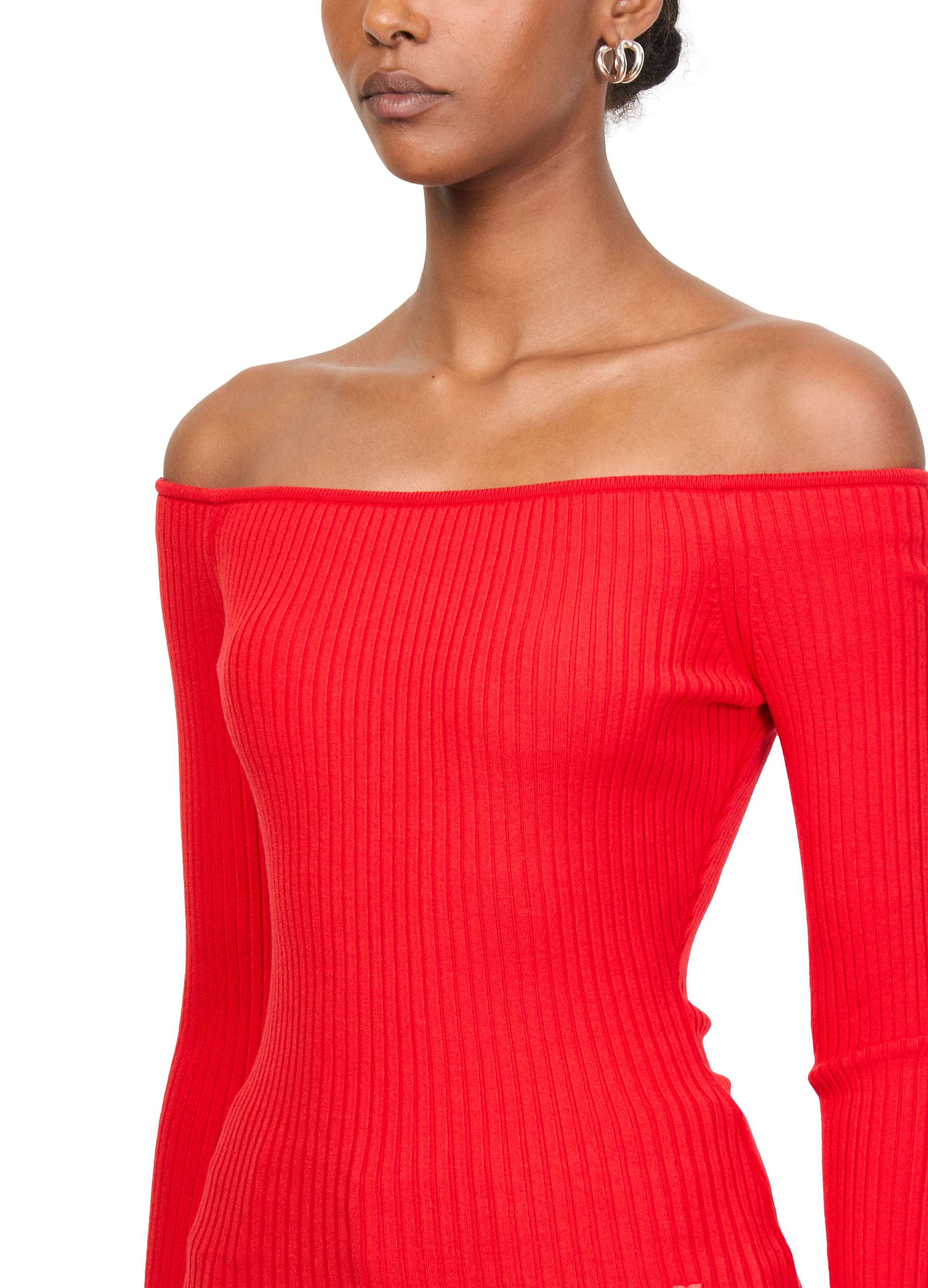 Off shoulder rib knit top - Red