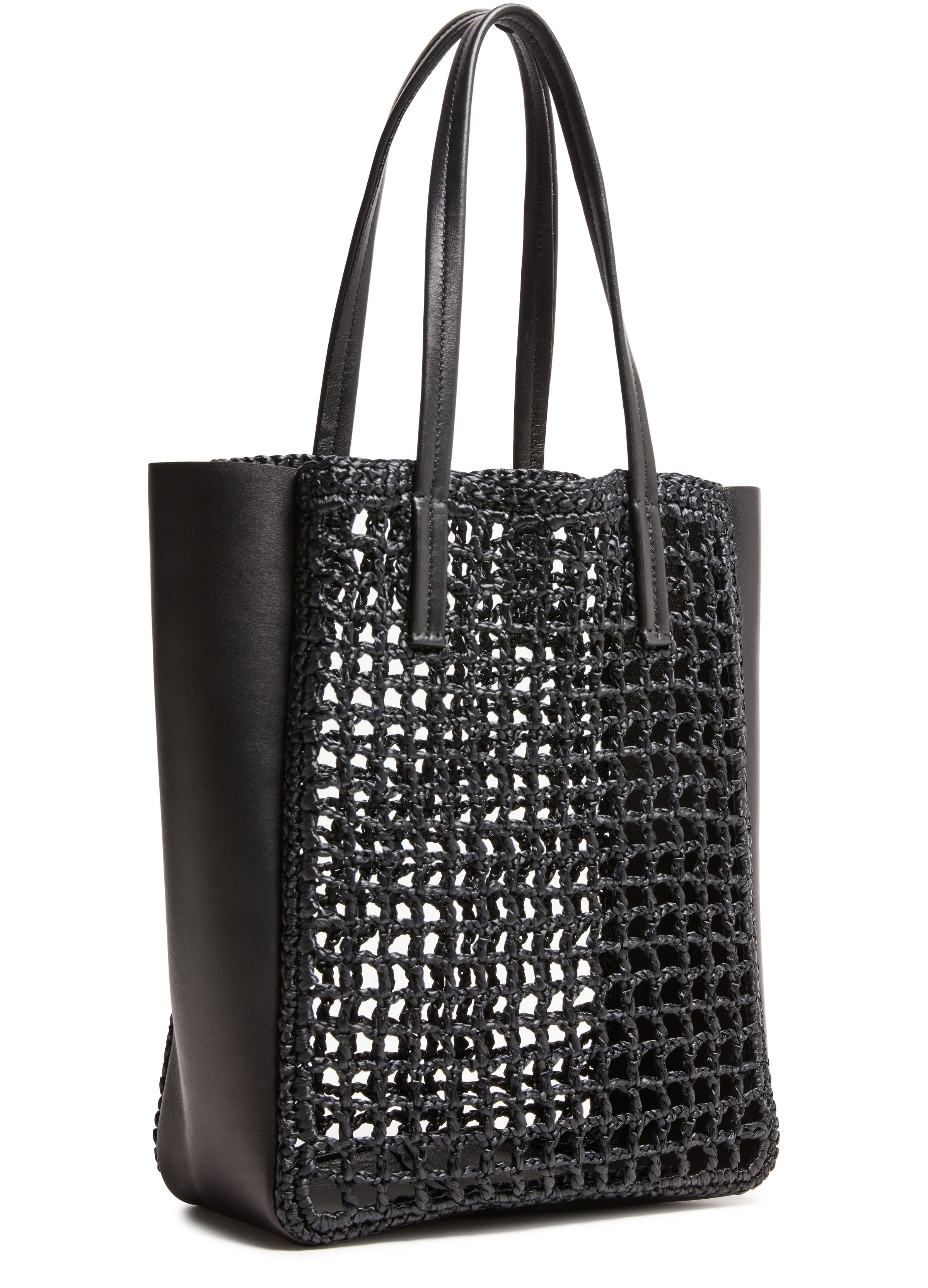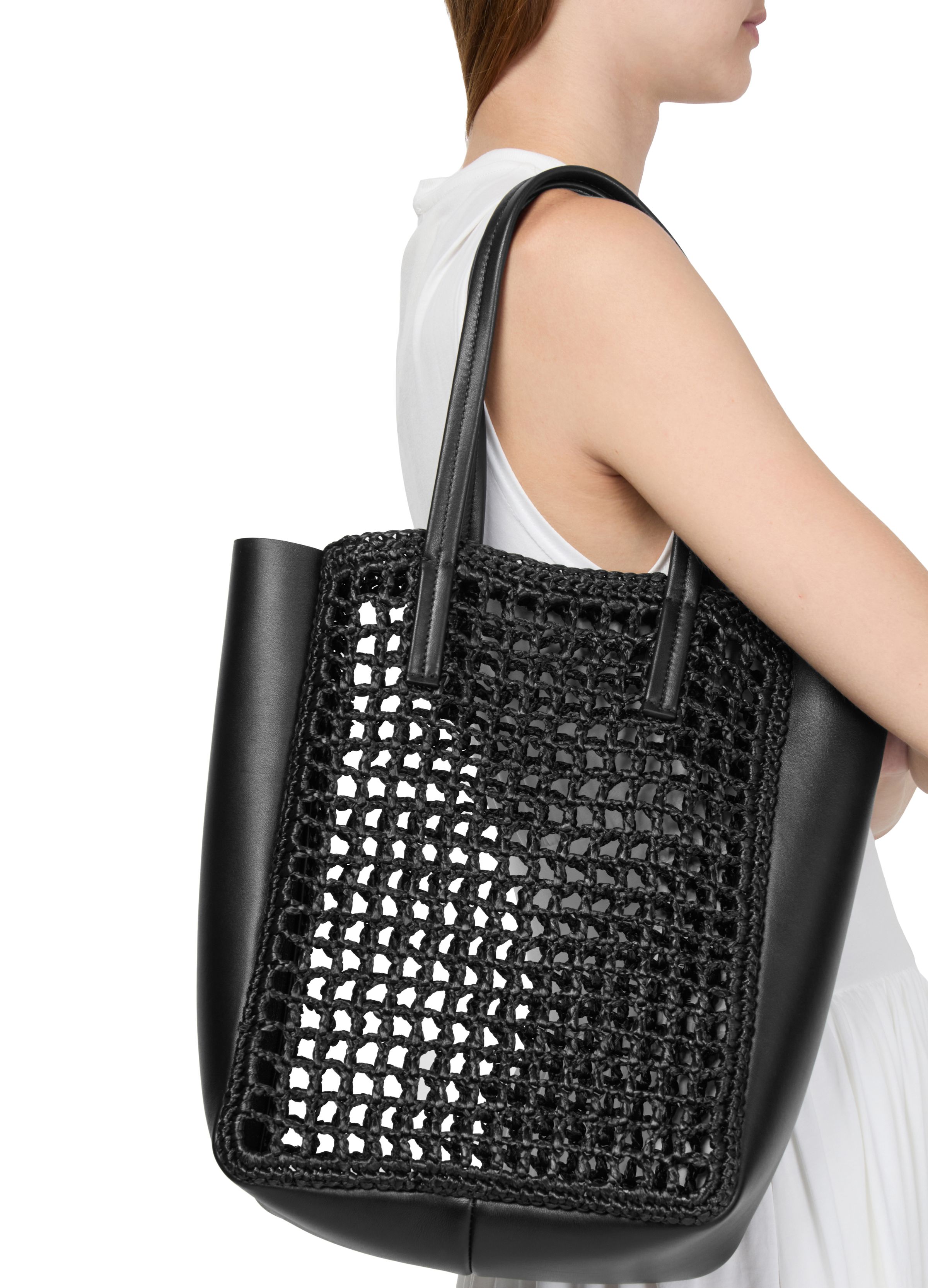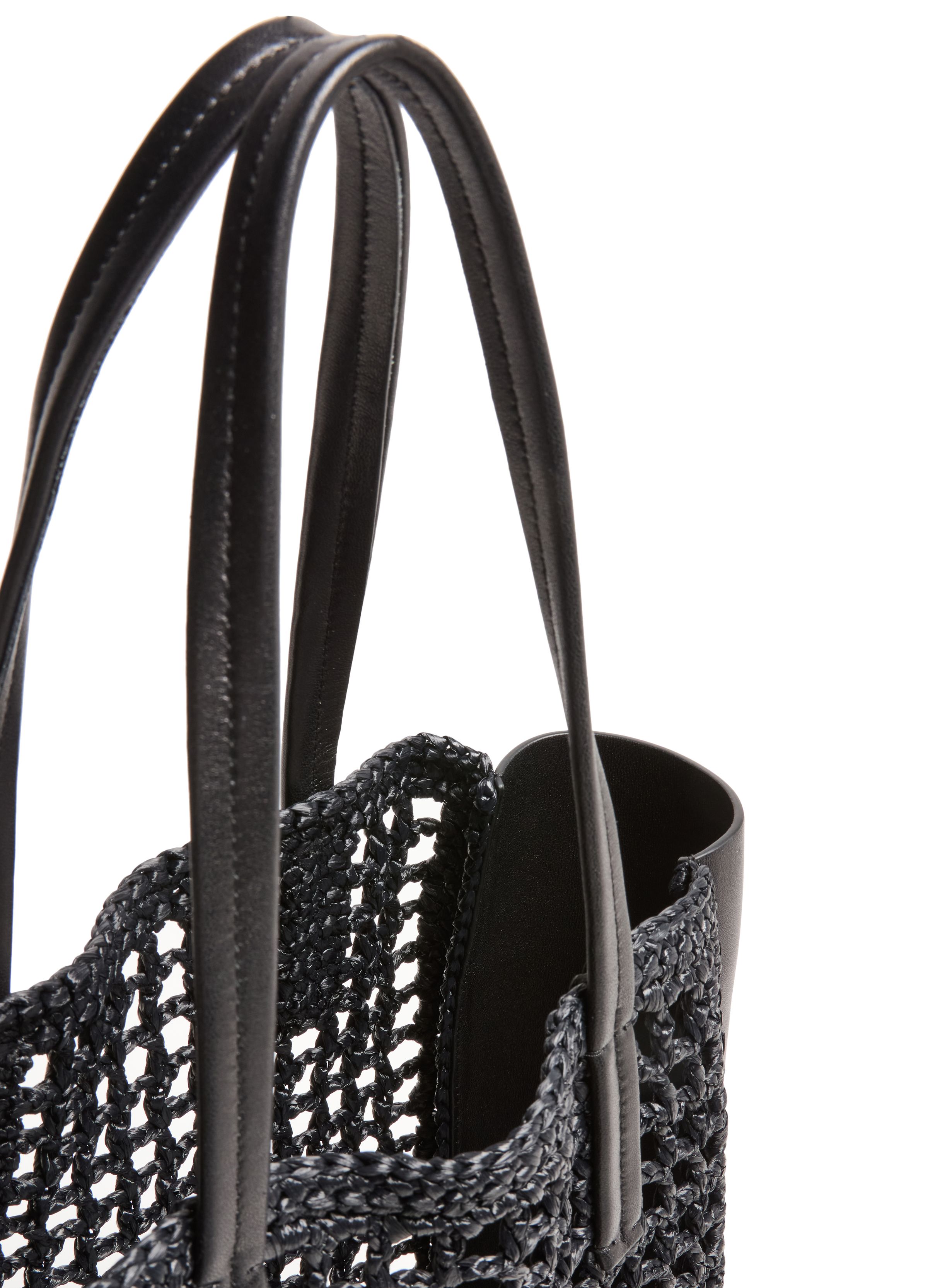 Zoe small leather raffia tote bag - Black