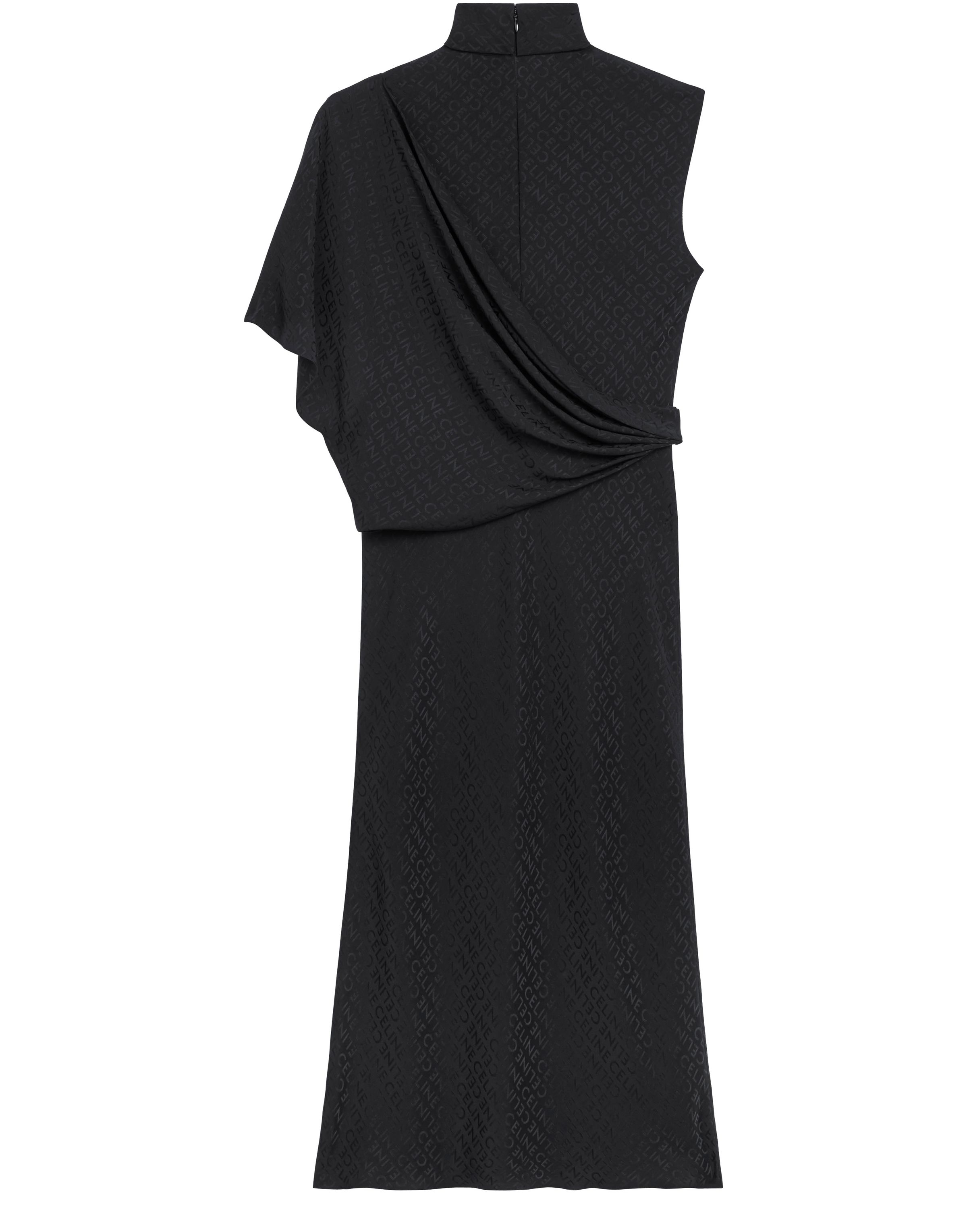 Matte and Glossy Silk Loose Draped Dress - Black