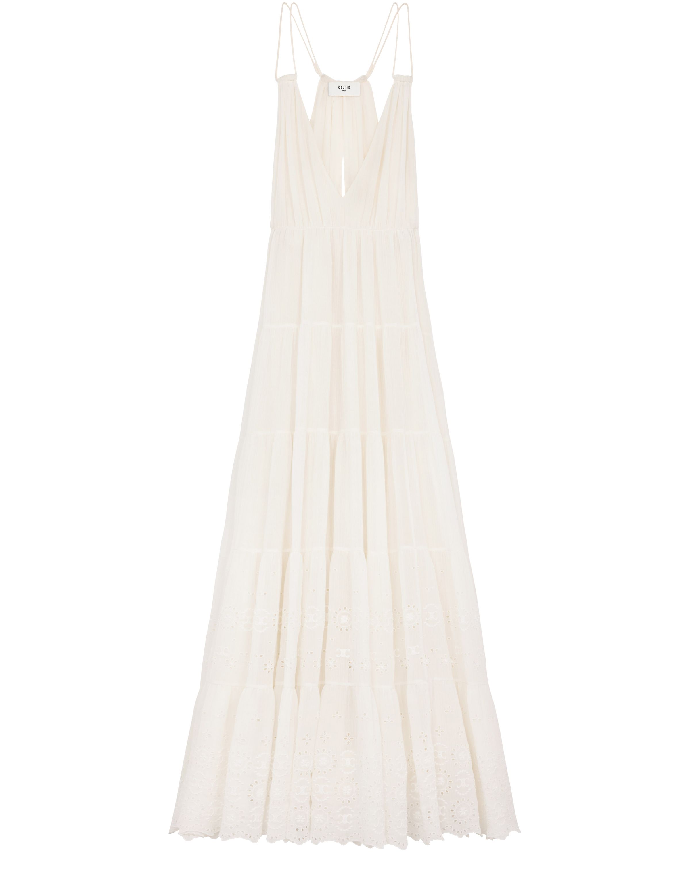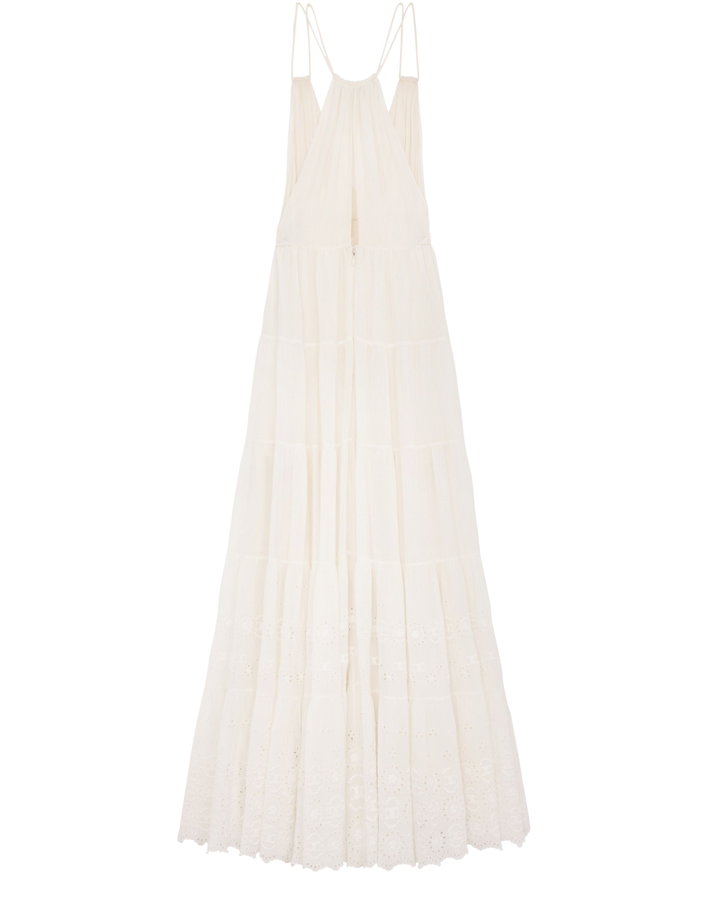 Embroidered long dress in cotton silk crepon