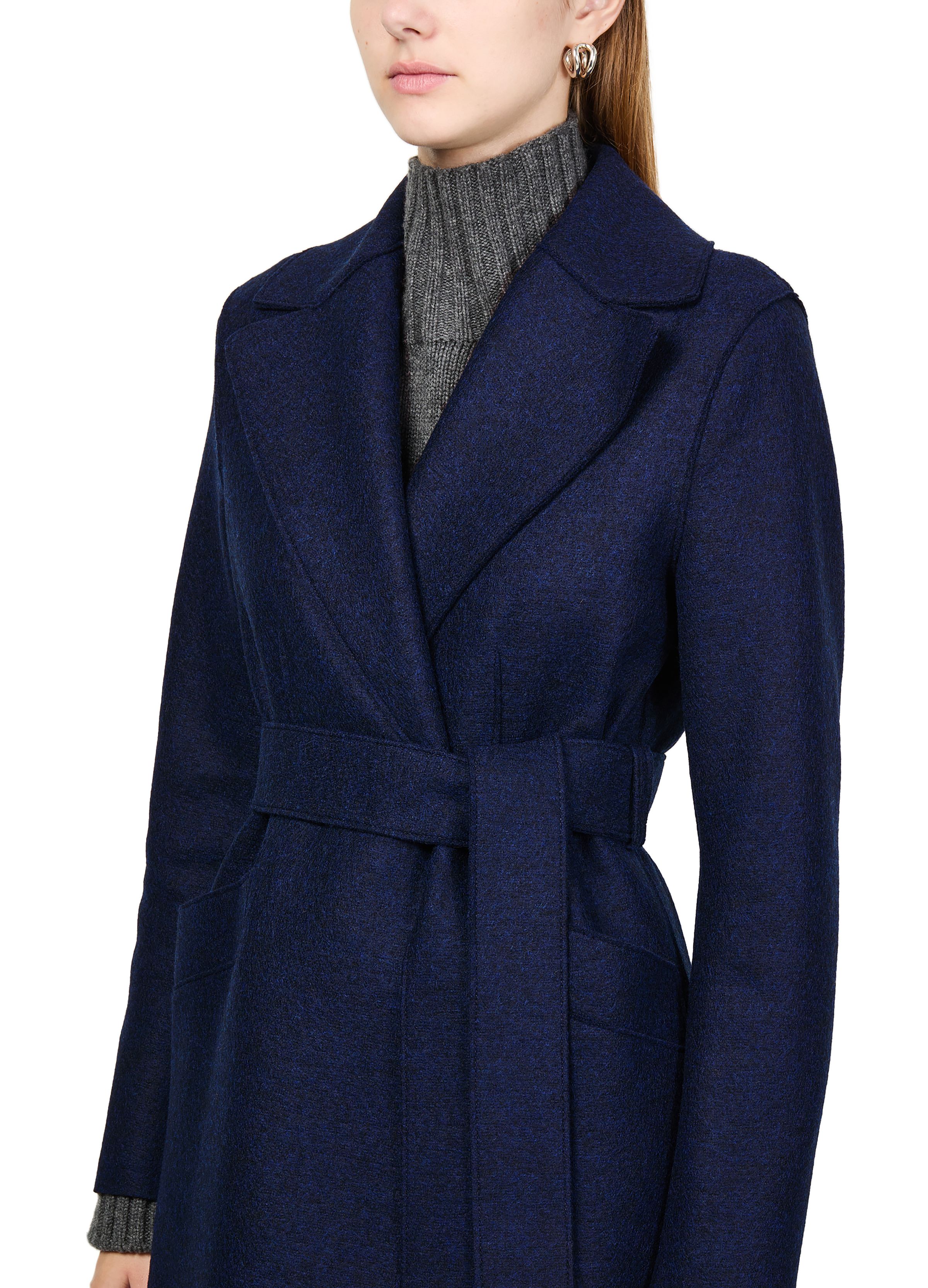 Maxi coat in pressed wool - Blue