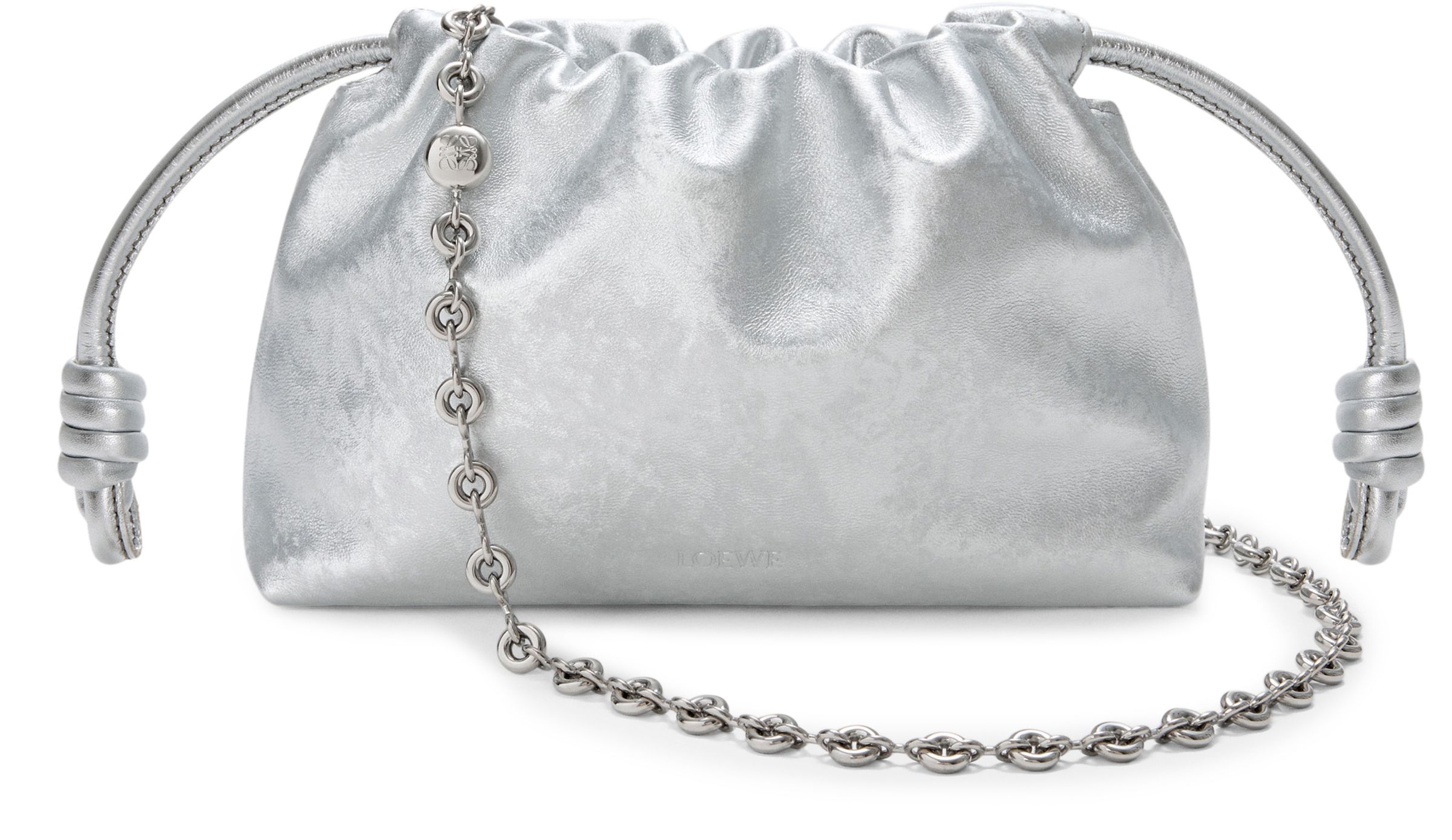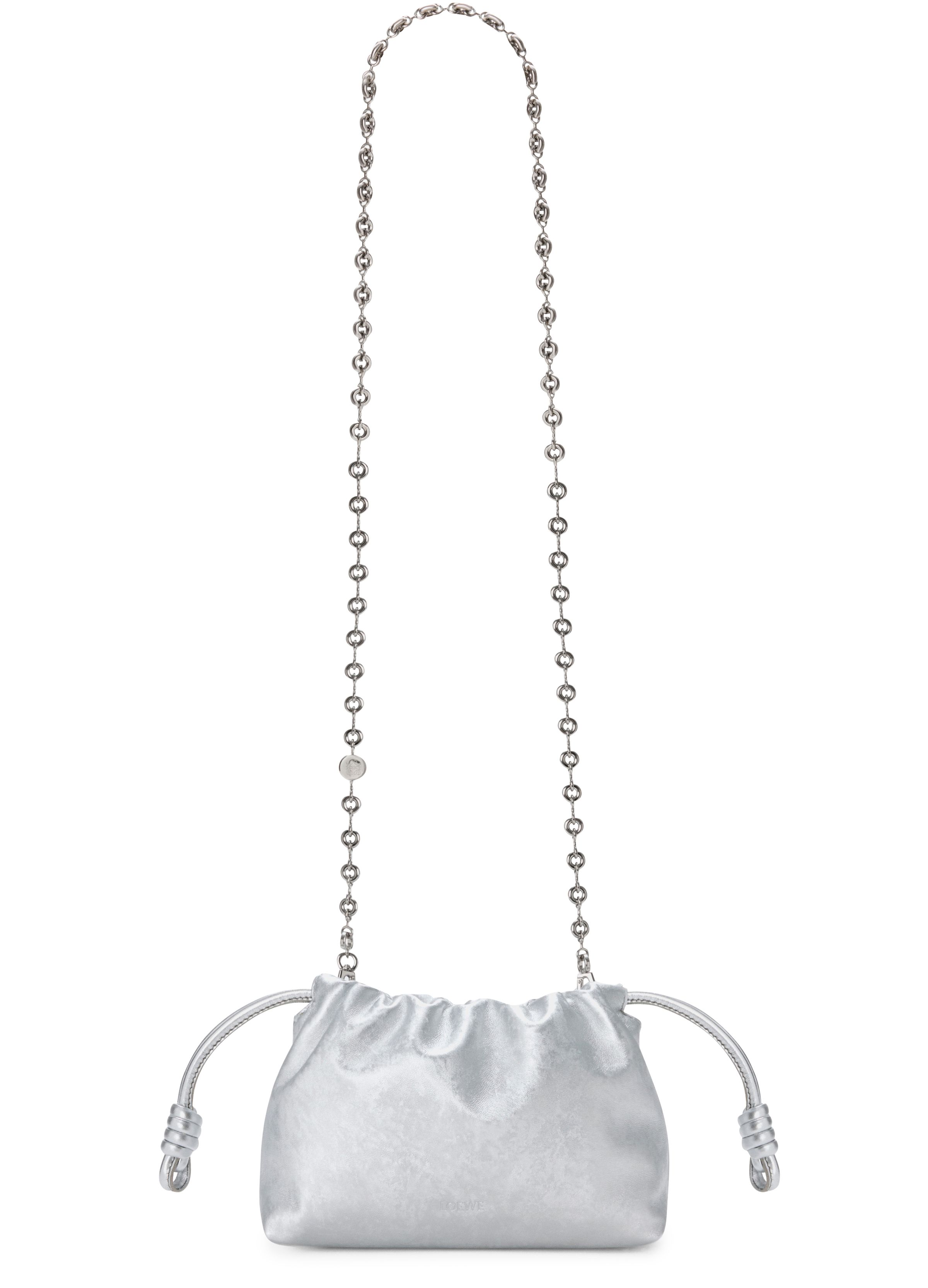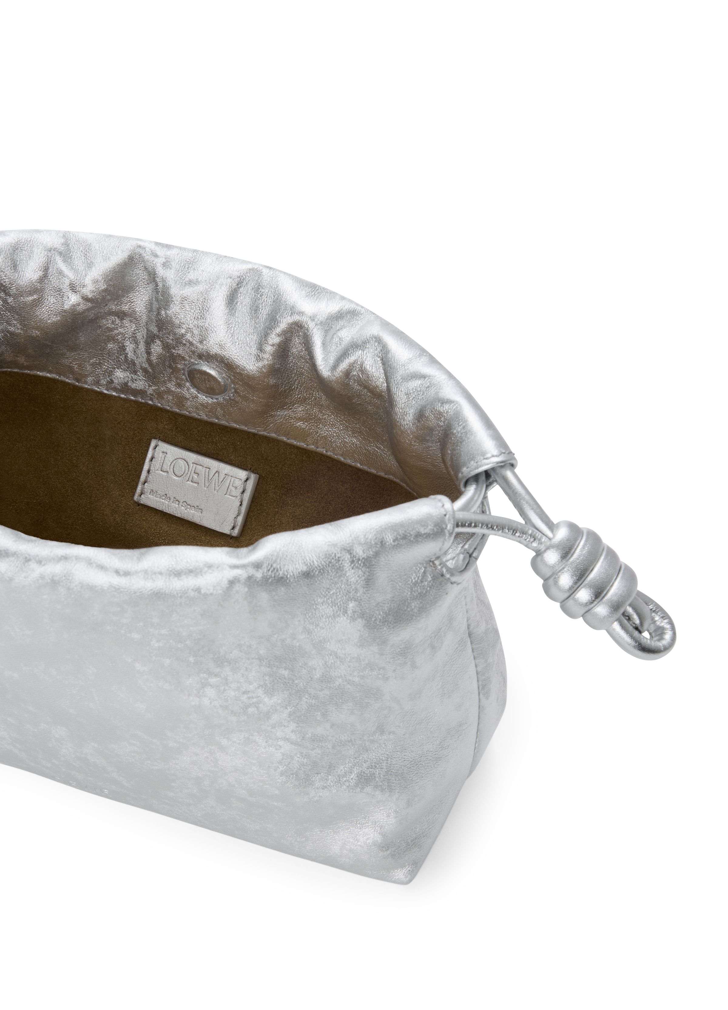 Mini Flamenco Purse in moiré print calfskin - Silver