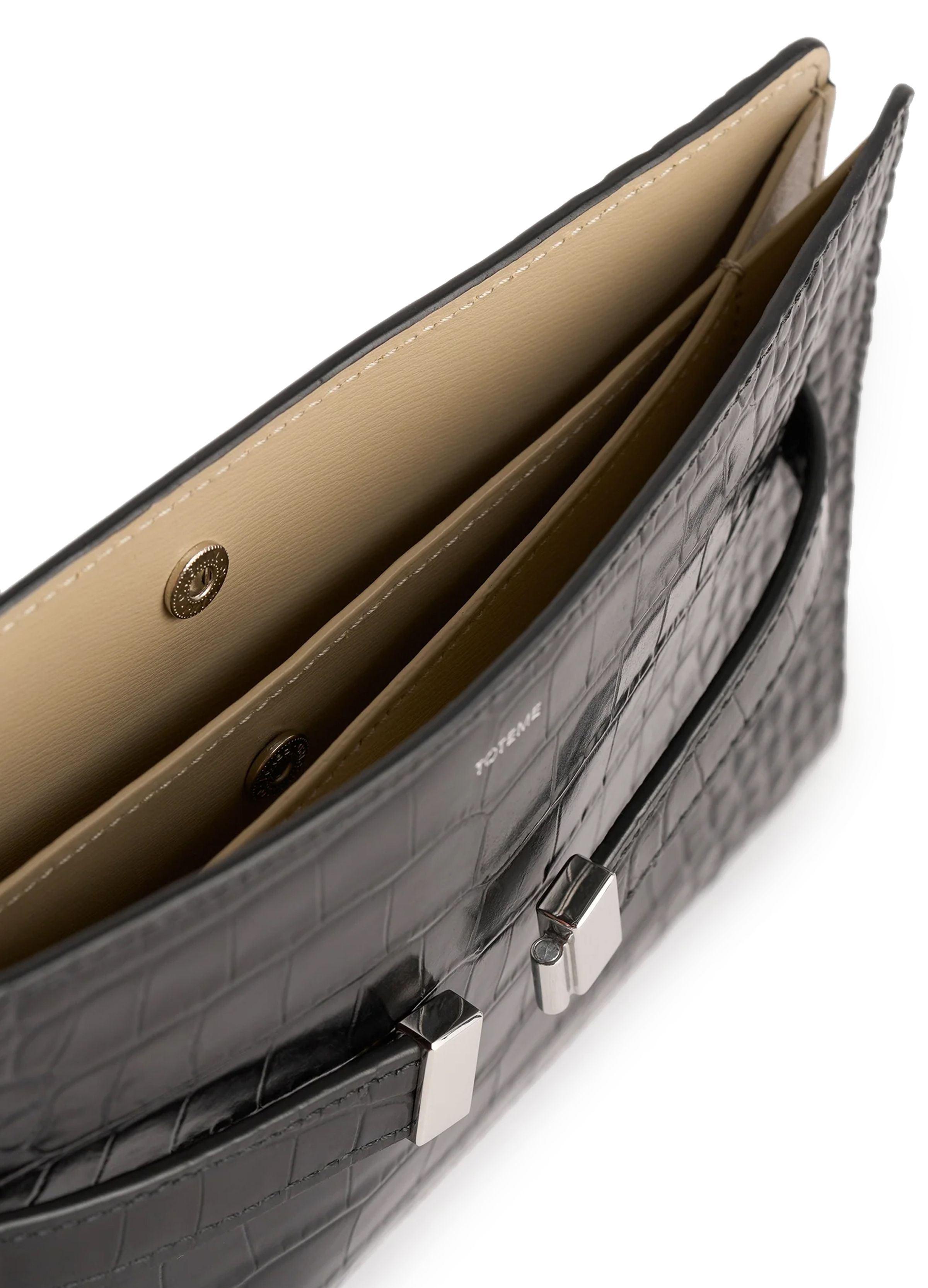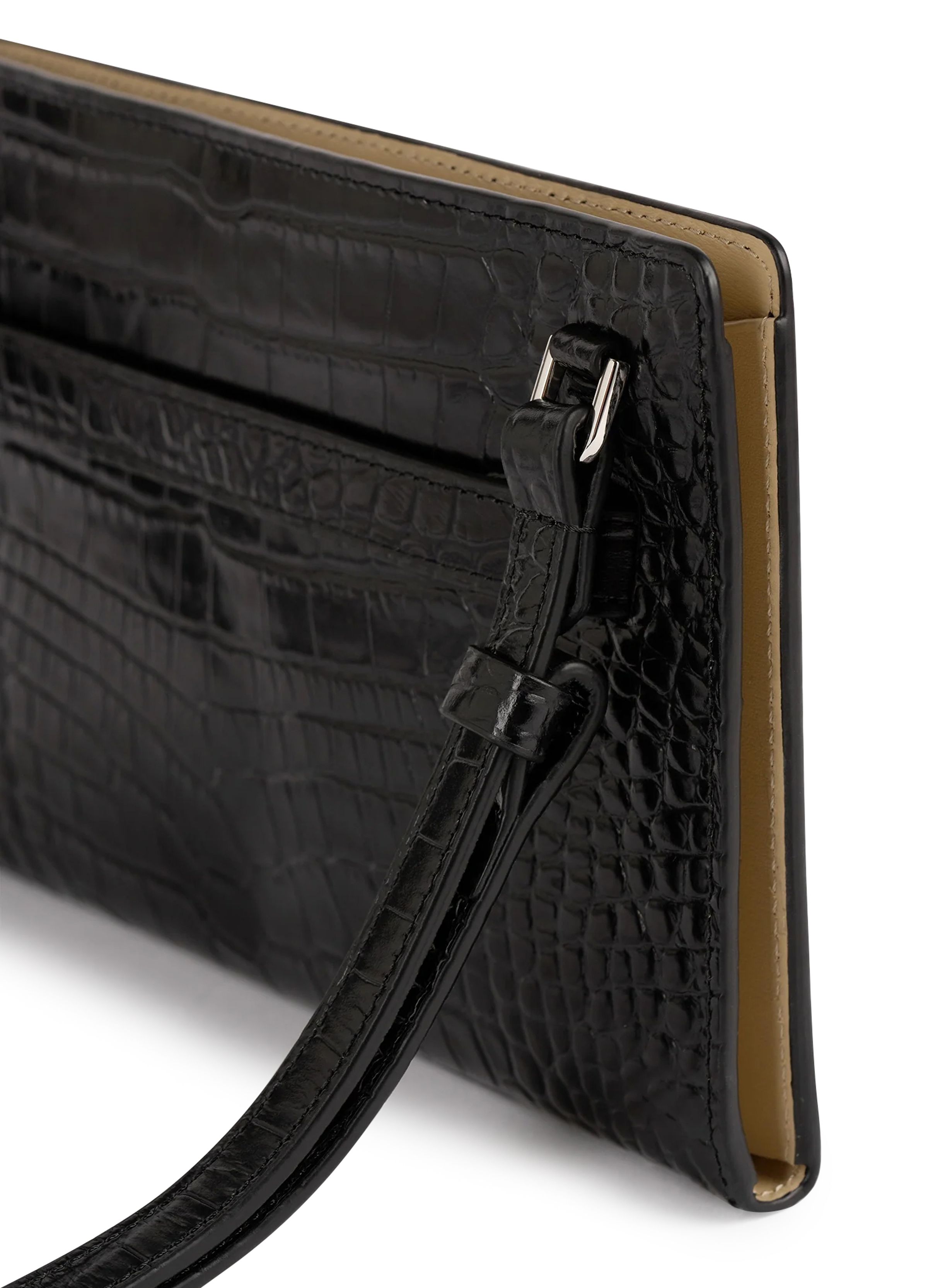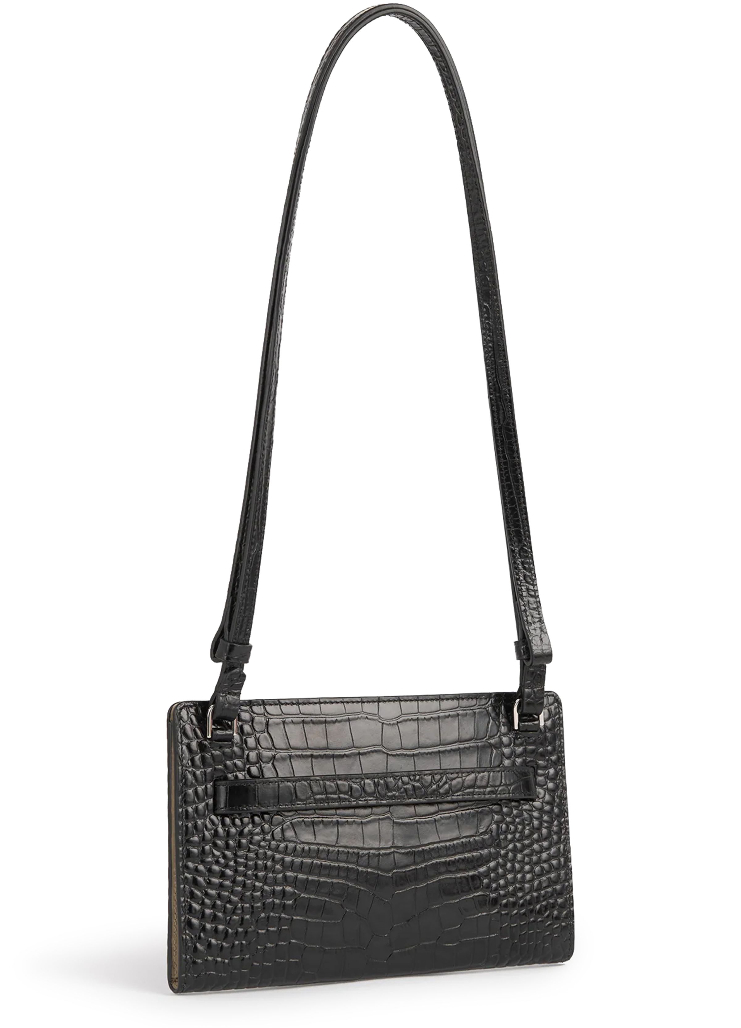 Croco print leather crossbody bag - Black