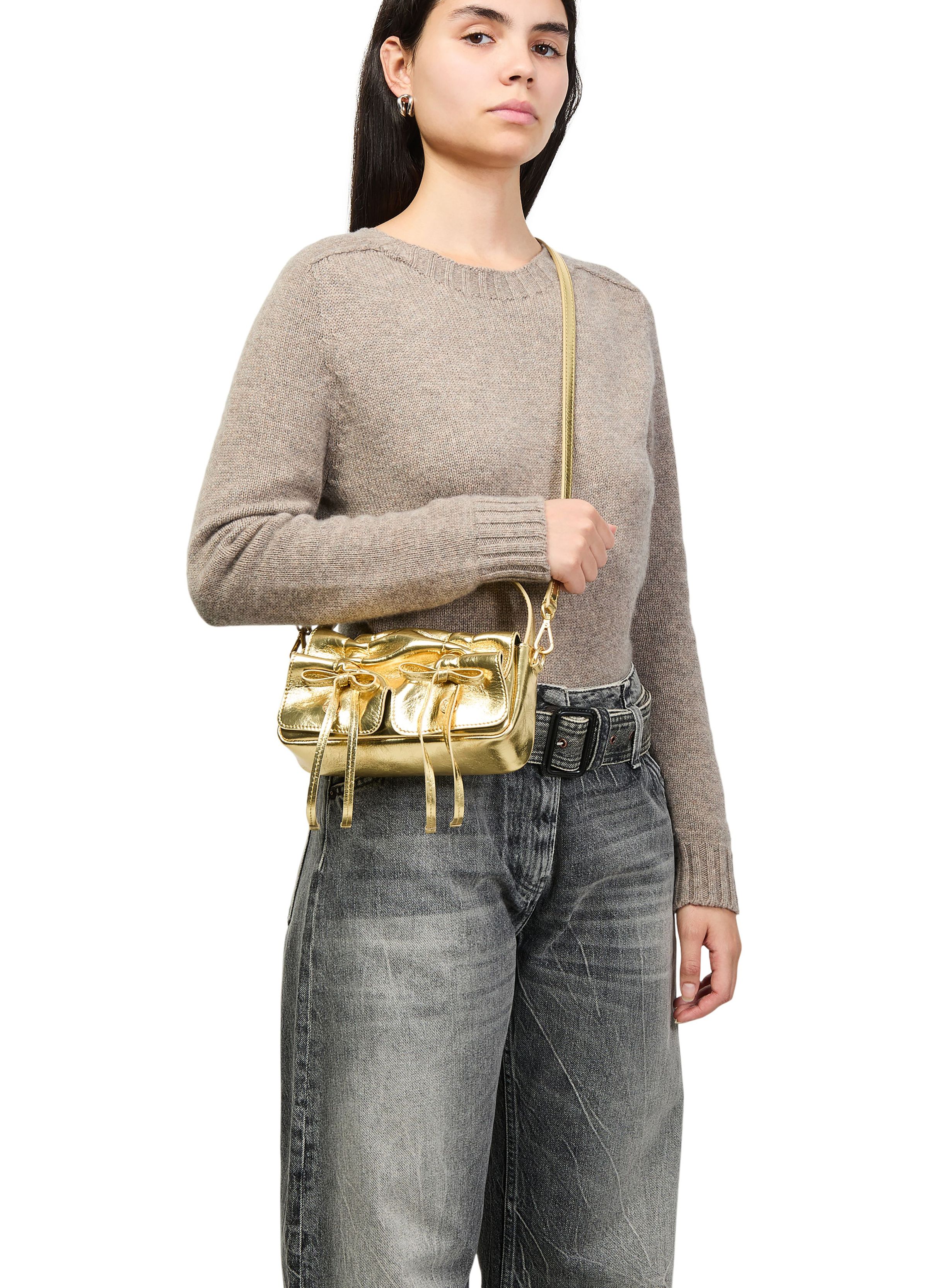 Micro metallic multi-pocketed bag - Gold