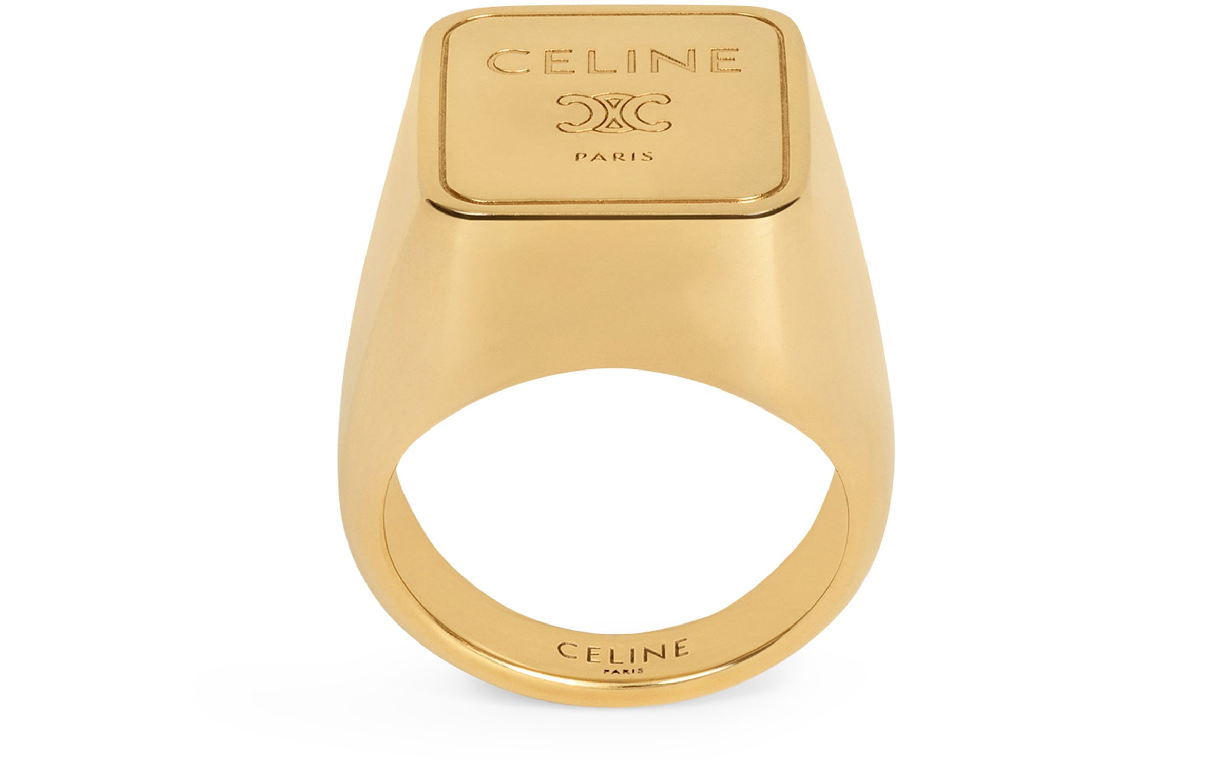 Triomphe square signet ring in brass with gold finish