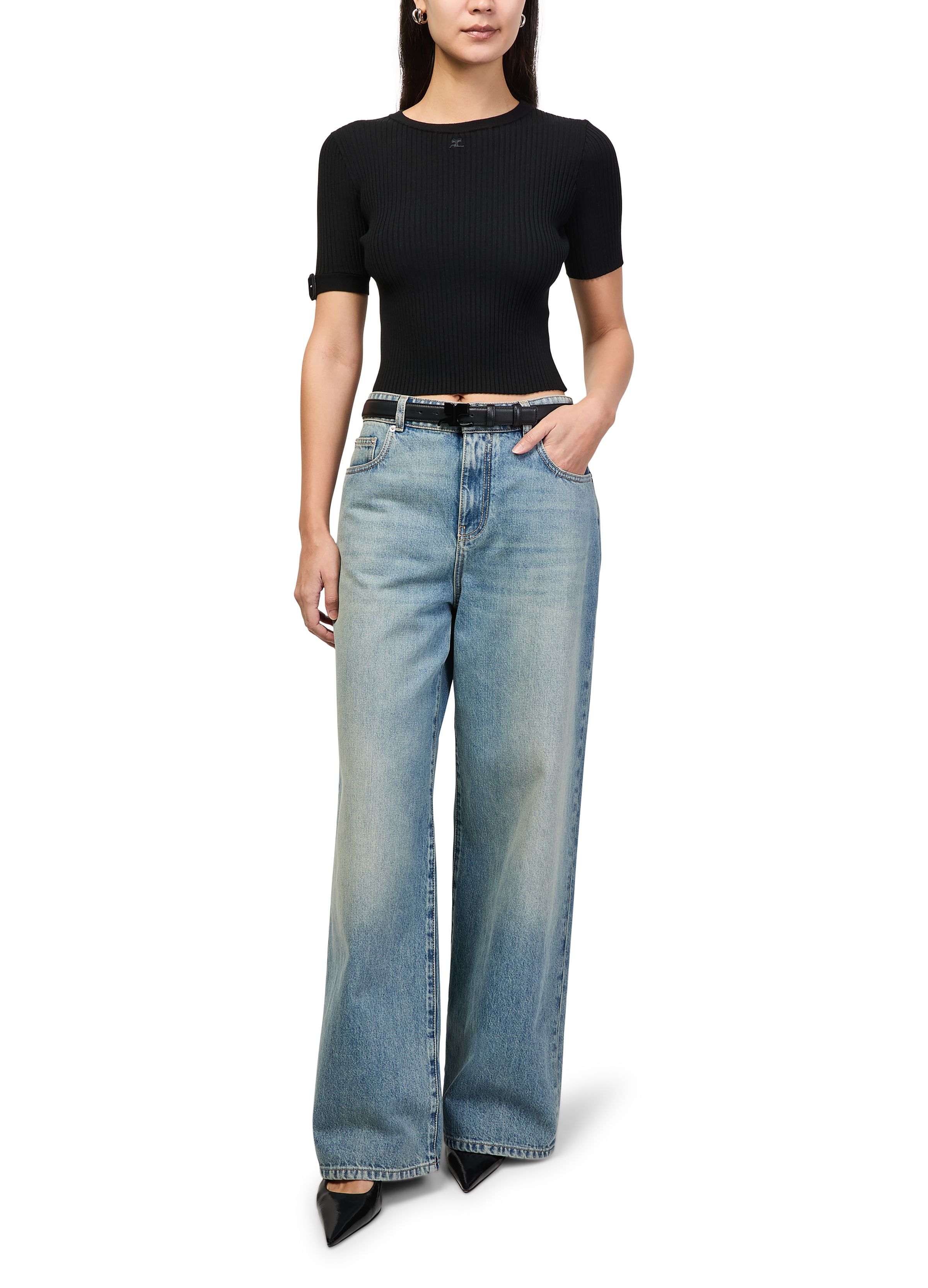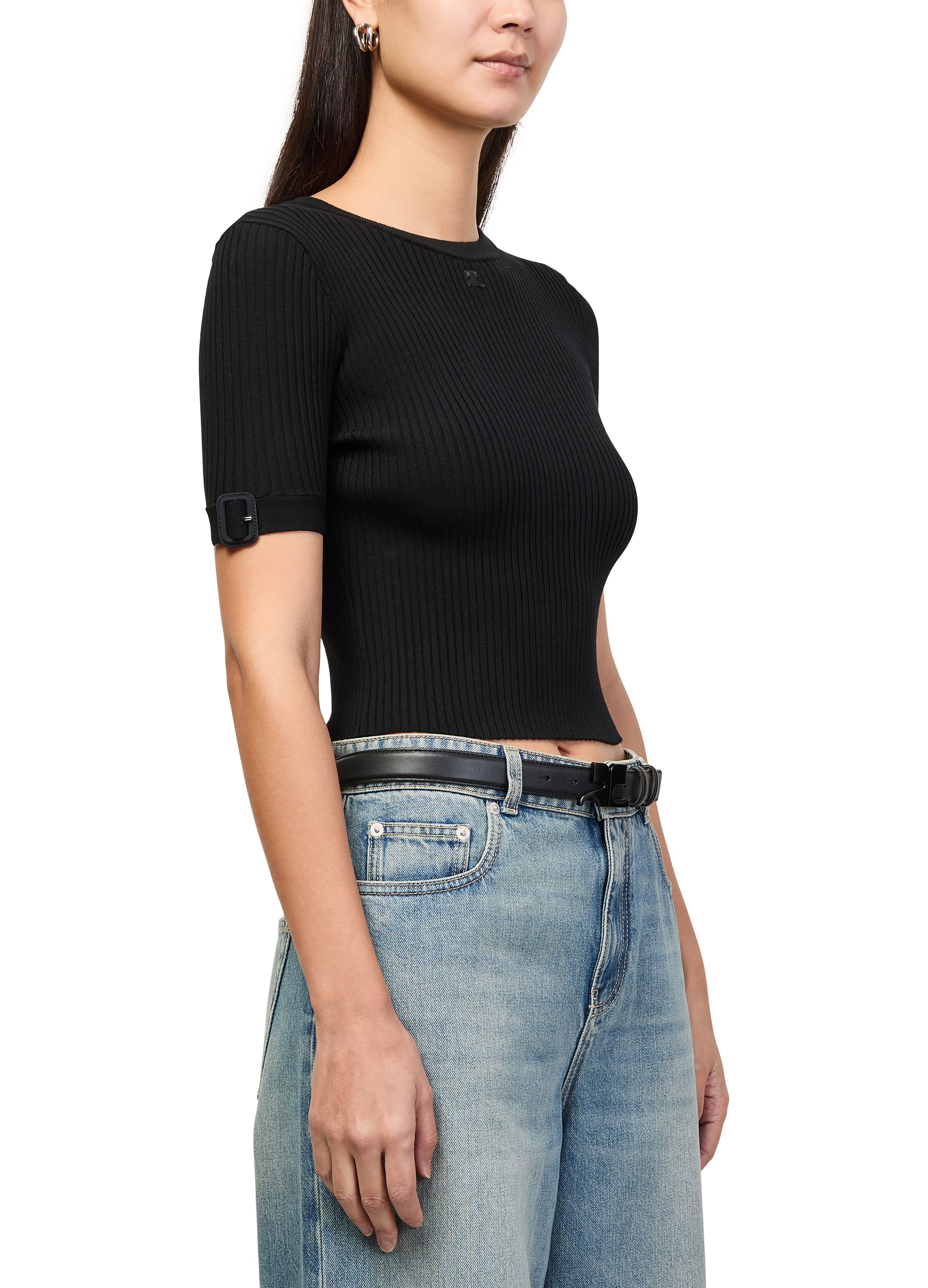 Buckle rib knit top - Black