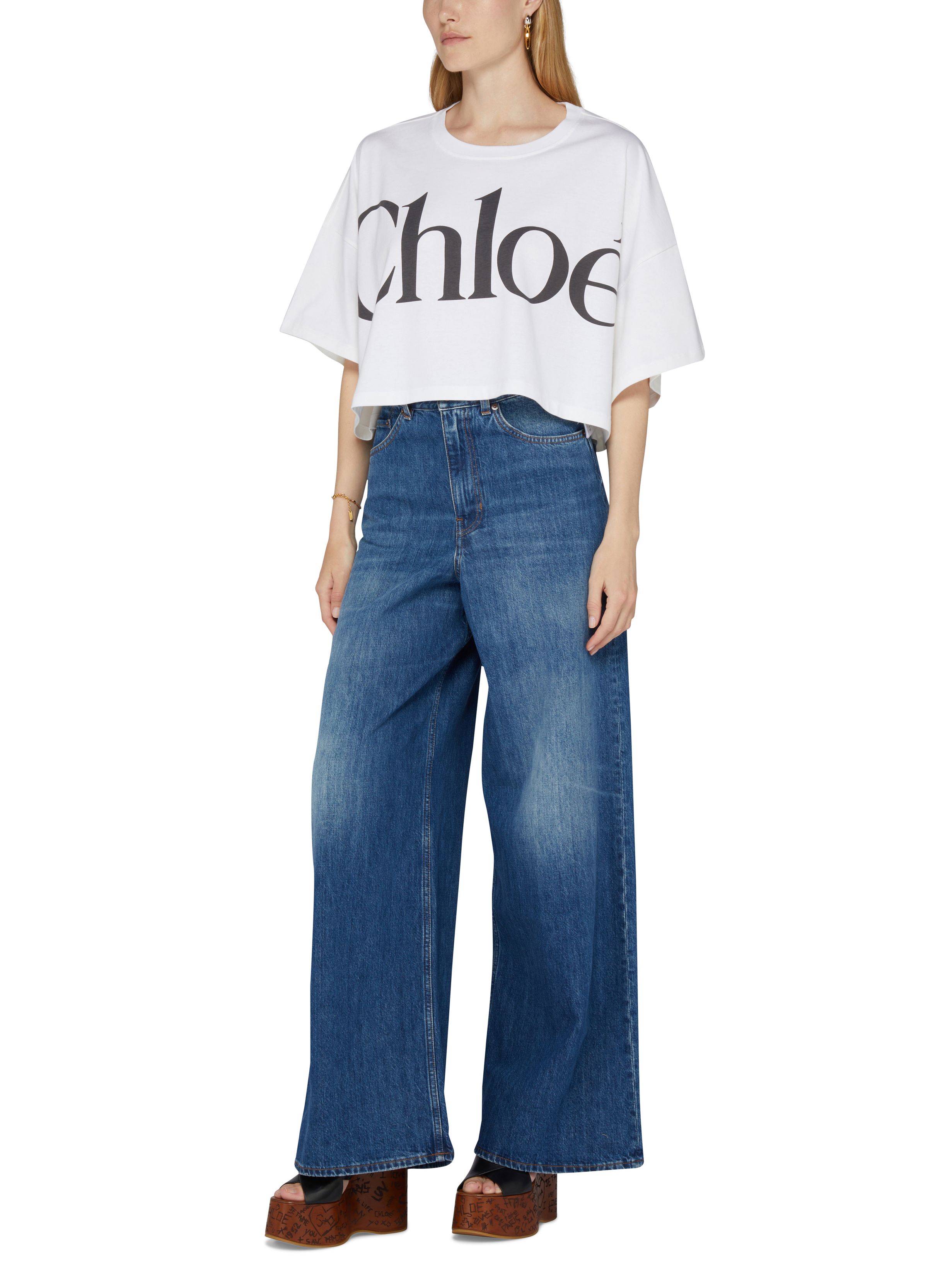 Short logo cotton straight-cut T-shirt