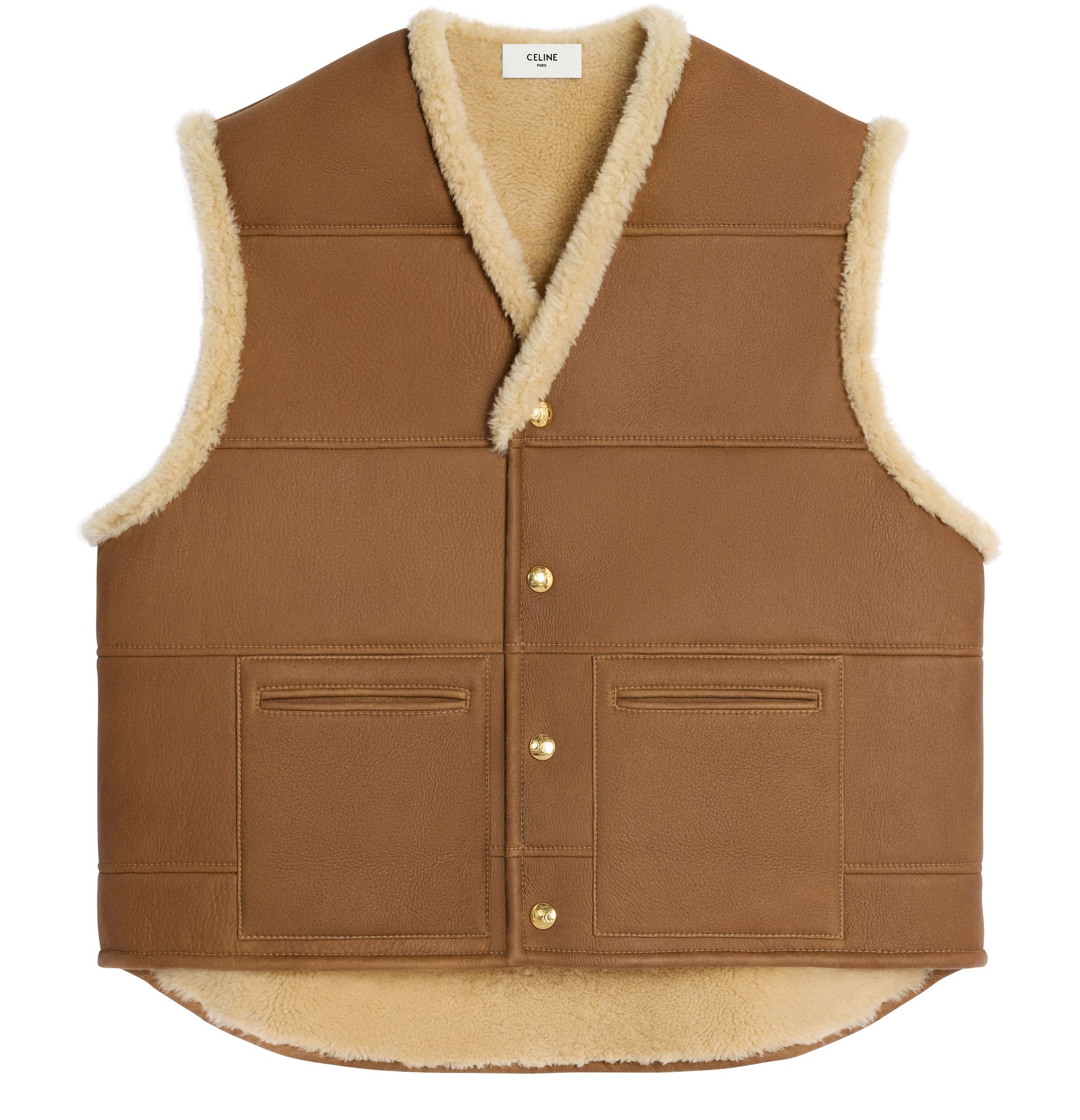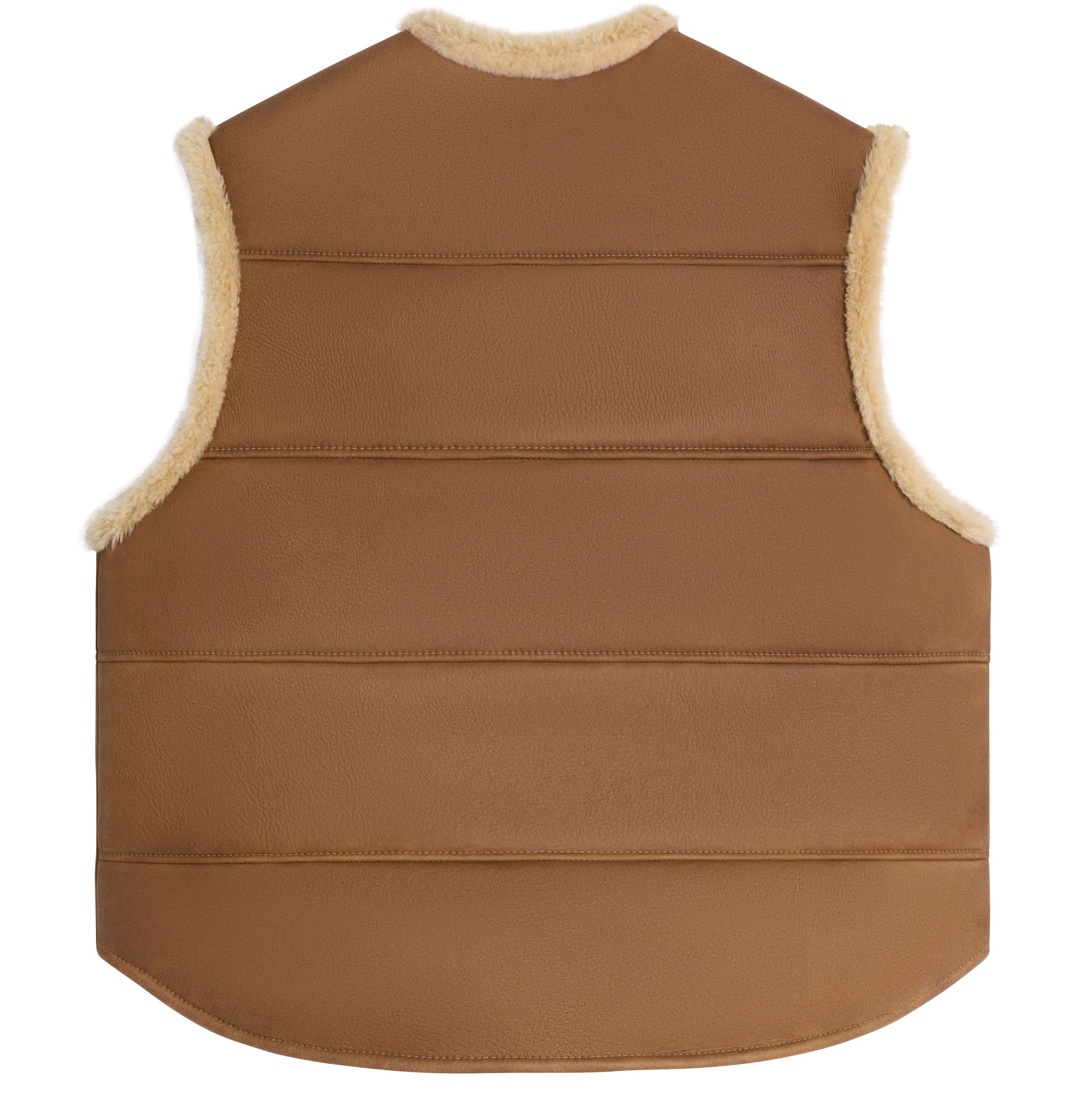 Curly Lamb Leather Oversized Sleeveless Jacket - Beige