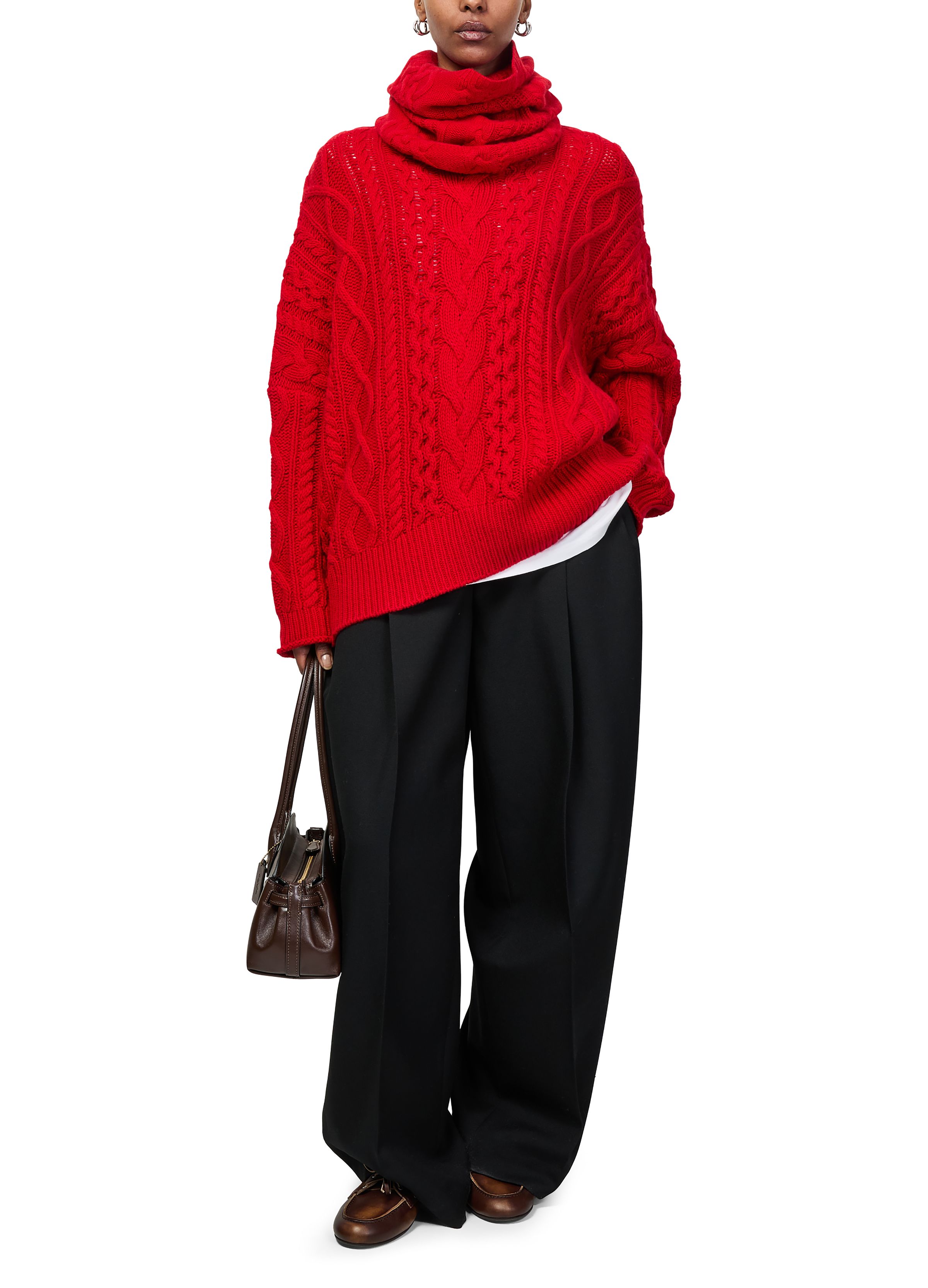 Cable knit mockneck sweater - Red