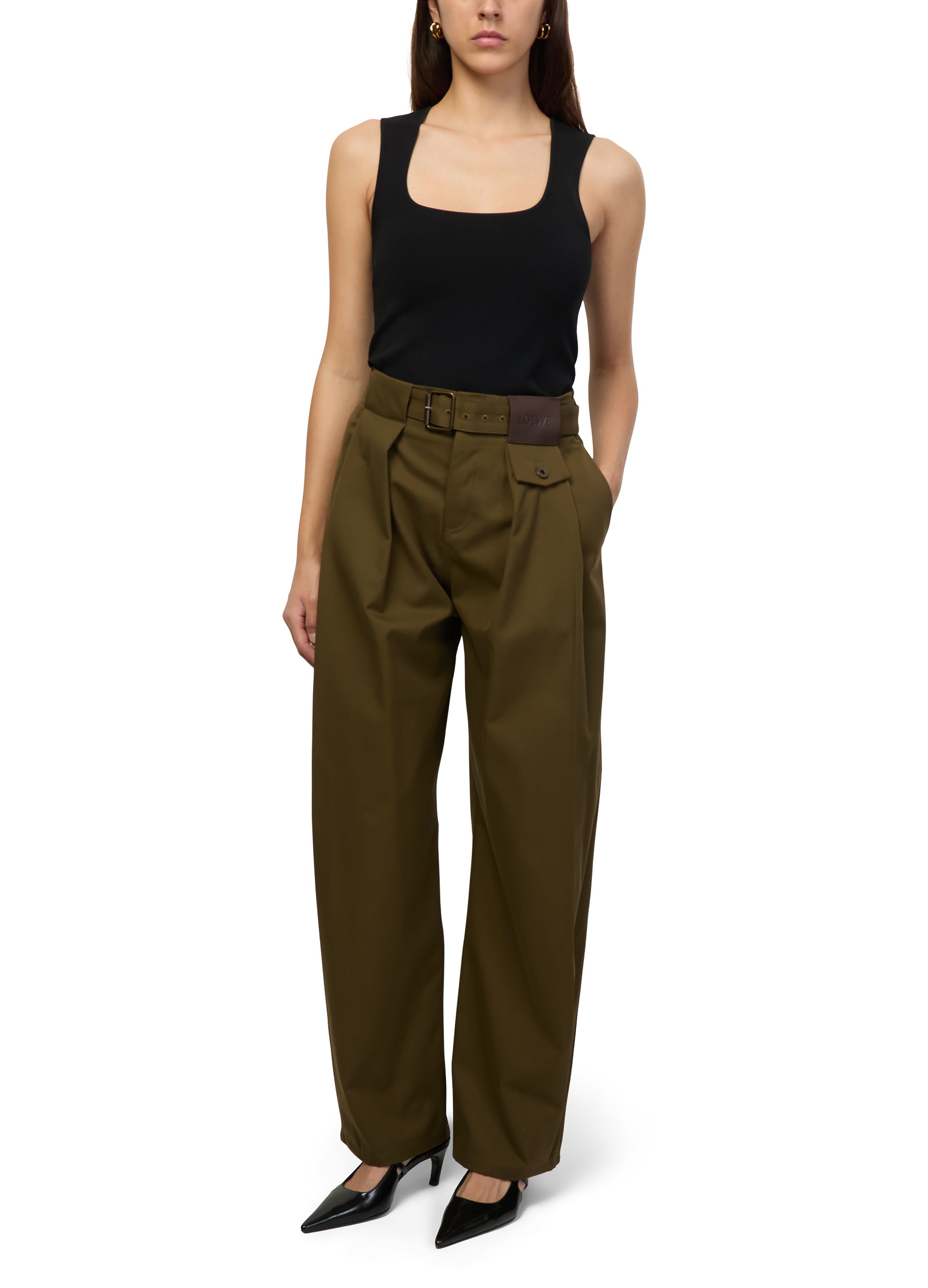 Cotton and silk straight-leg trousers - Green