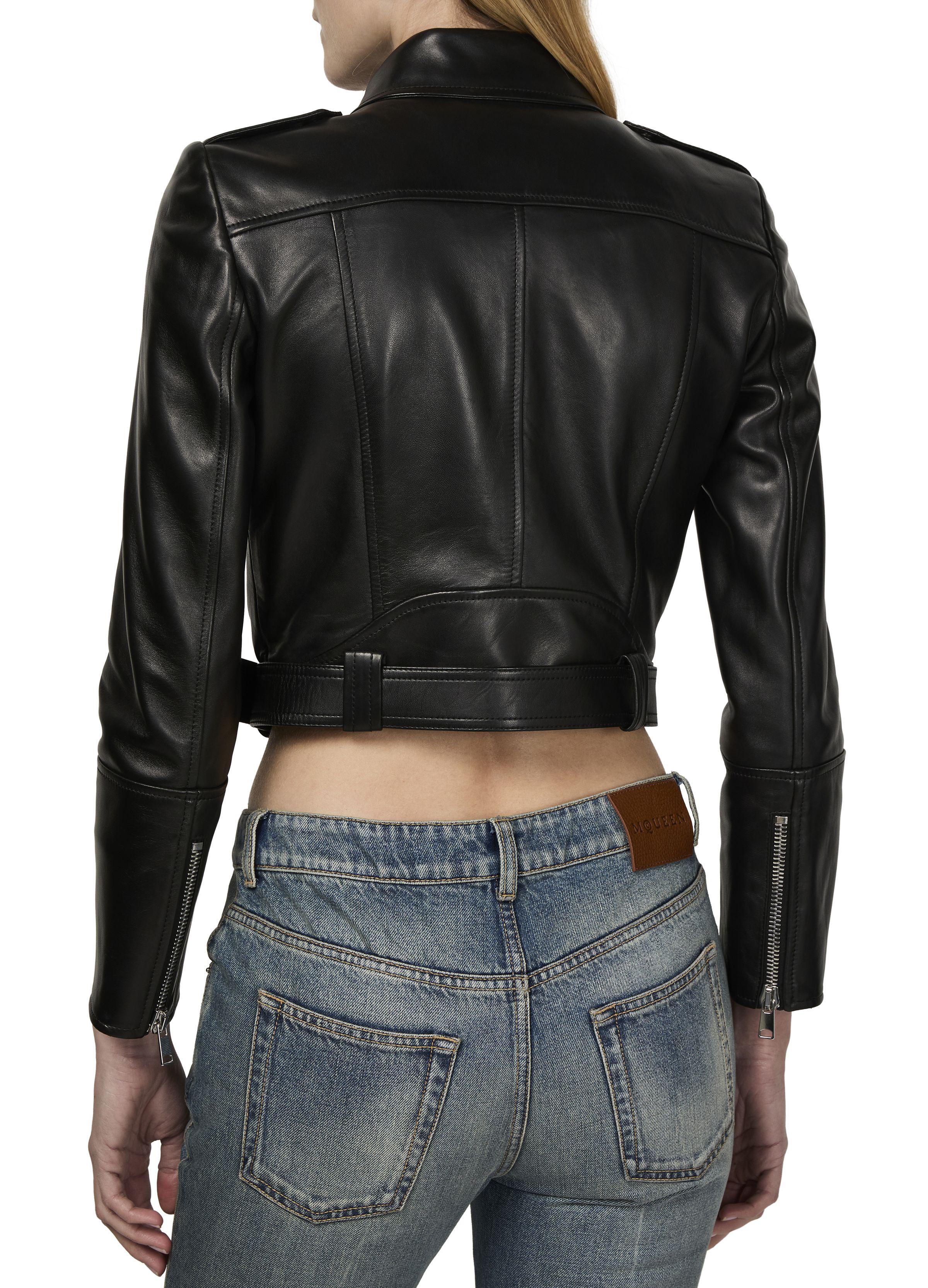 Short biker leather jacket