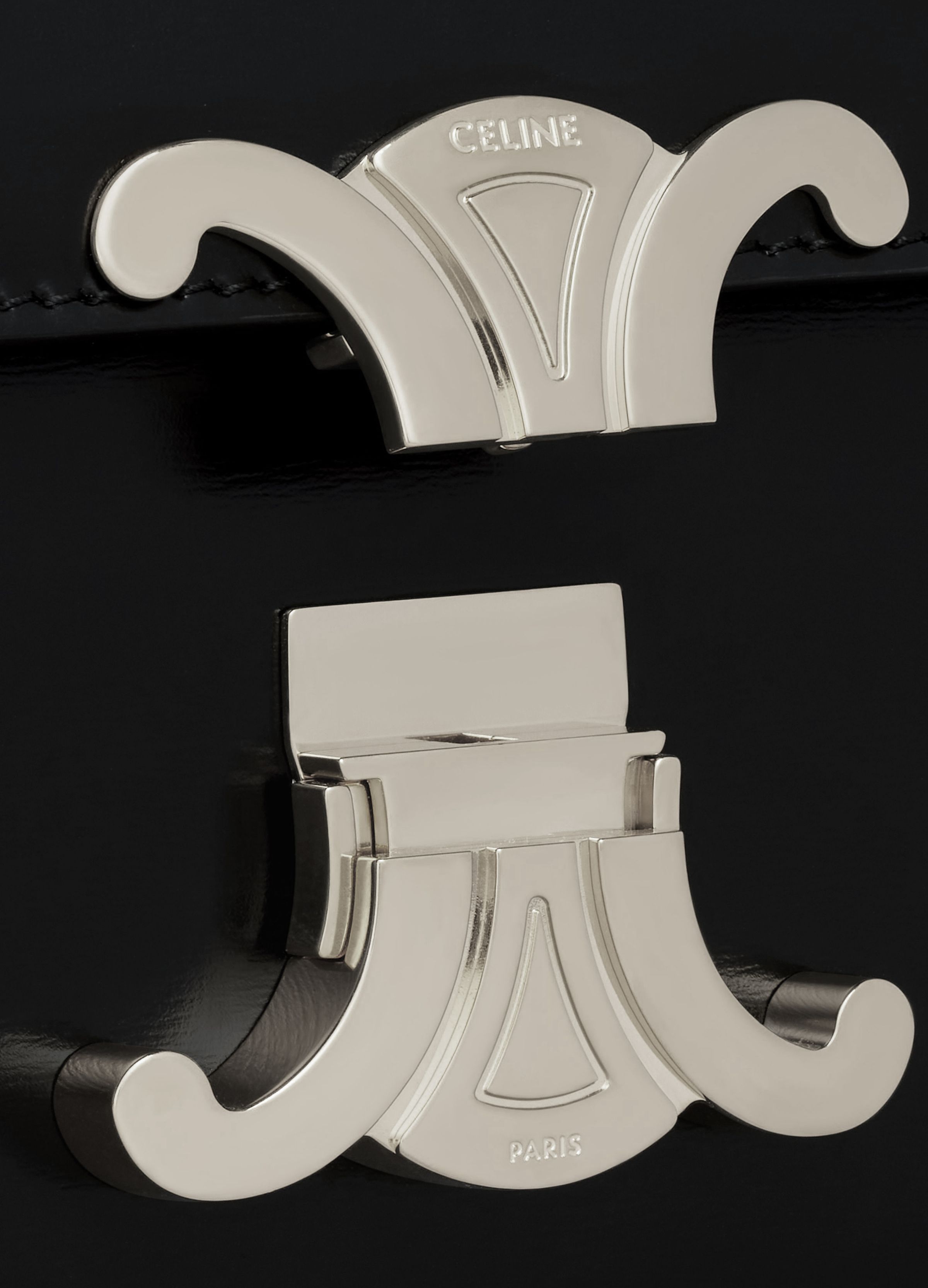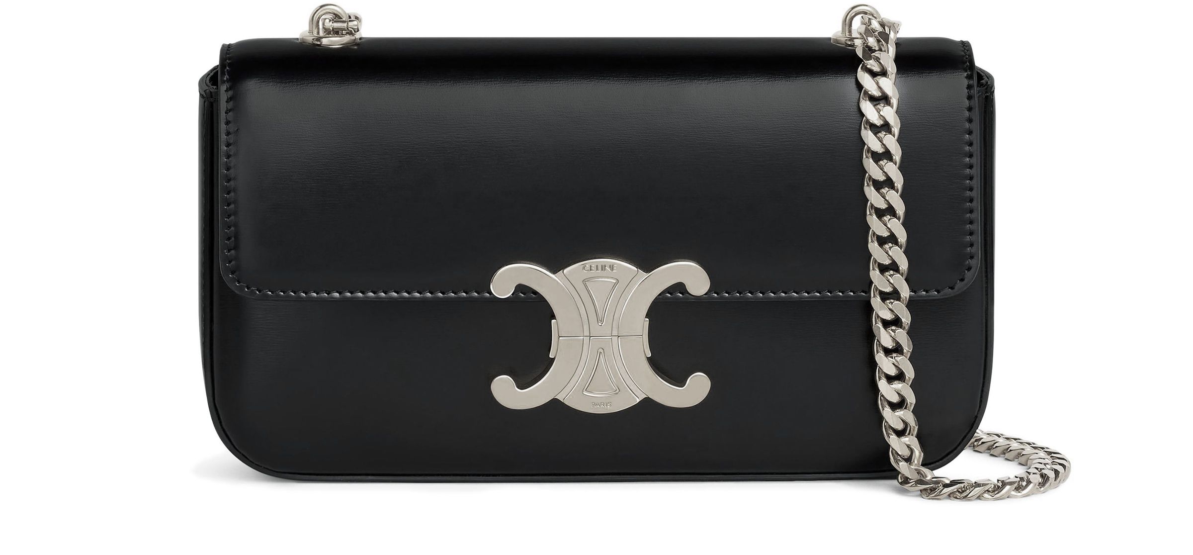 Triomphe Satin Calfskin Chain Shoulder Bag - Silver