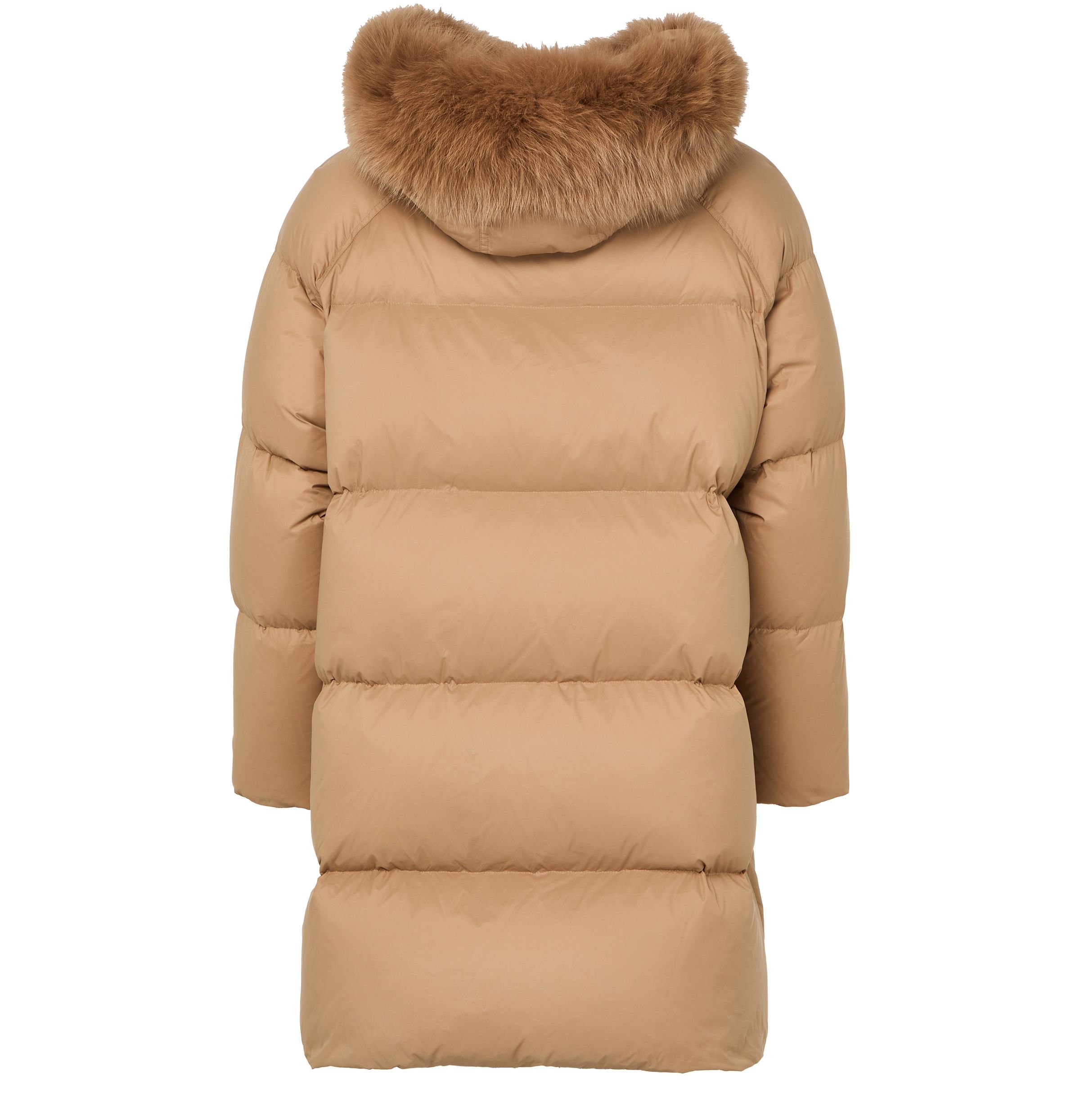 Puffer jacket with a fox fur hood - brown