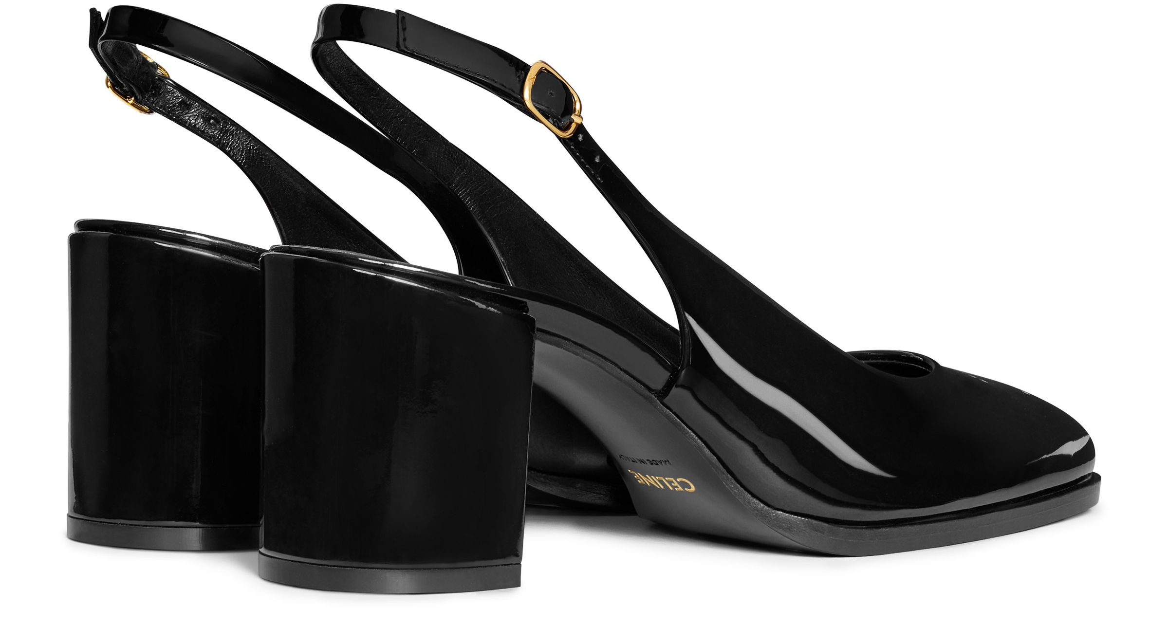Celine Lily perforated Triomphe slingbacks in patent calfskin - Black