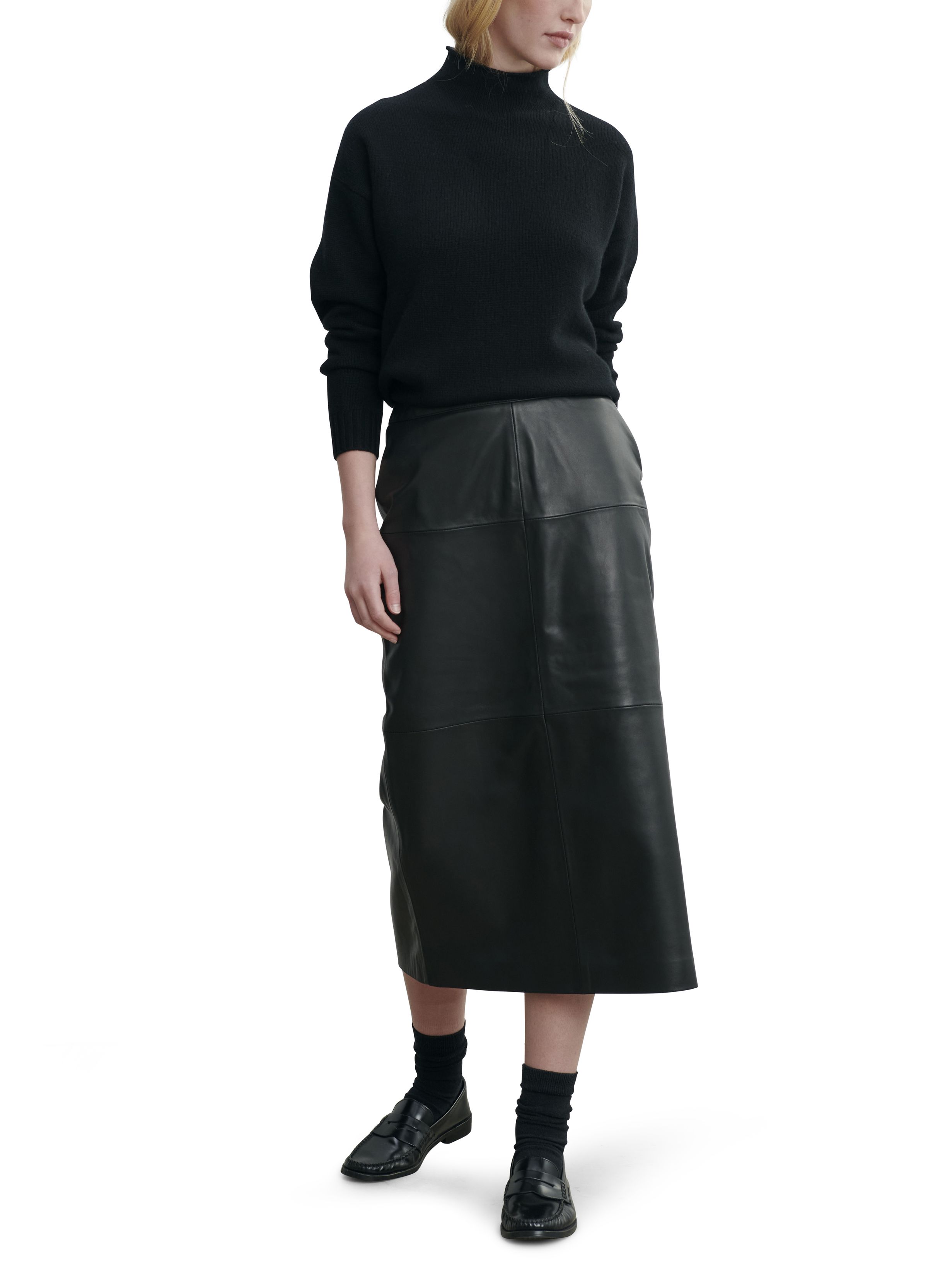 Lamb leather midi skirt - Black