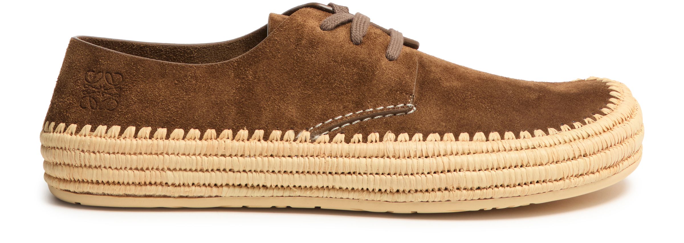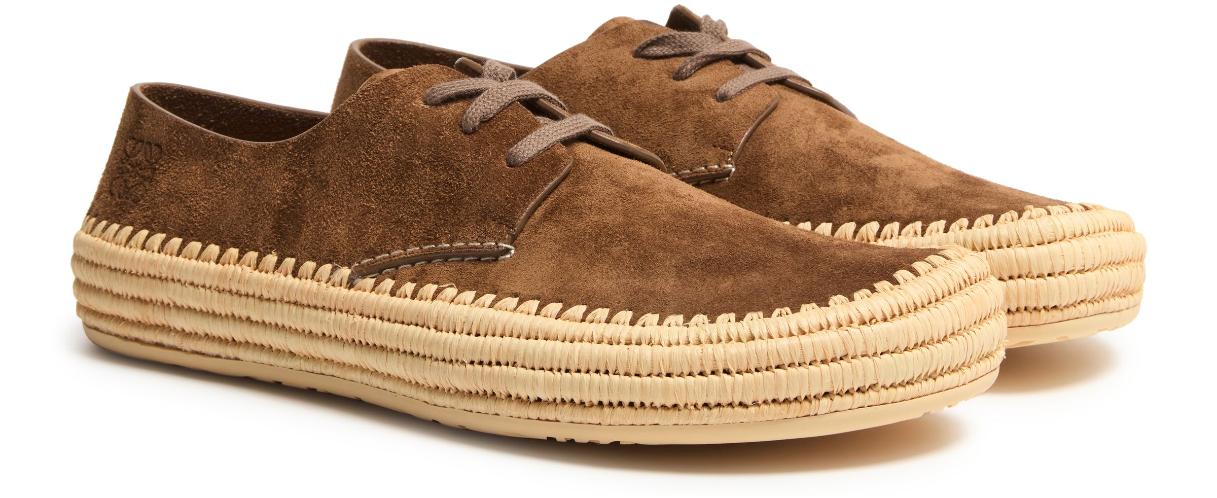 Rio lace-up espadrilles in suede and raffia - brown