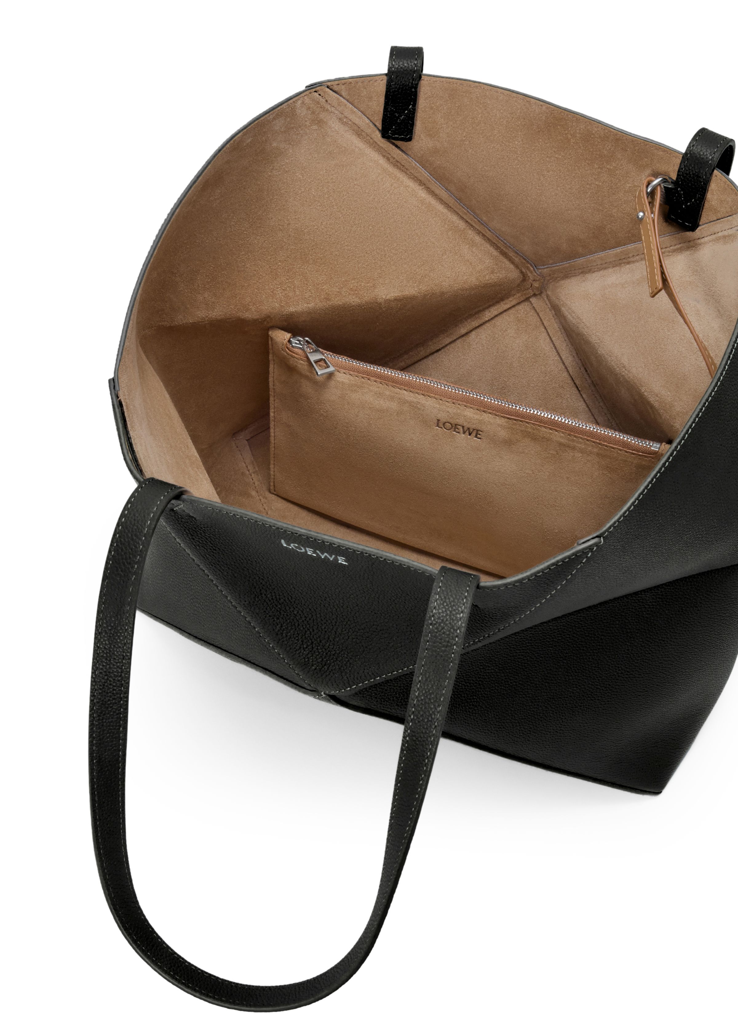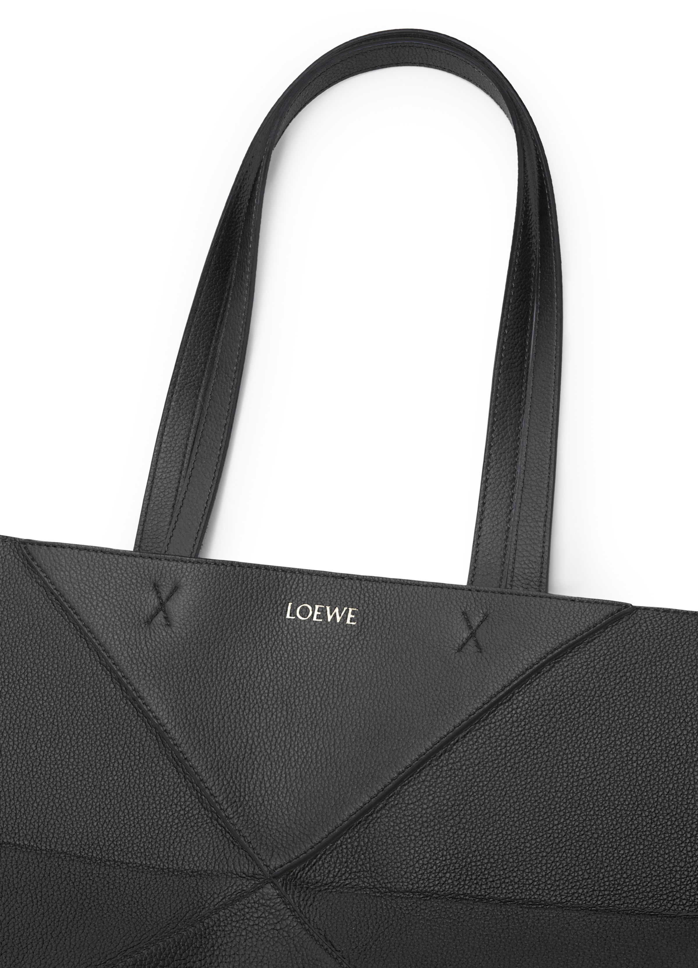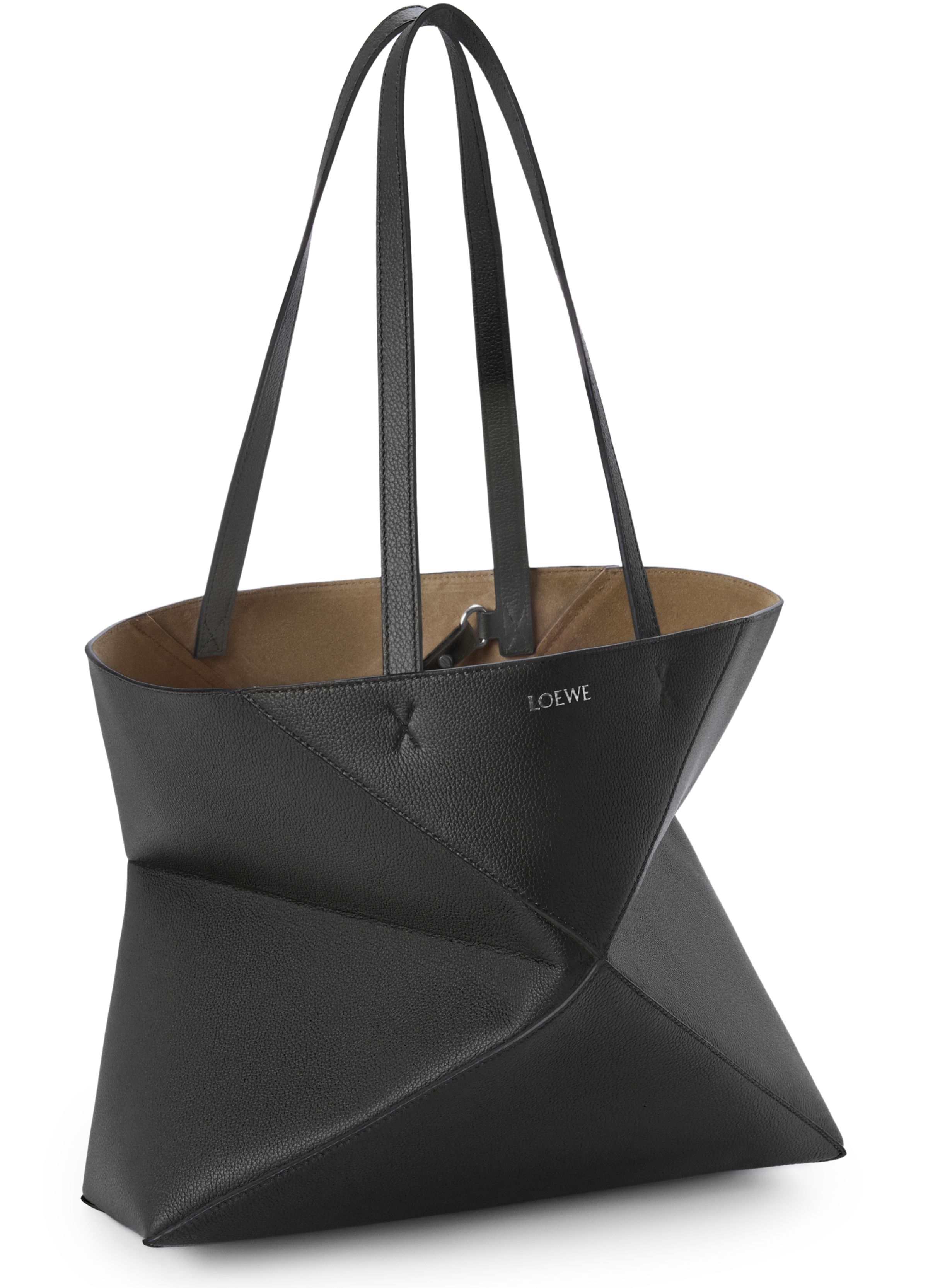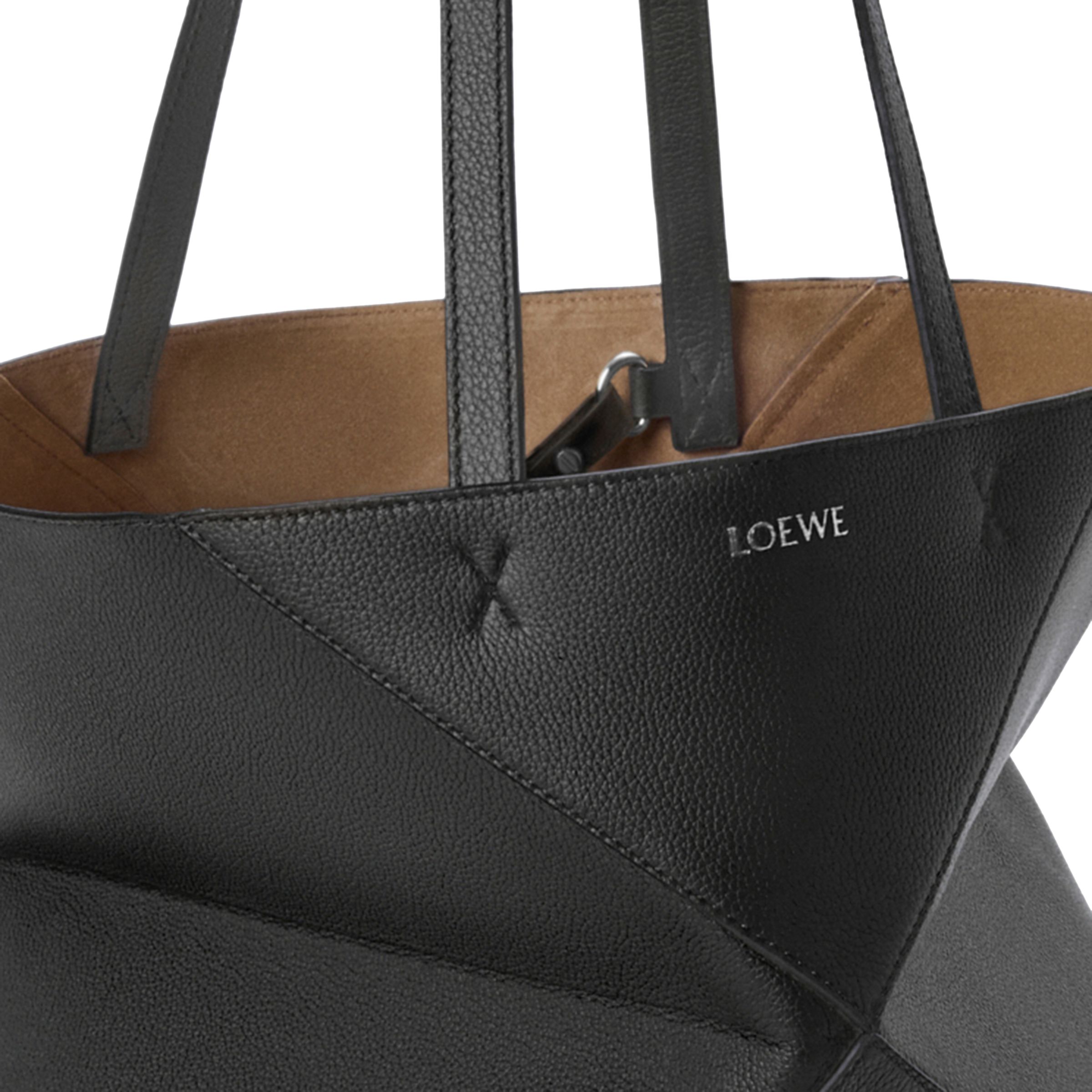 Medium horizontal Puzzle Fold tote in soft grained calfskin - Black
