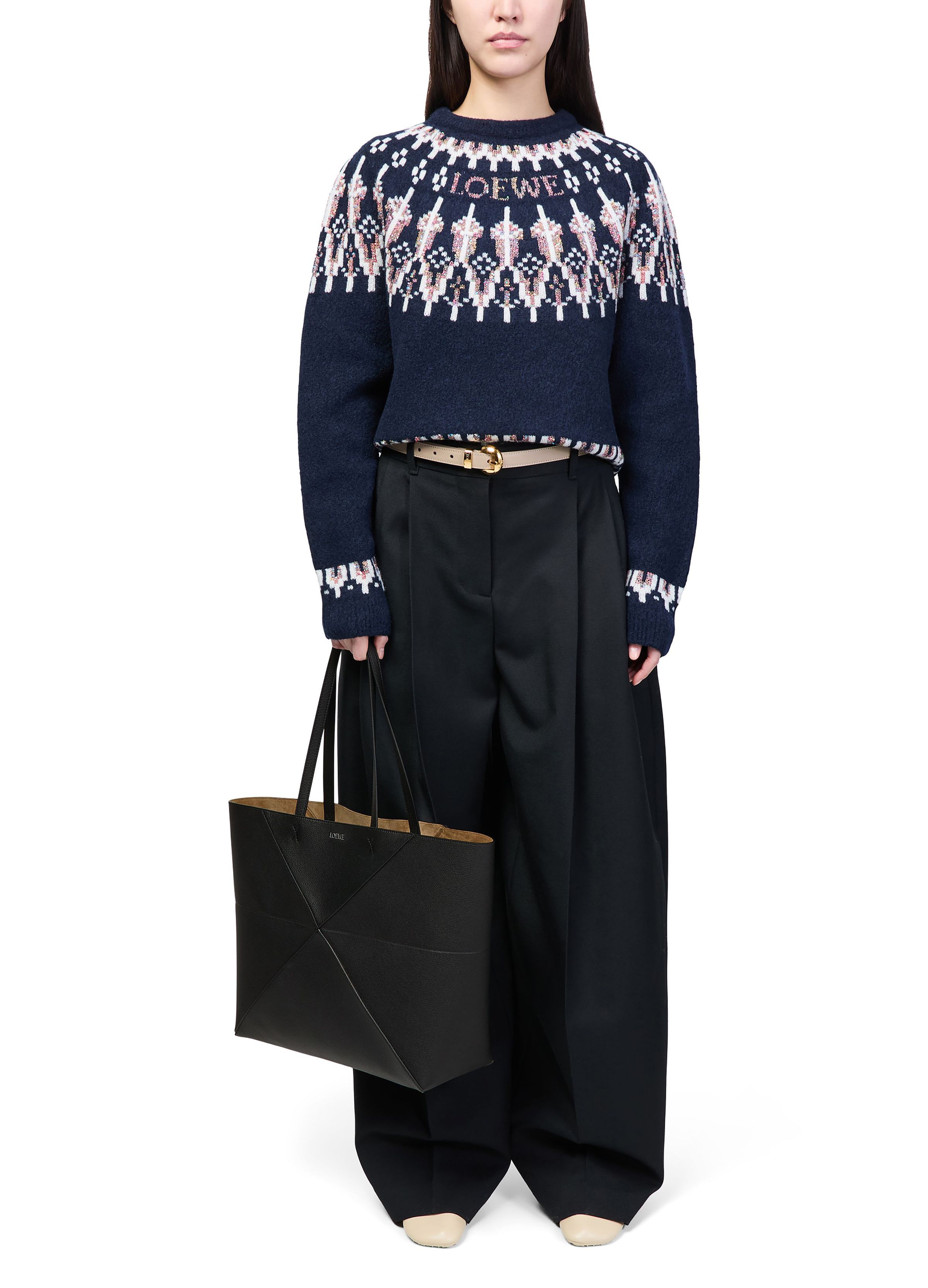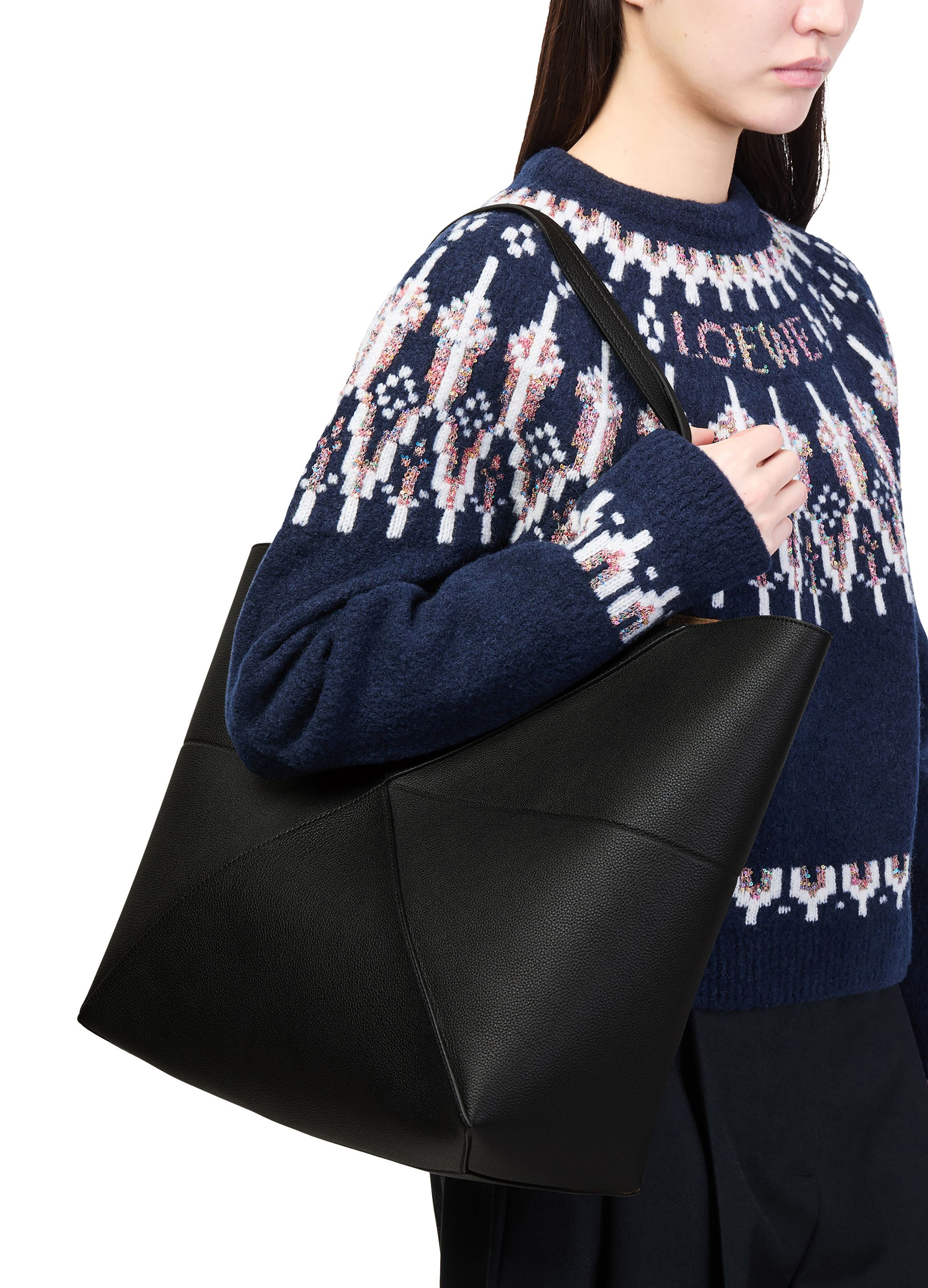 Large Puzzle Fold Tote Bag - Black