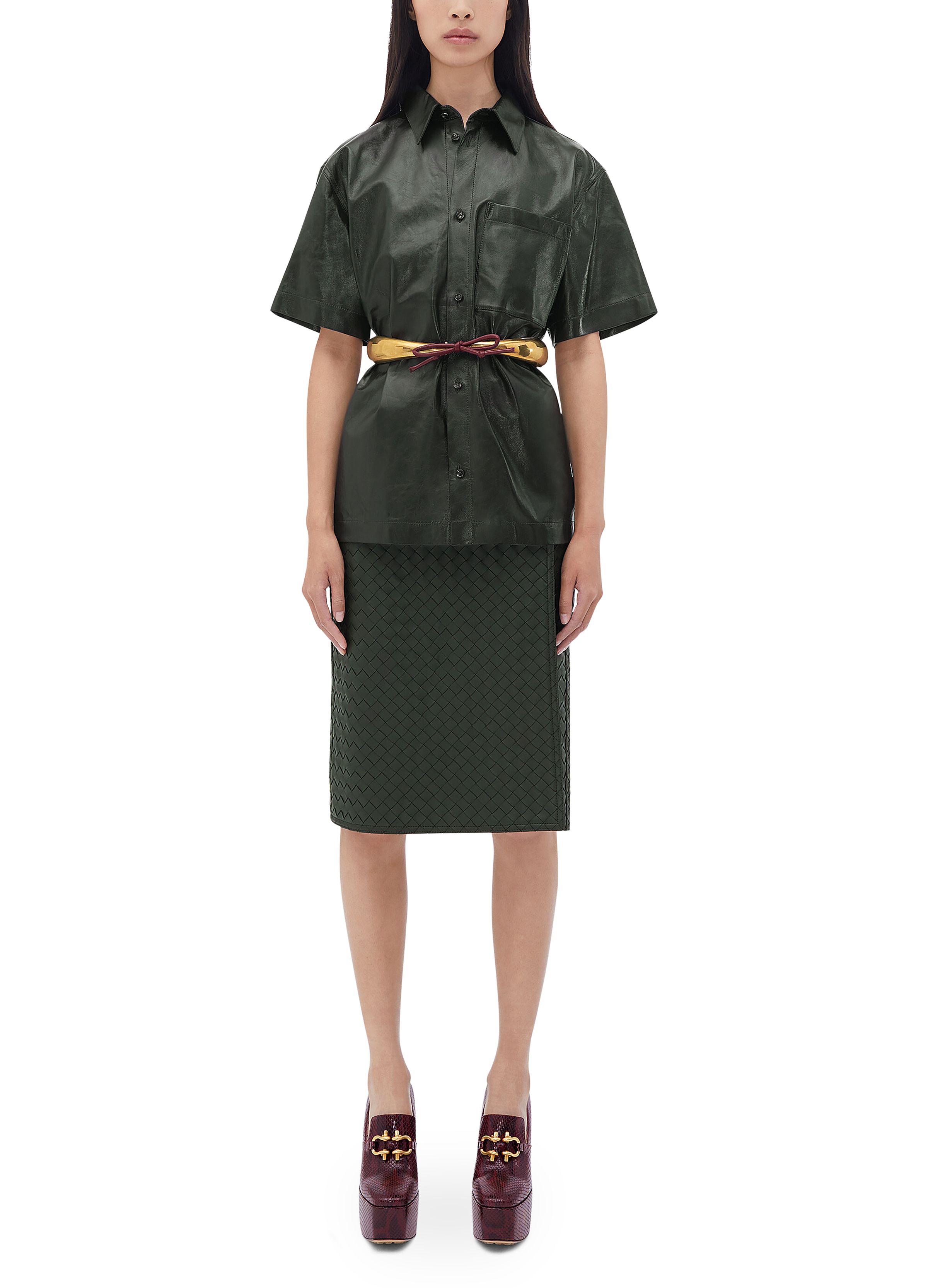 Intrecciato leather skirt - Green