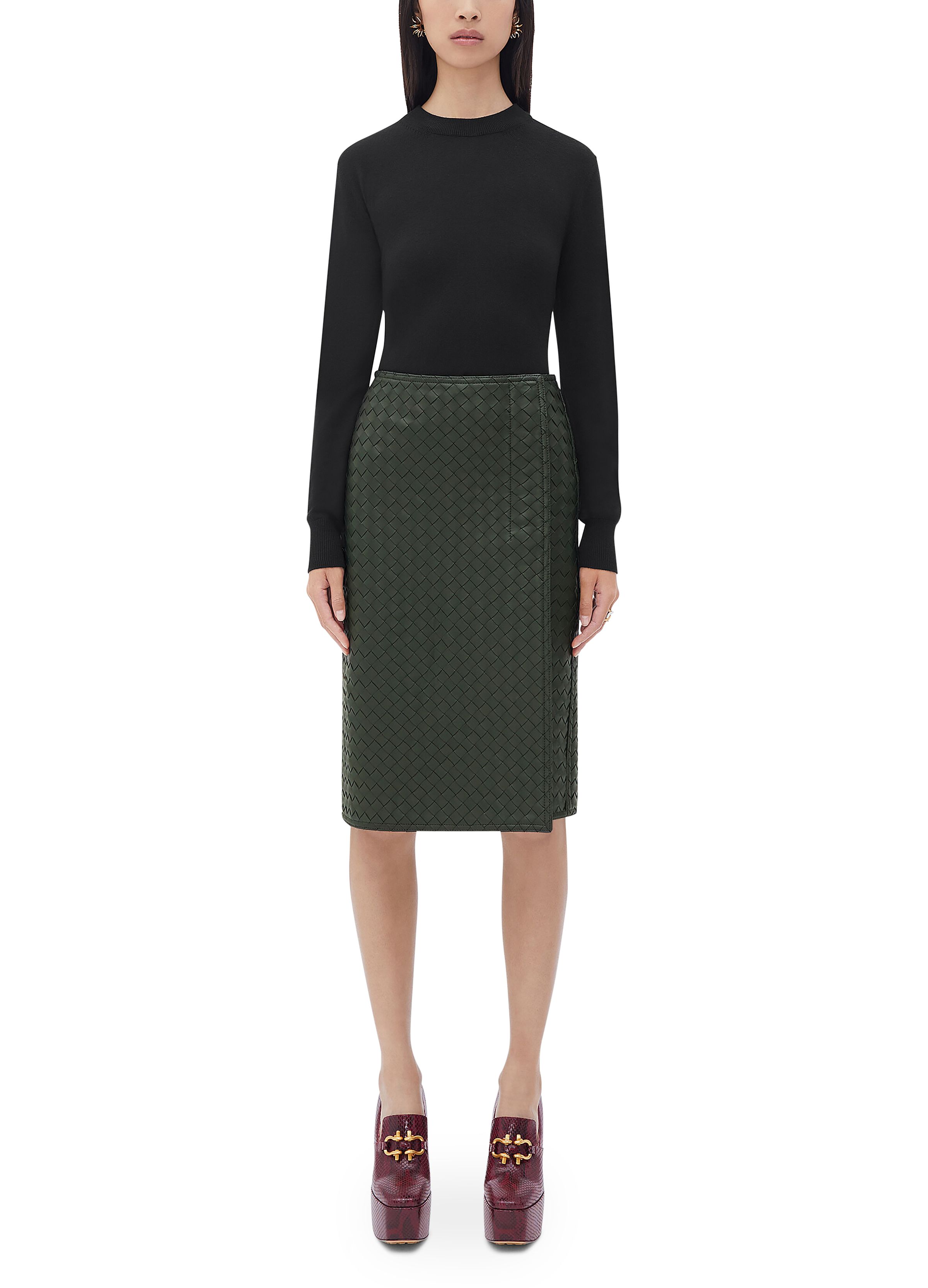 Intrecciato leather skirt