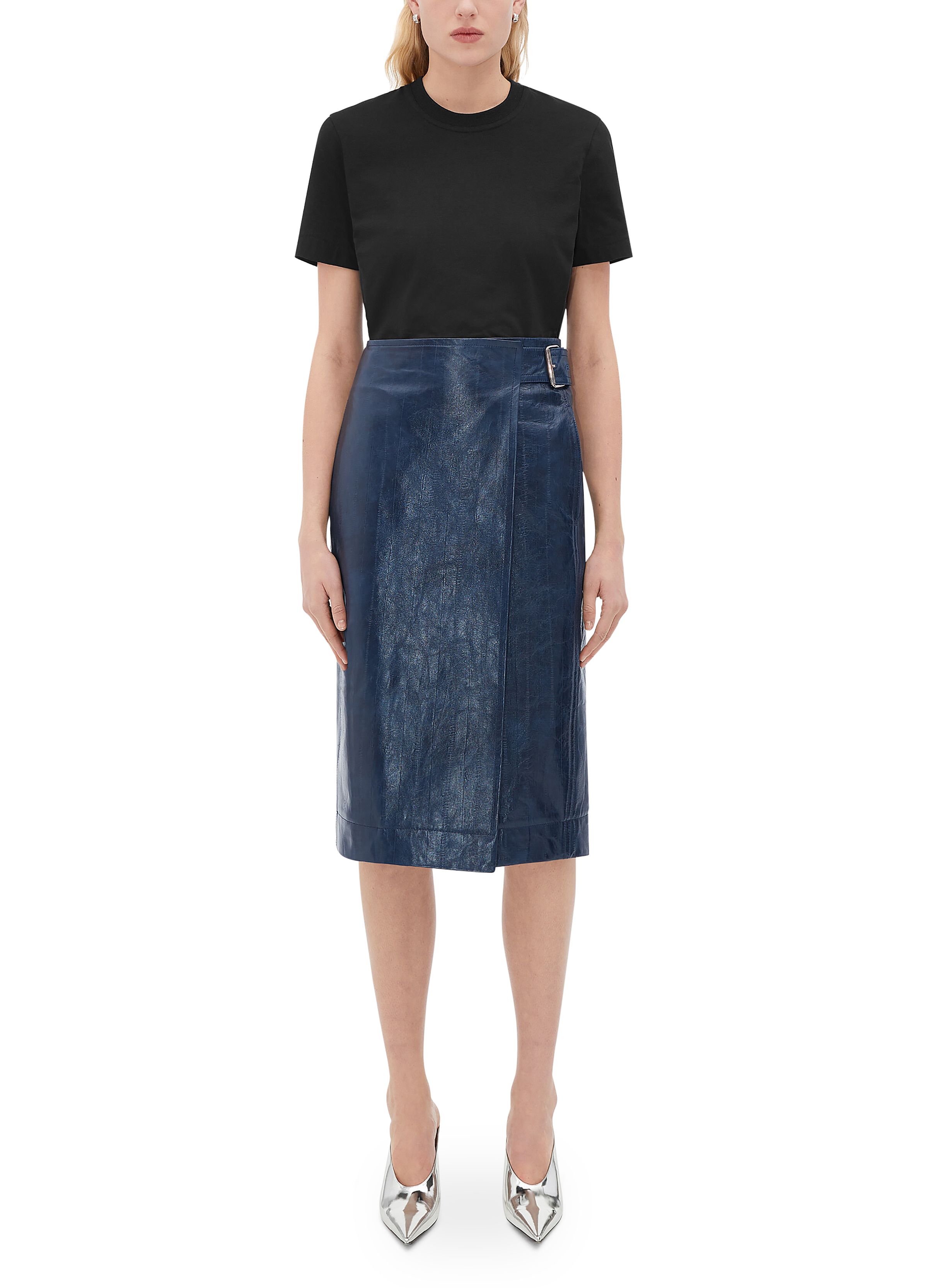 Embossed leather midi skirt