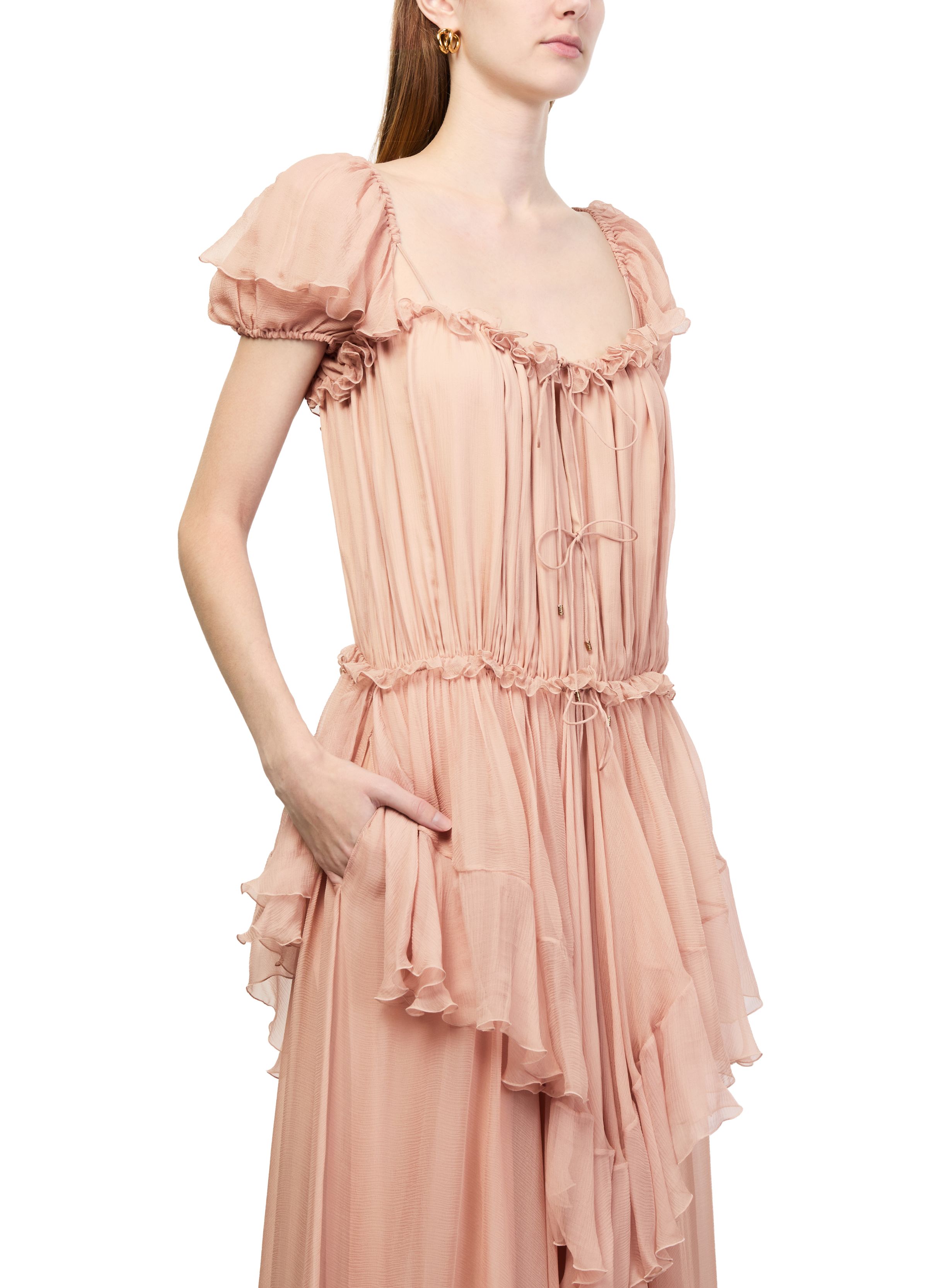 Gathered ruffled maxi dress - pink
