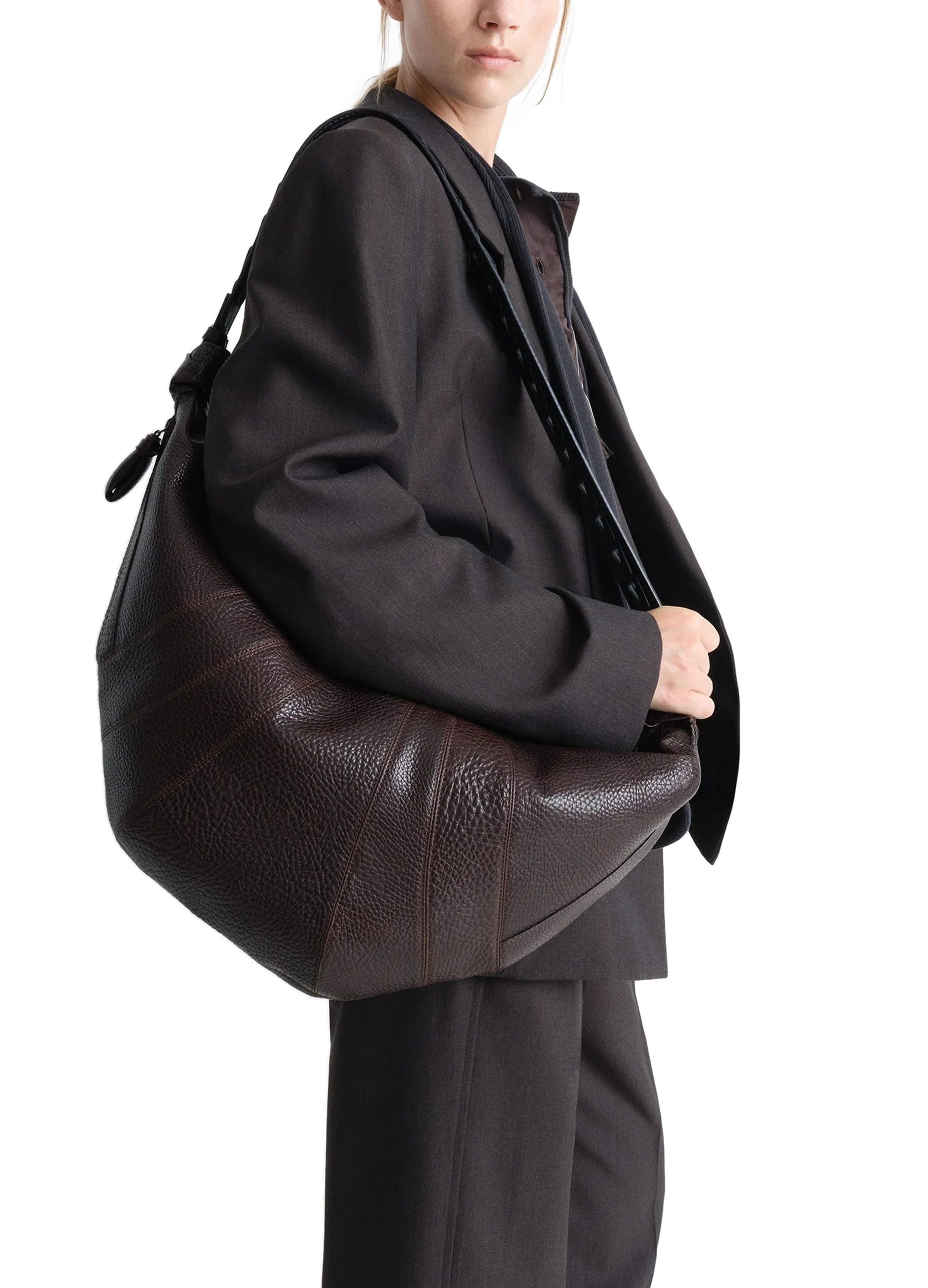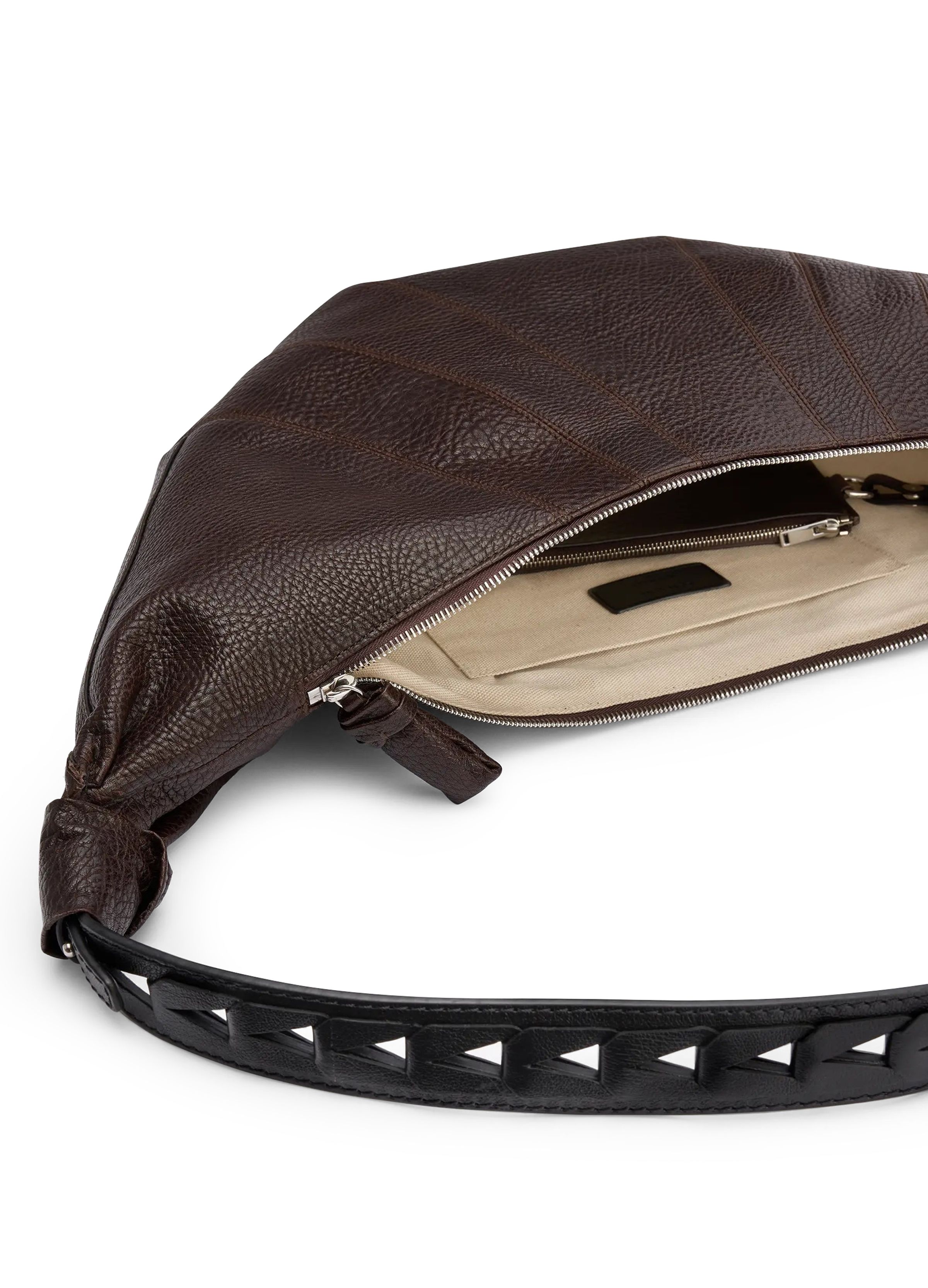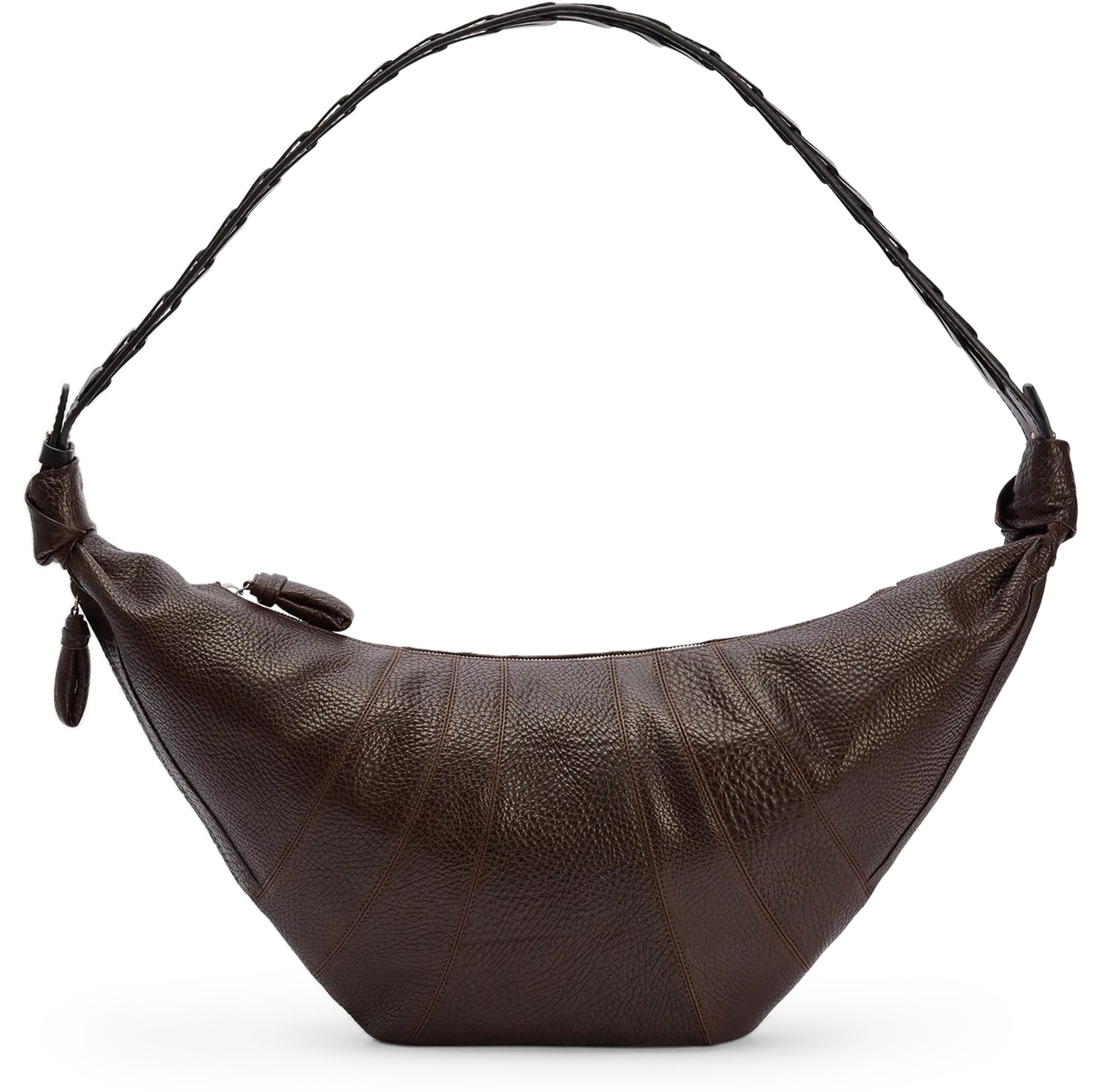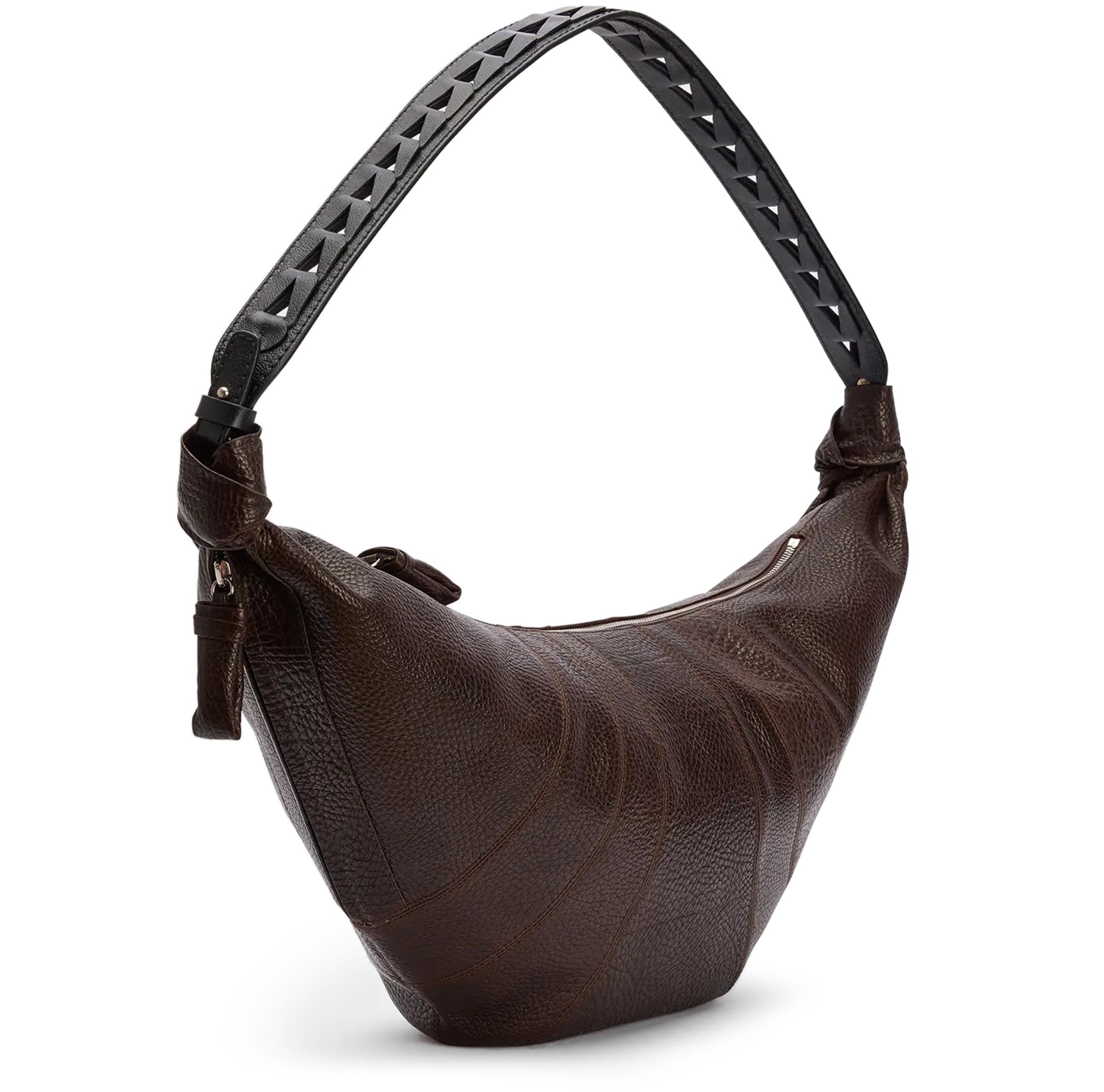 Large herringbone woven croissant bag - brown