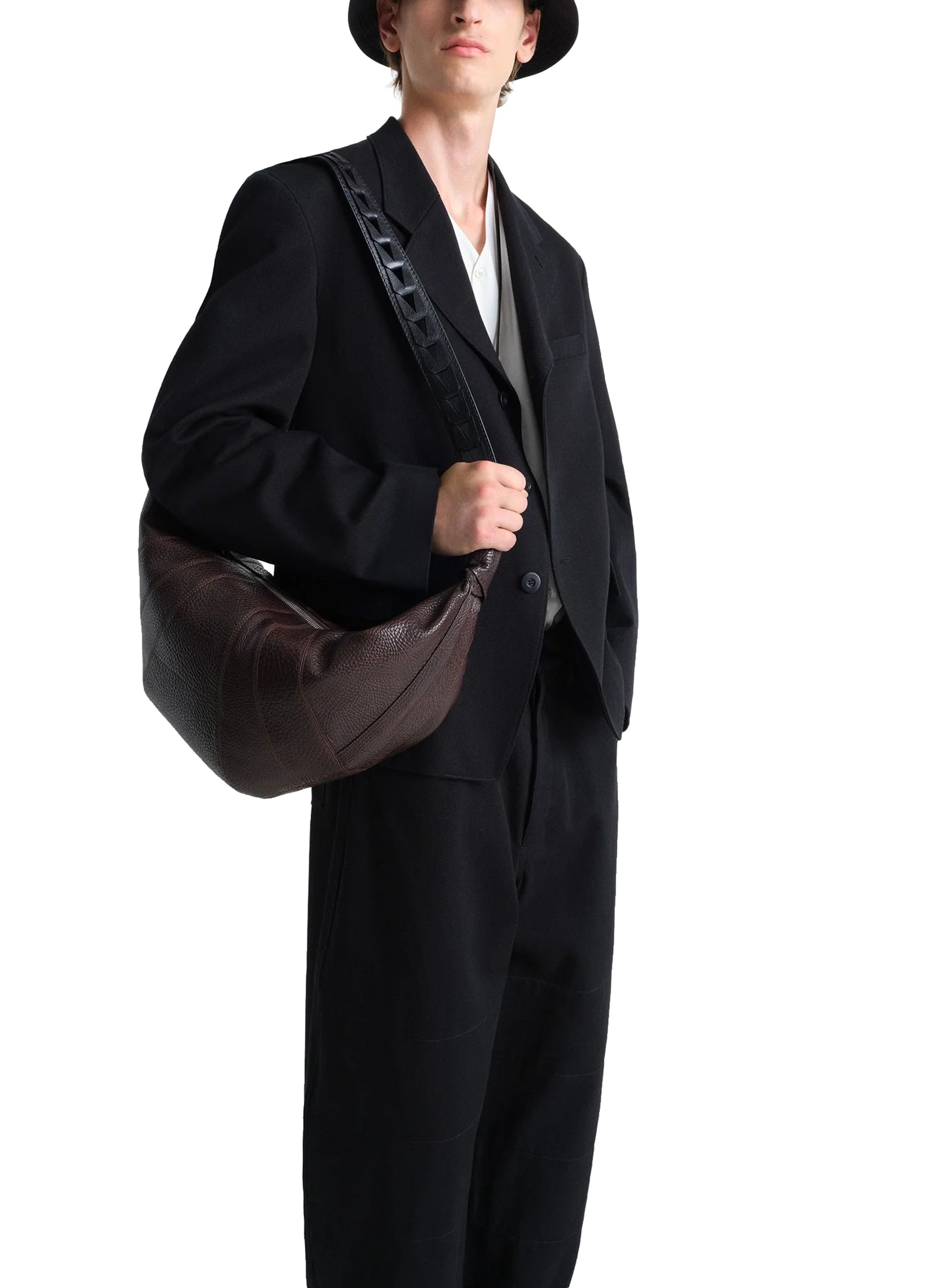 Large herringbone woven croissant bag
