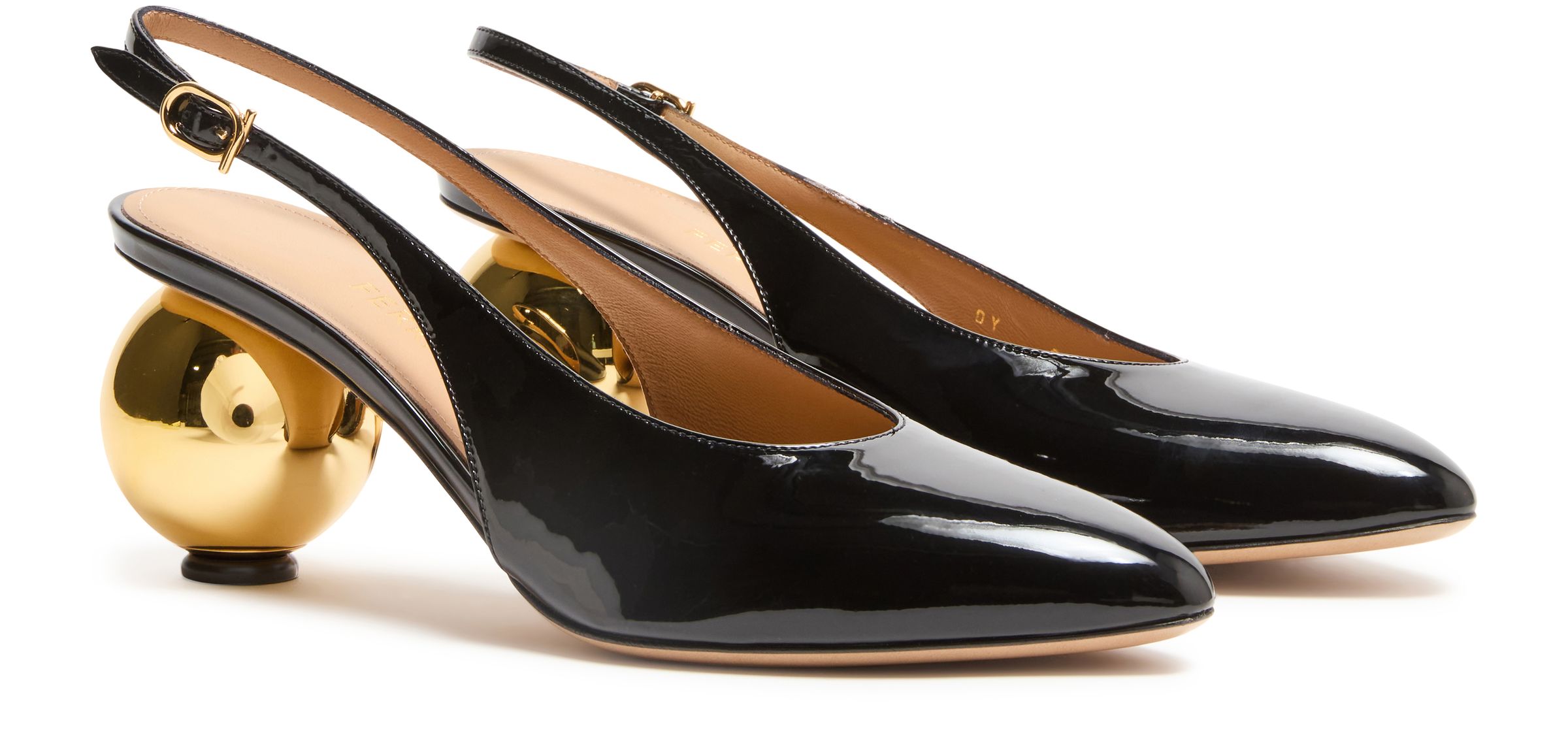 Spherical heel slingback pumps