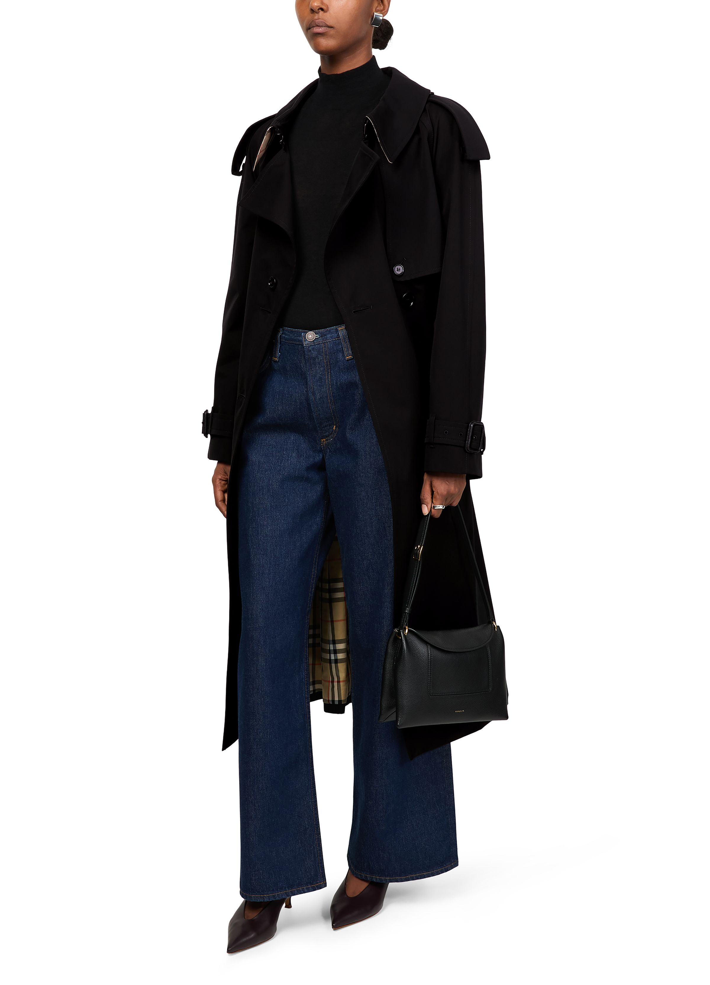 Fitzrovia long gabardine trench coat - Black